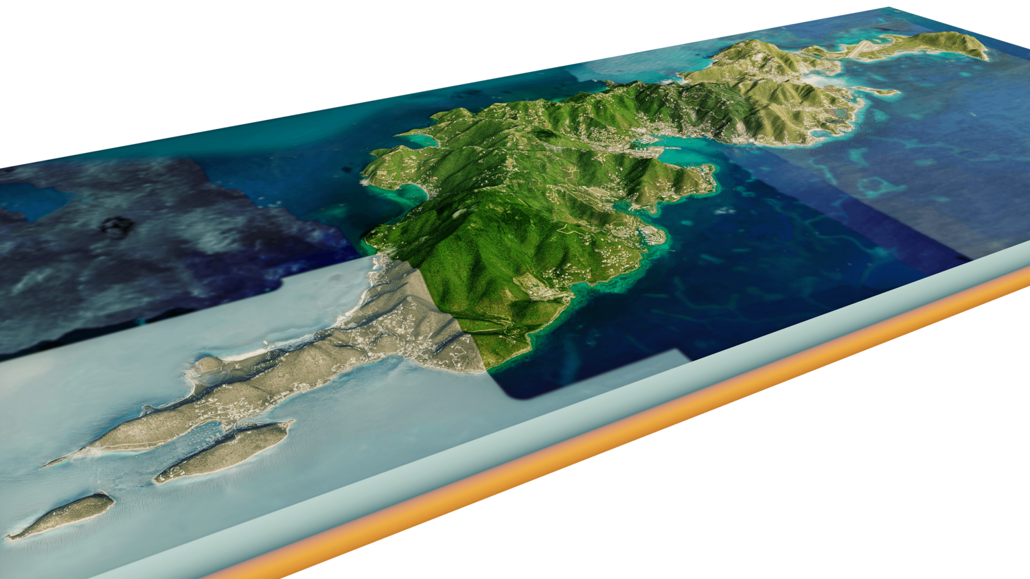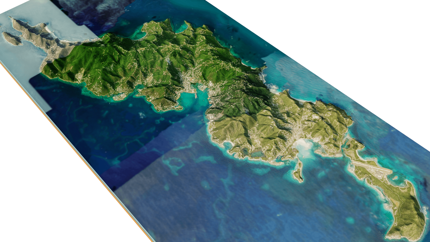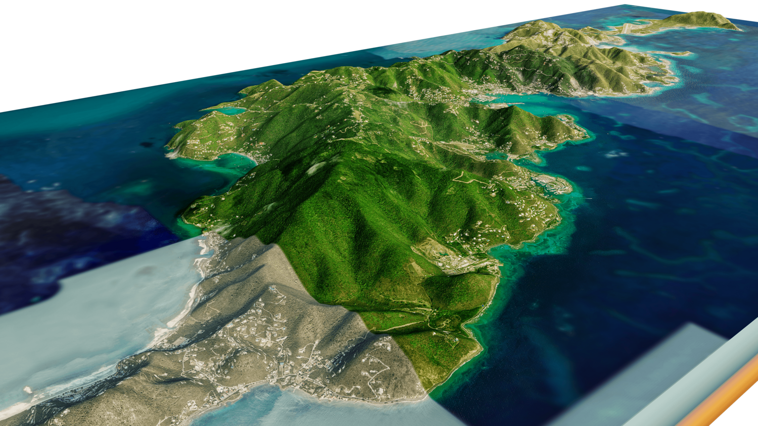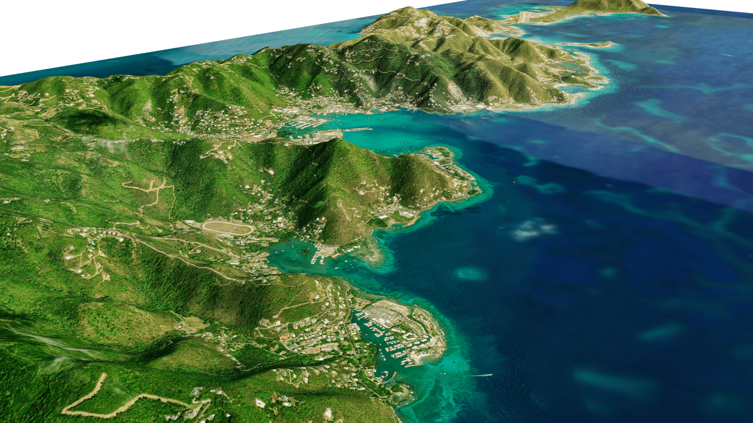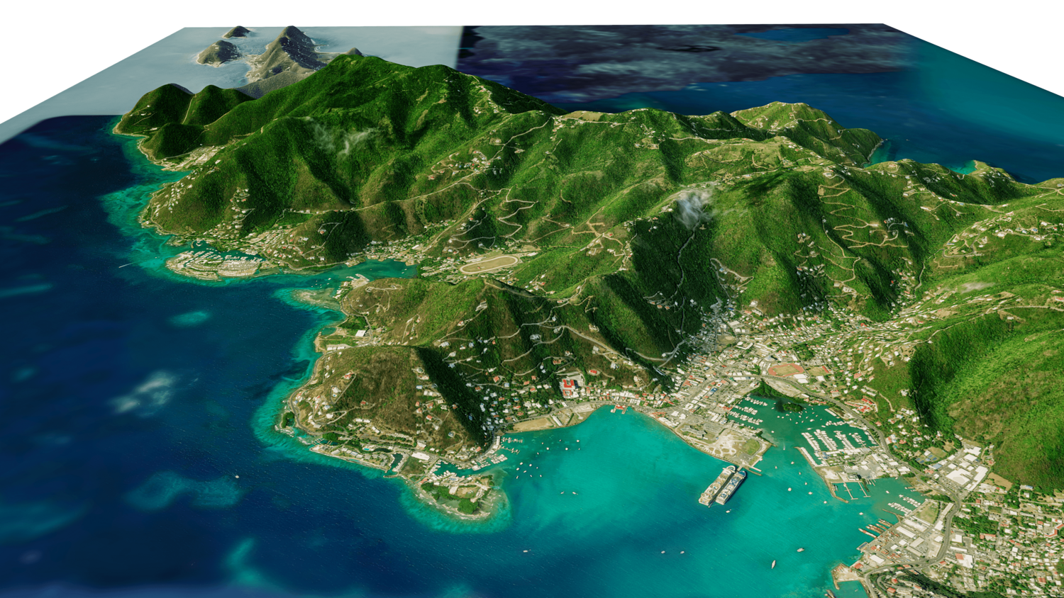 Tortola and Beef Island Full 3D model terrain. 3d model island of Tortola and with its landscape of mountains, beaches and forests.