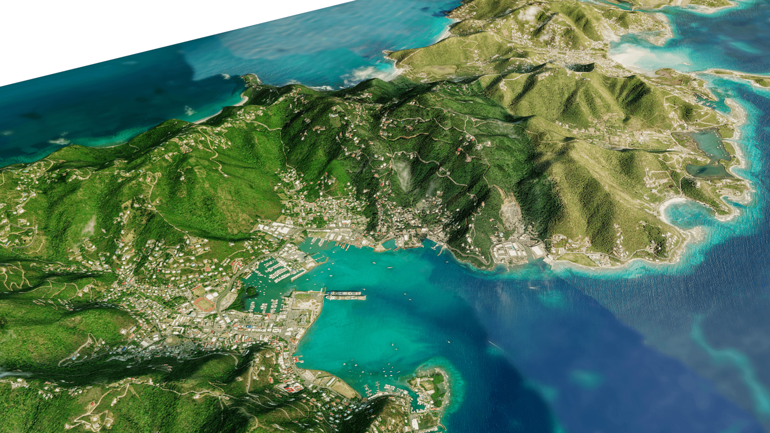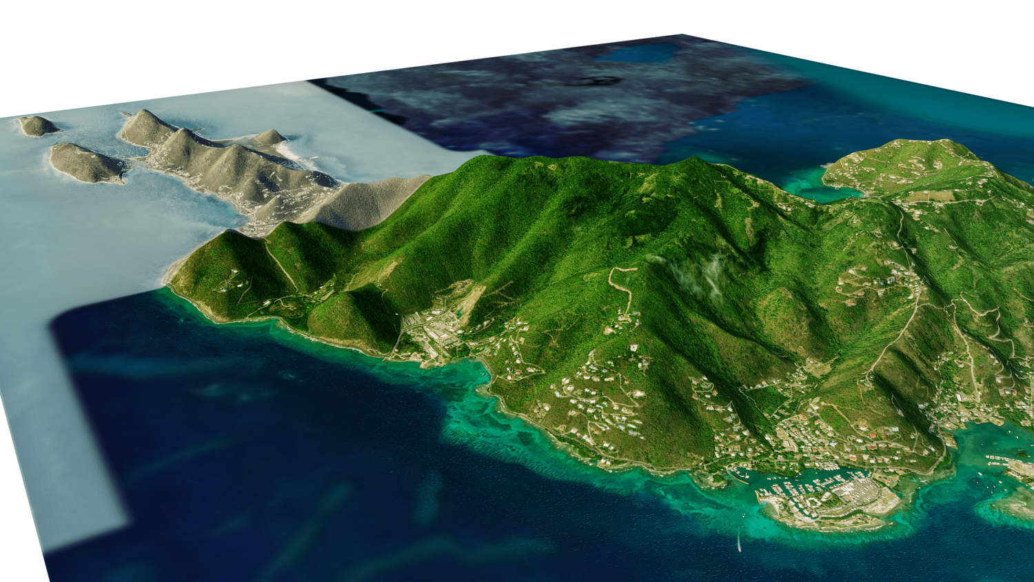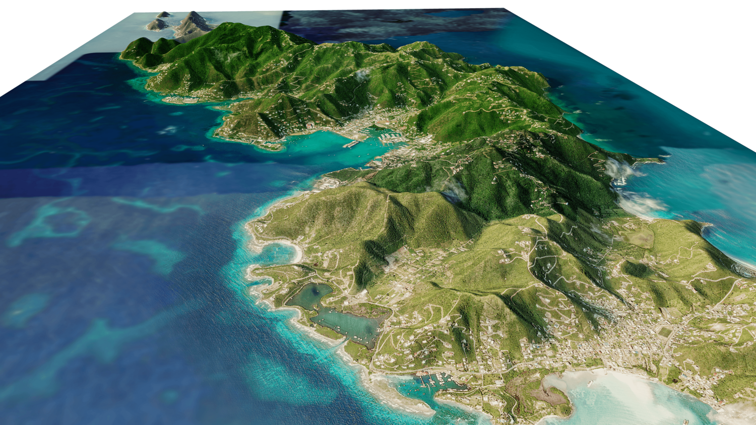 3d model landscape of Tortola Island, Virgin Islands, British Virgin Islands, Caribbean Sea, British Overseas Territory.