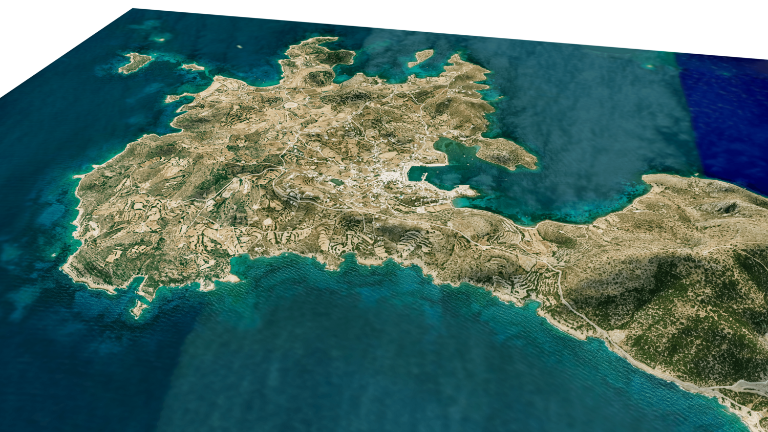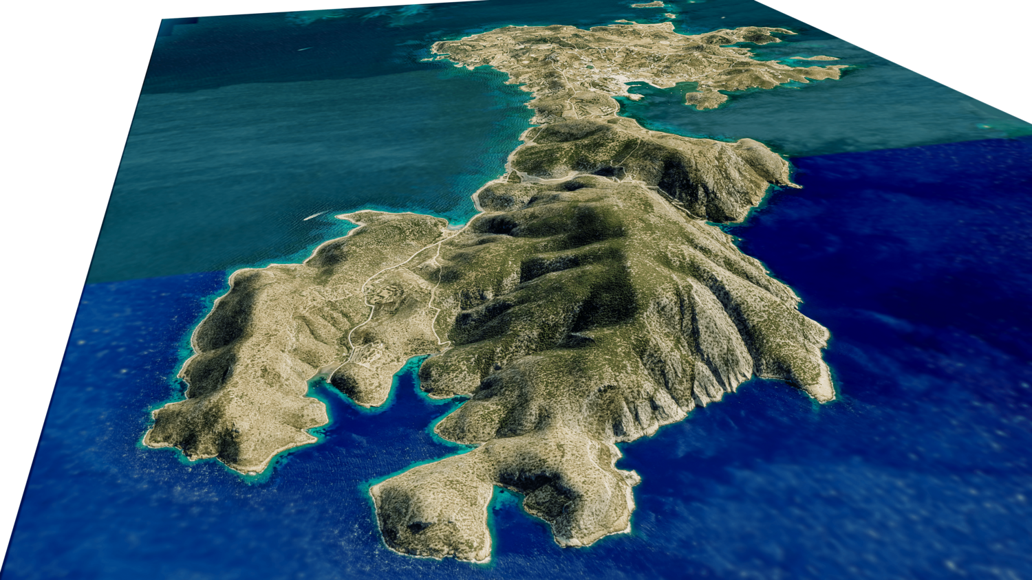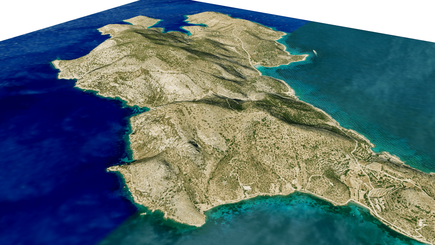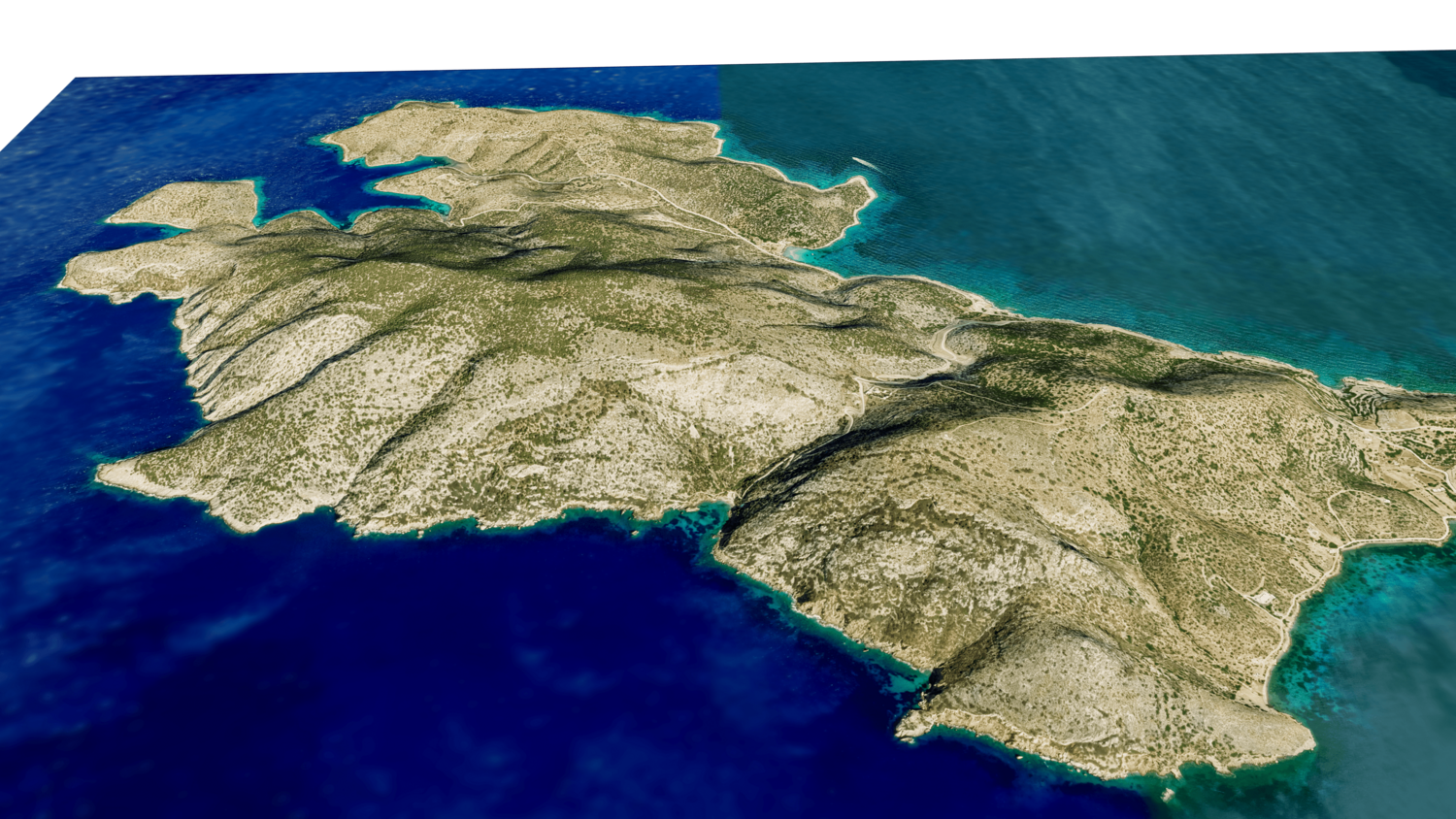 Leipsoi Island 3D model terrain. 3d model island of Leipsoi, Greece with its landscape of mountains, beaches and forests.