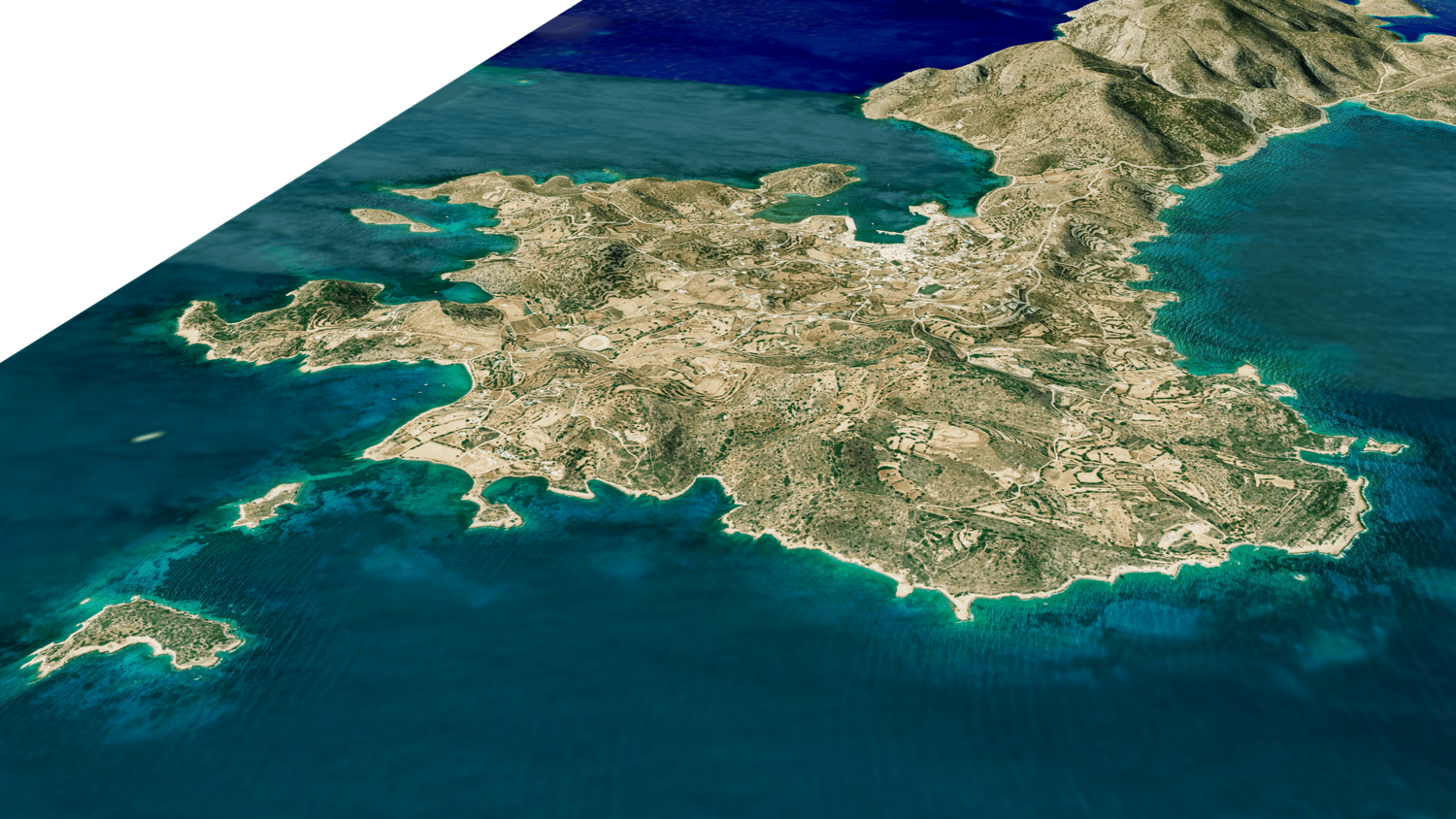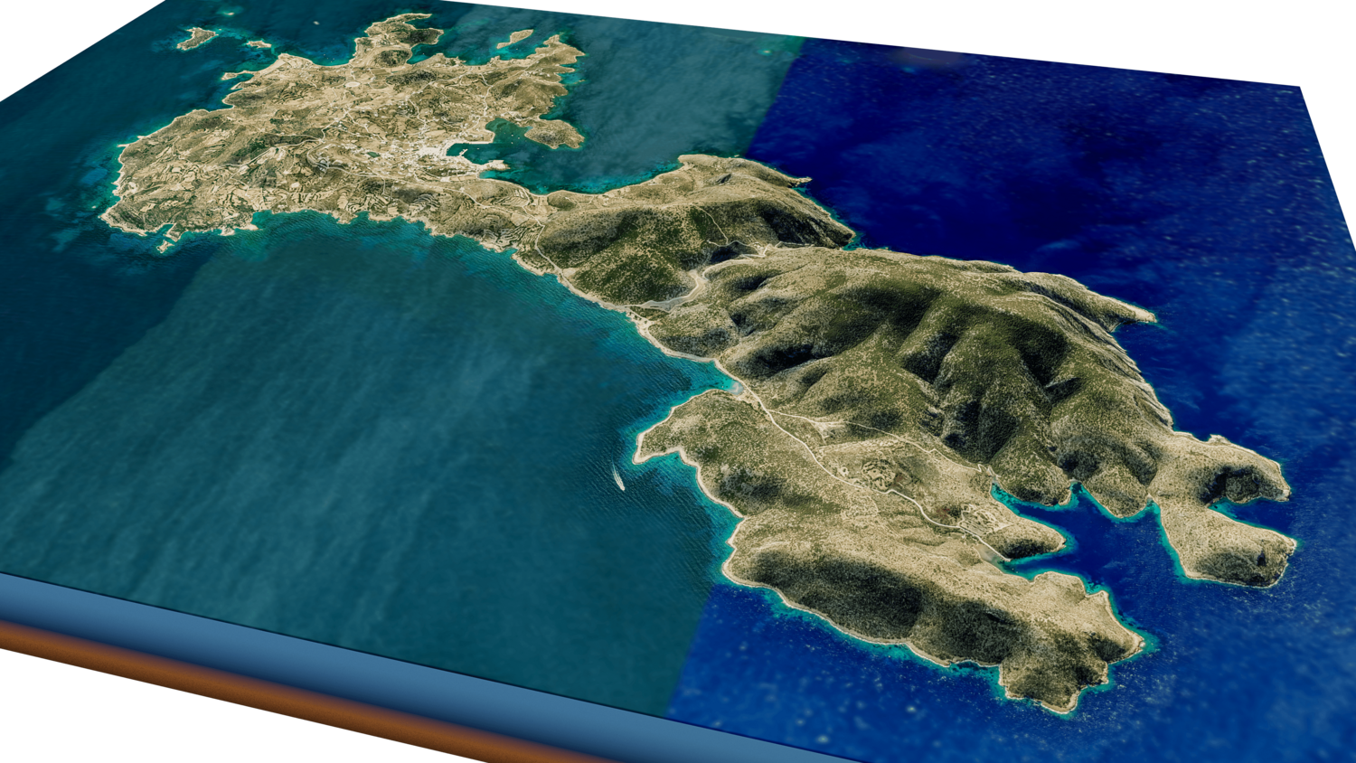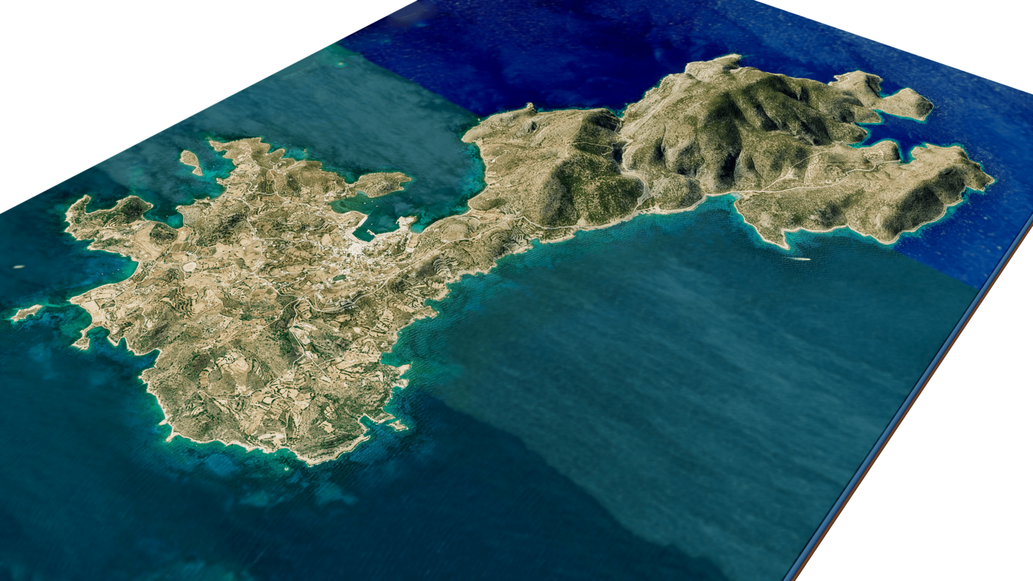 Leipsoi Island 3D model terrain. 3d model island of Leipsoi, Greece with its landscape of mountains, beaches and forests.