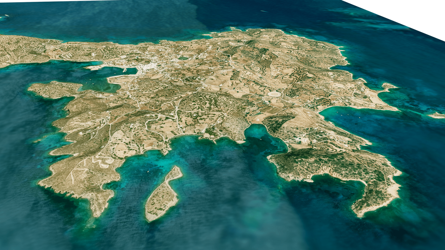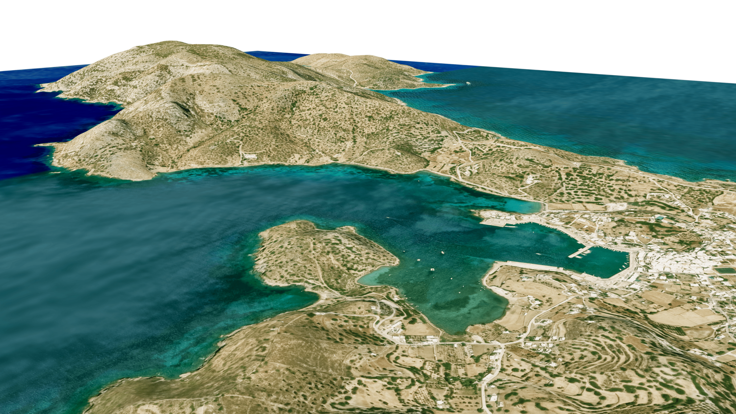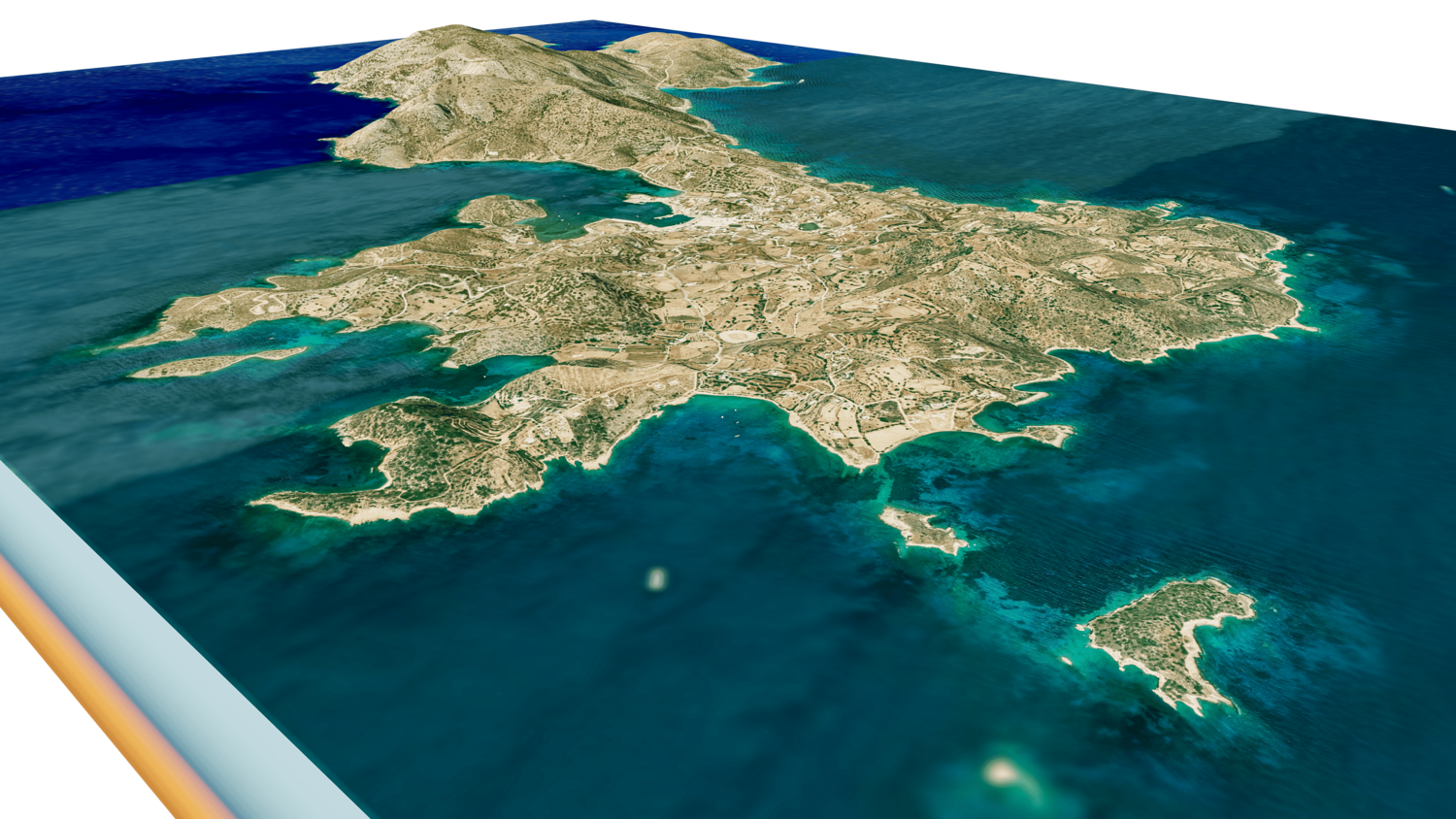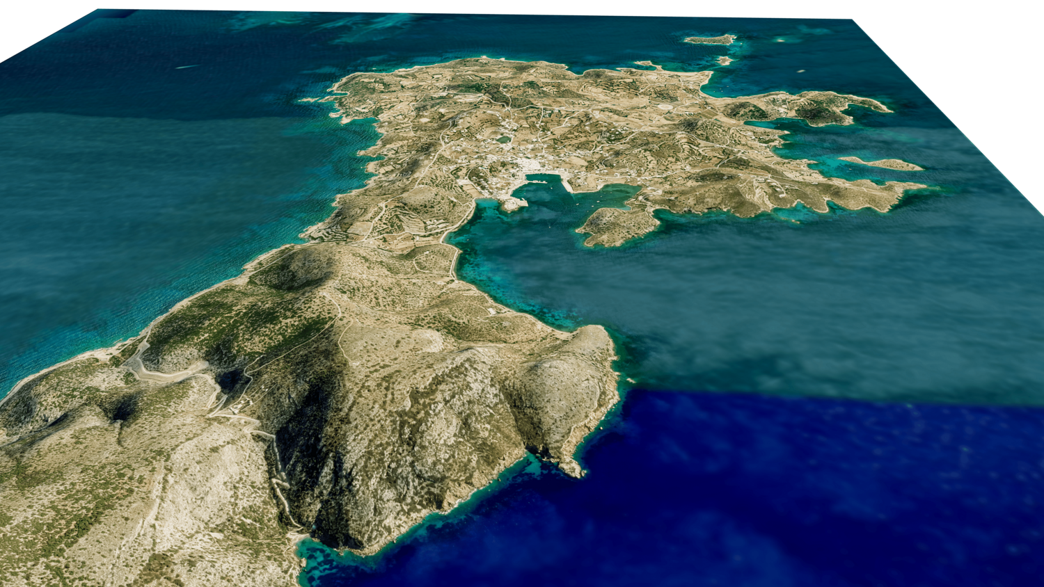 Leipsoi Island 3D model terrain. 3d model island of Leipsoi, Greece with its landscape of mountains, beaches and forests.