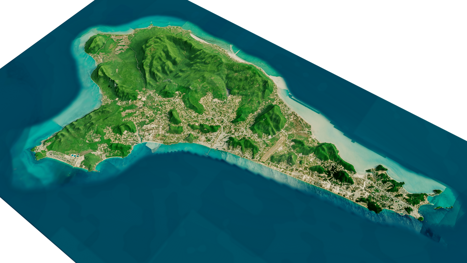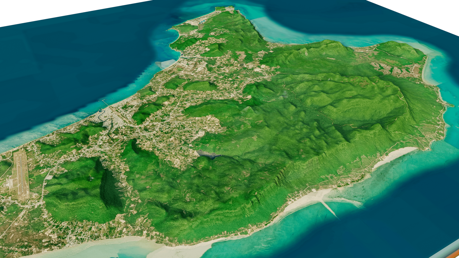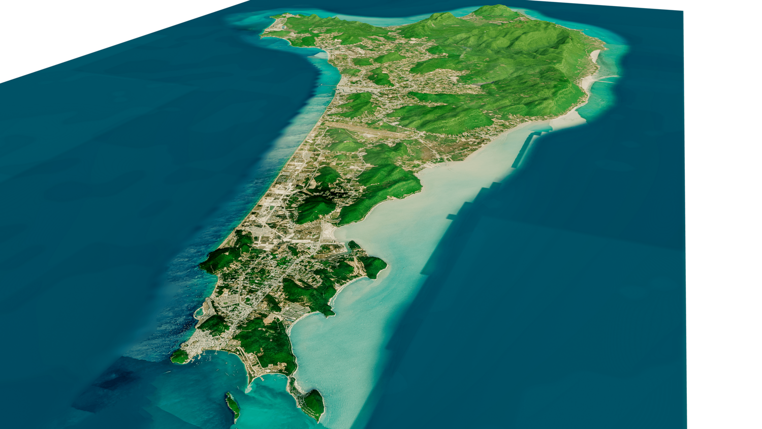 Phu Quoc island 3D model terrain. 3d model island of Phu Quoc, Vietnam and with its landscape of mountains, beaches and forests.
