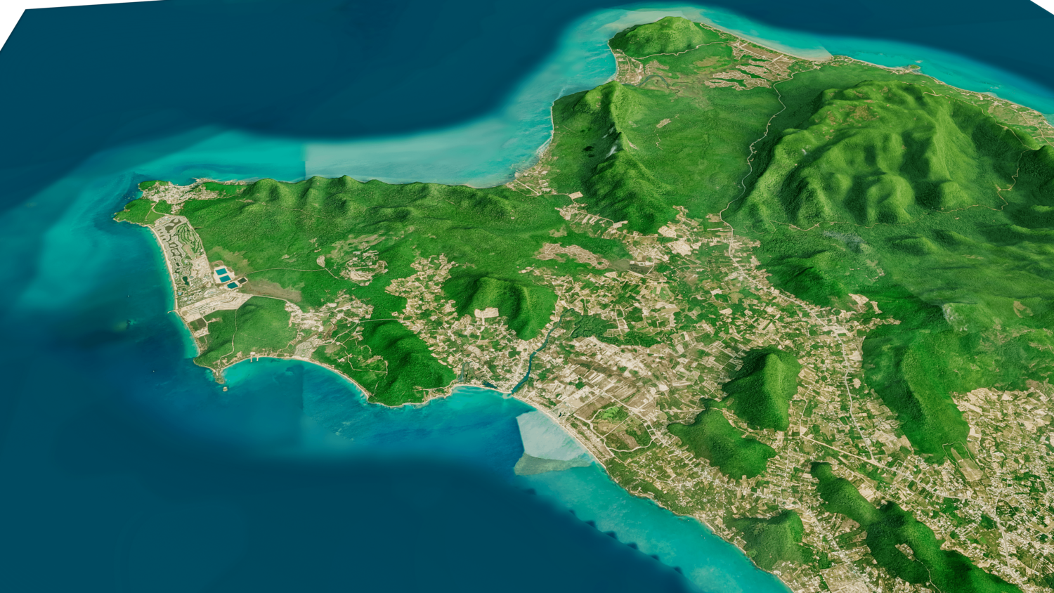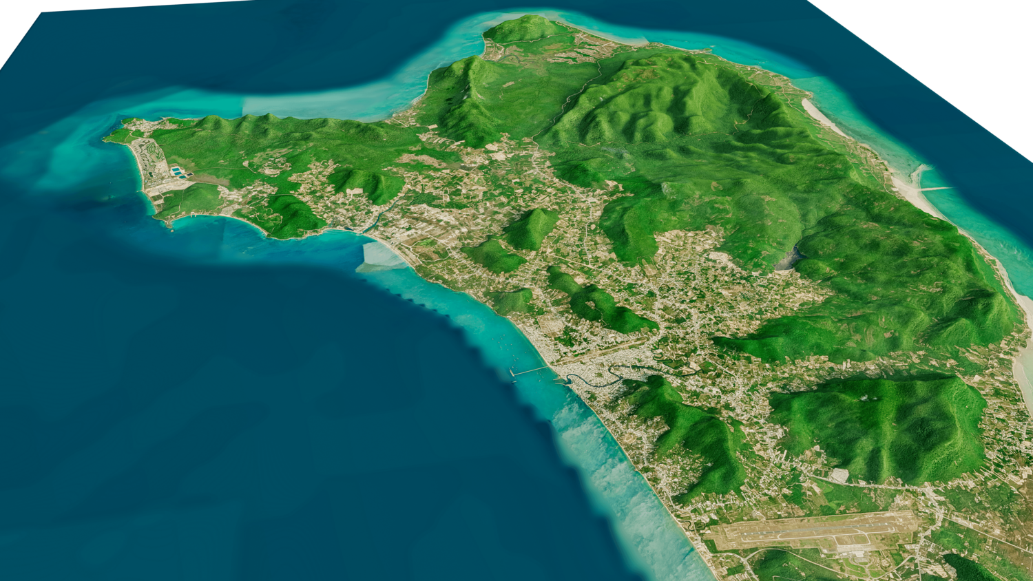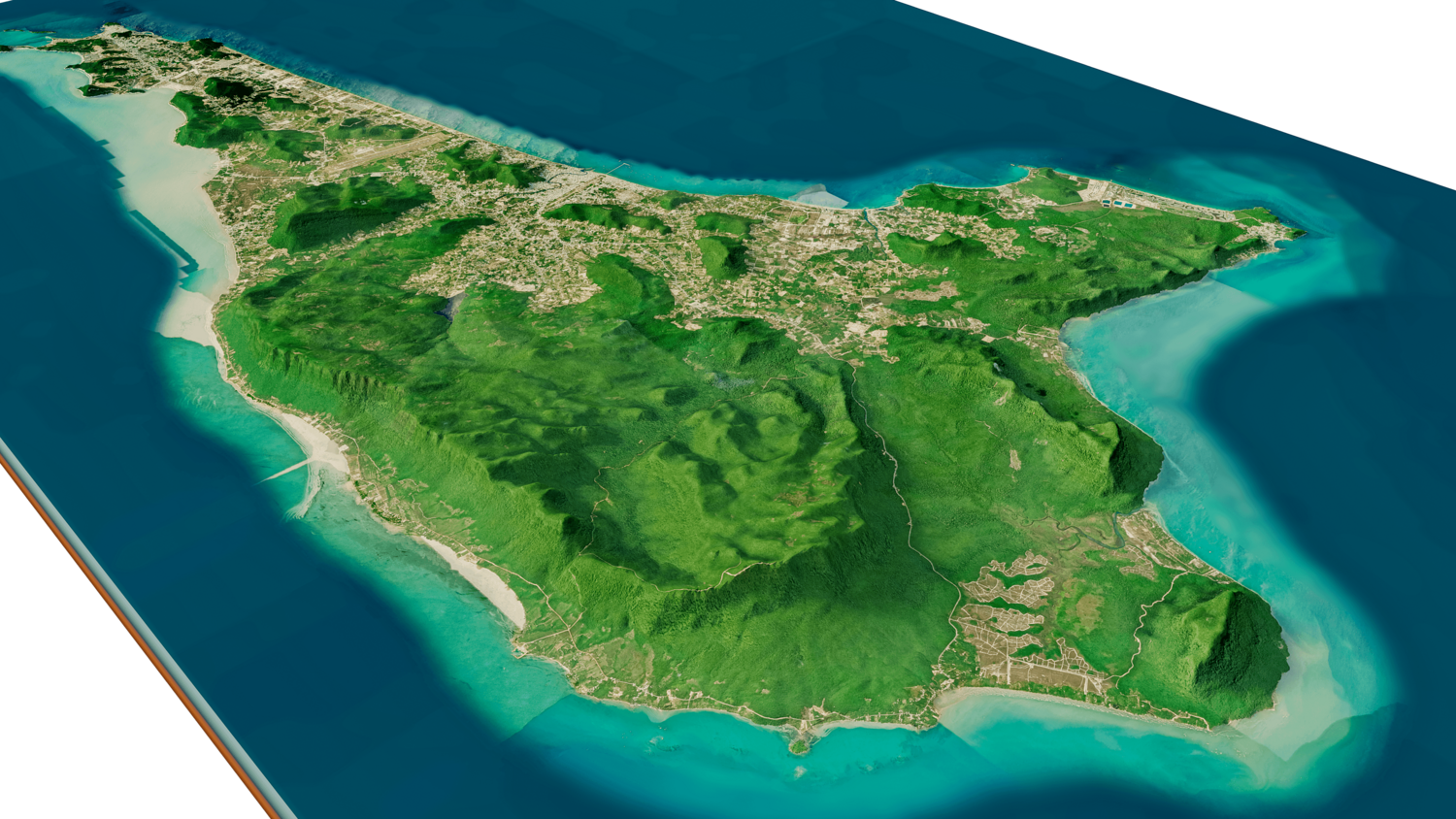 Phu Quoc island 3D model terrain. 3d model island of Phu Quoc, Vietnam and with its landscape of mountains, beaches and forests.