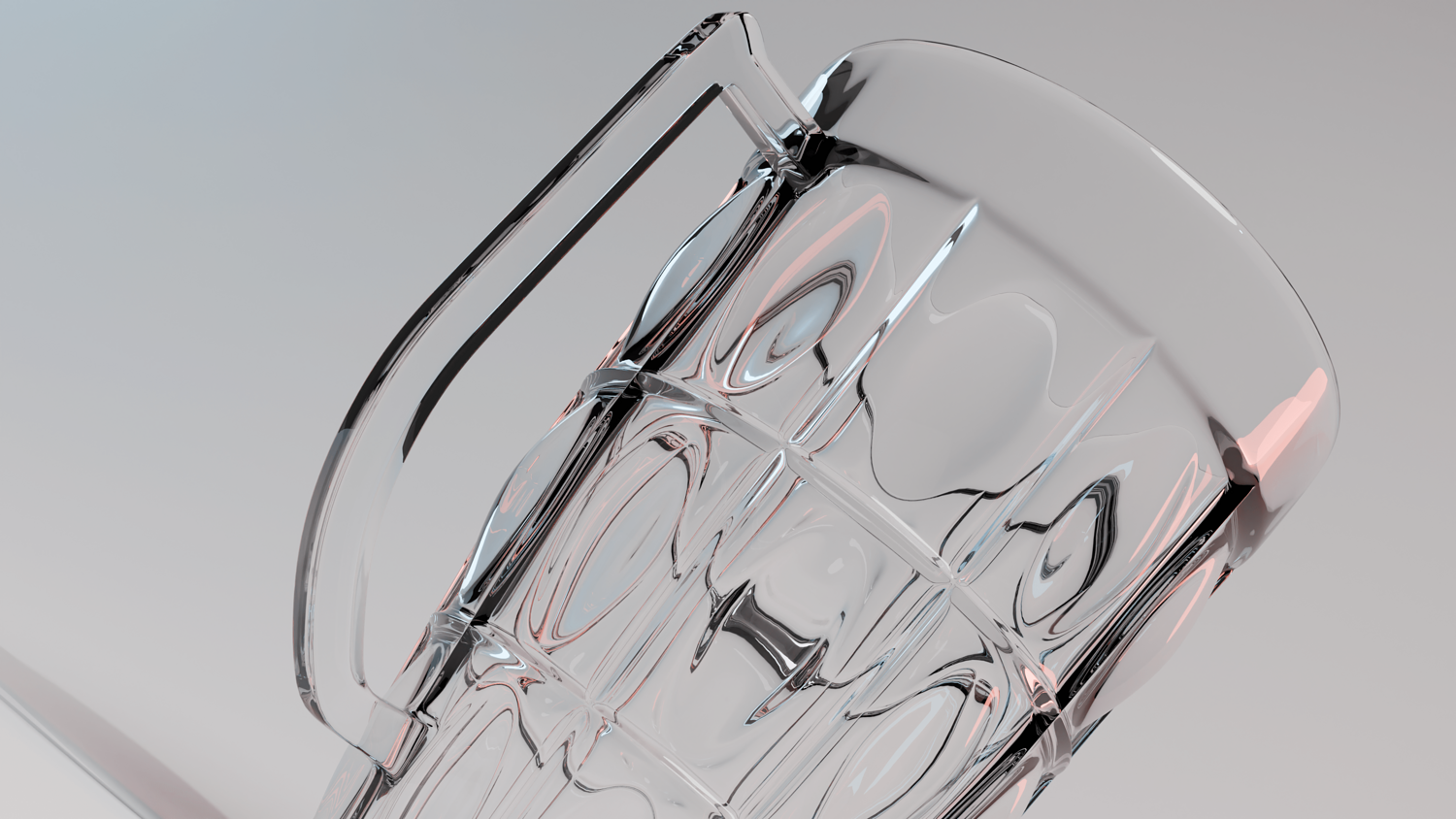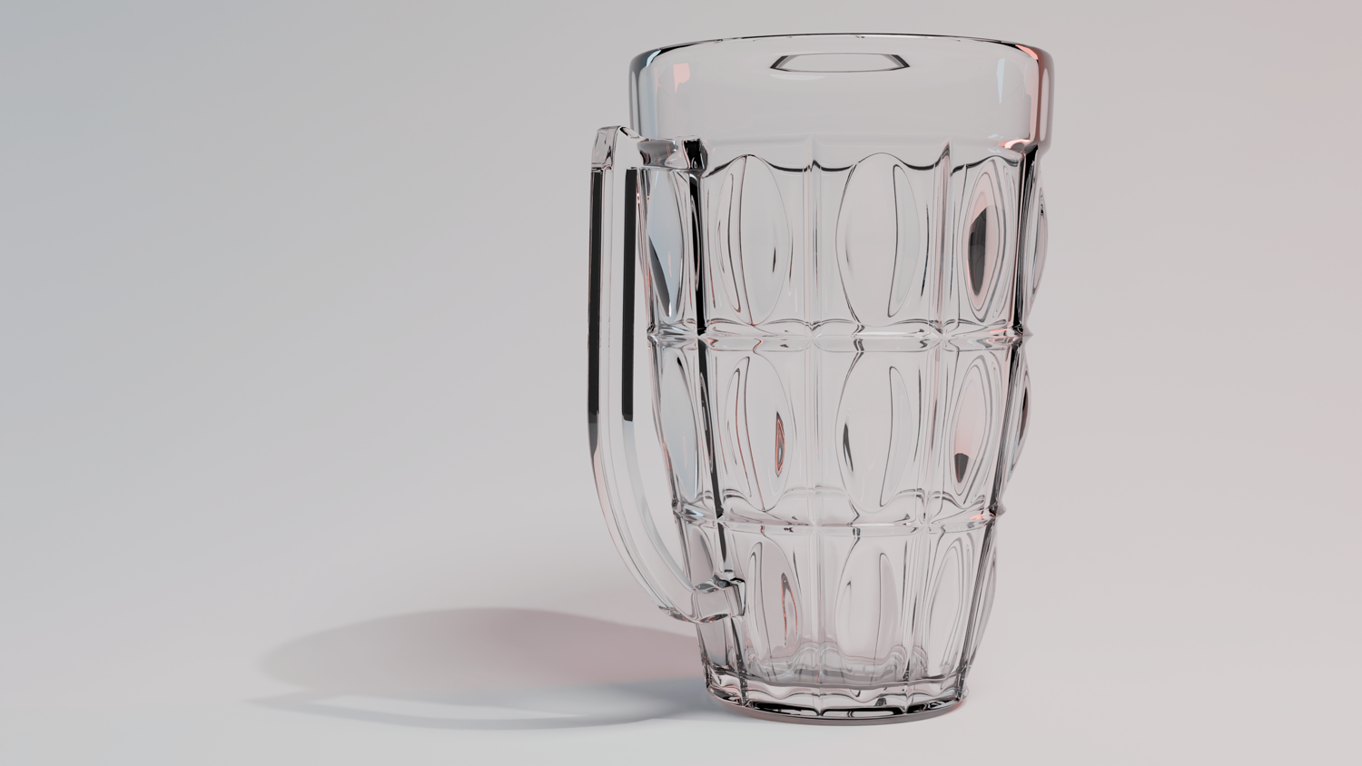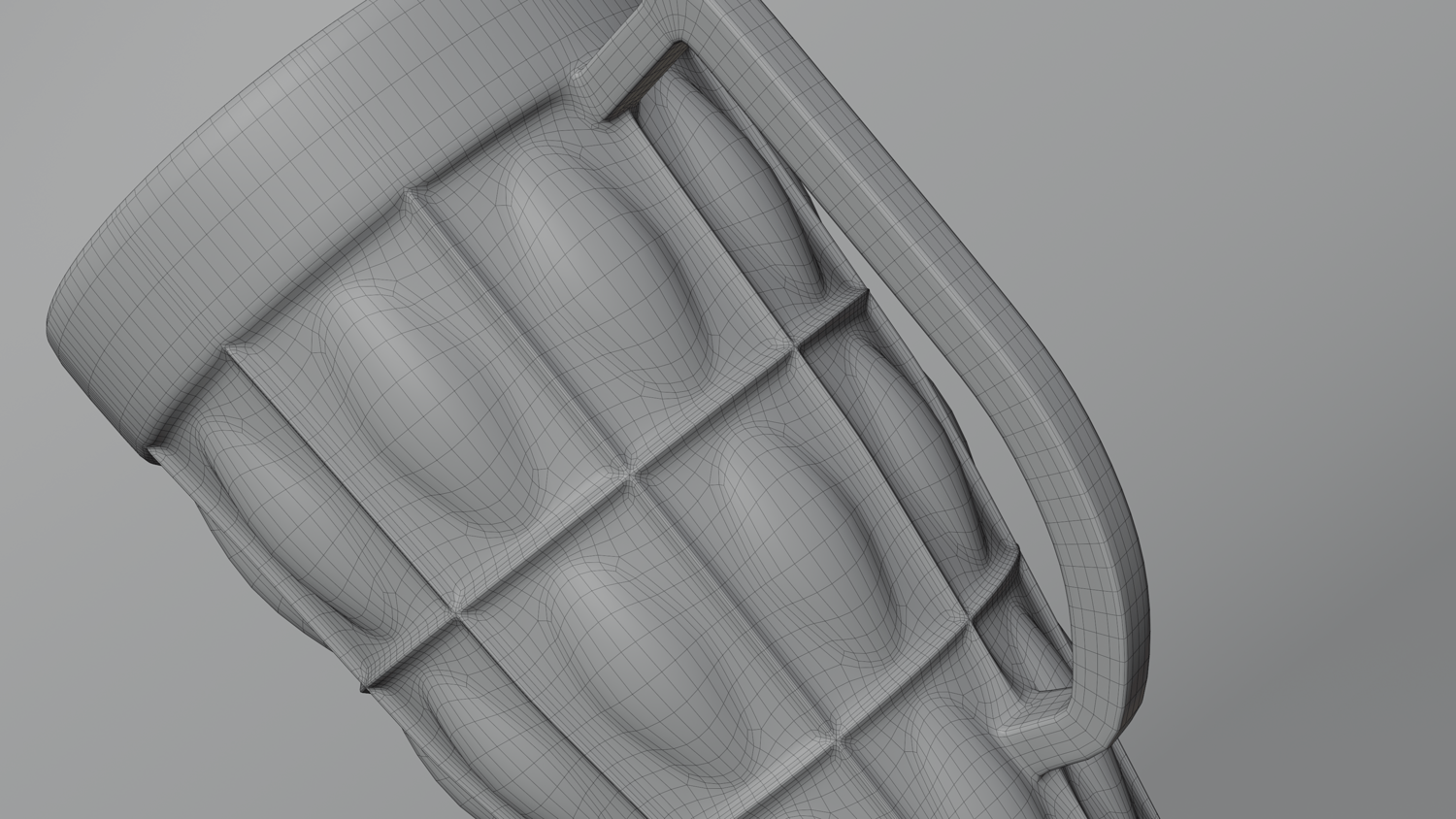3D model of a hard surface of a double-walled glass beer mug with a handle