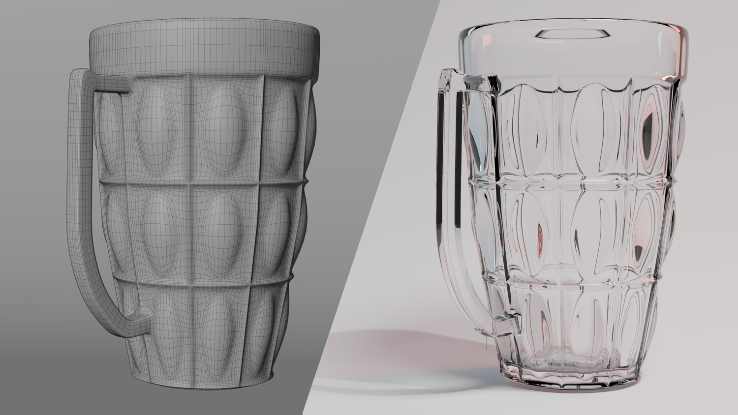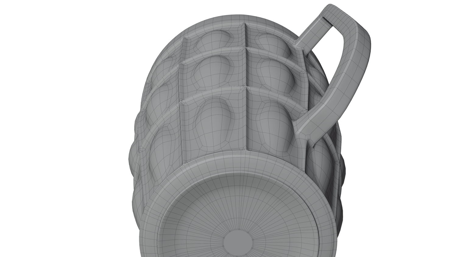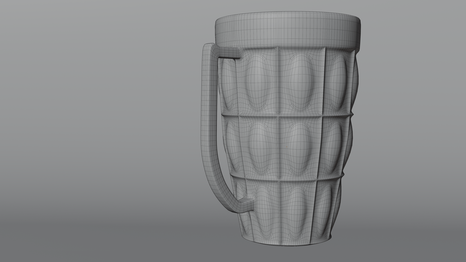 3D model of a hard surface of a double-walled glass beer mug with a handle