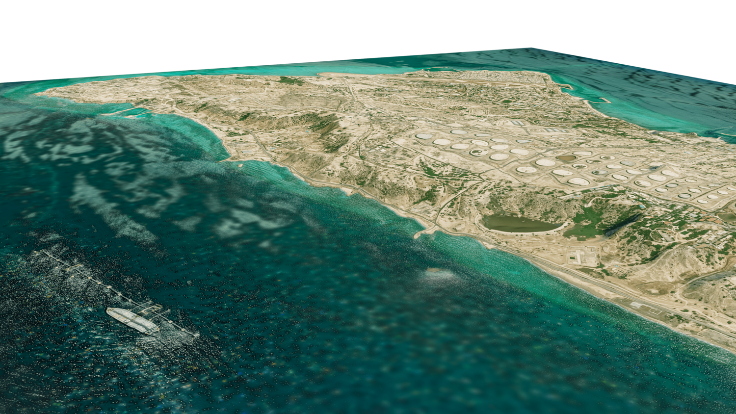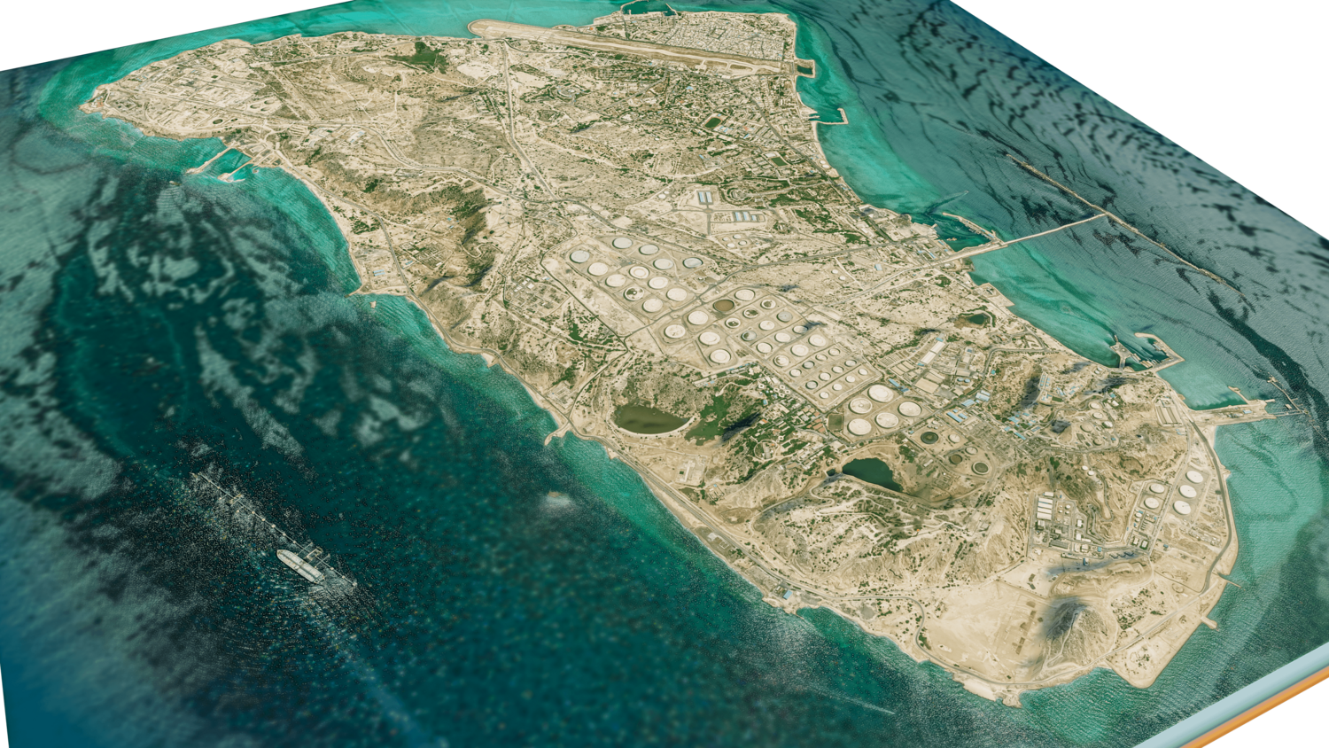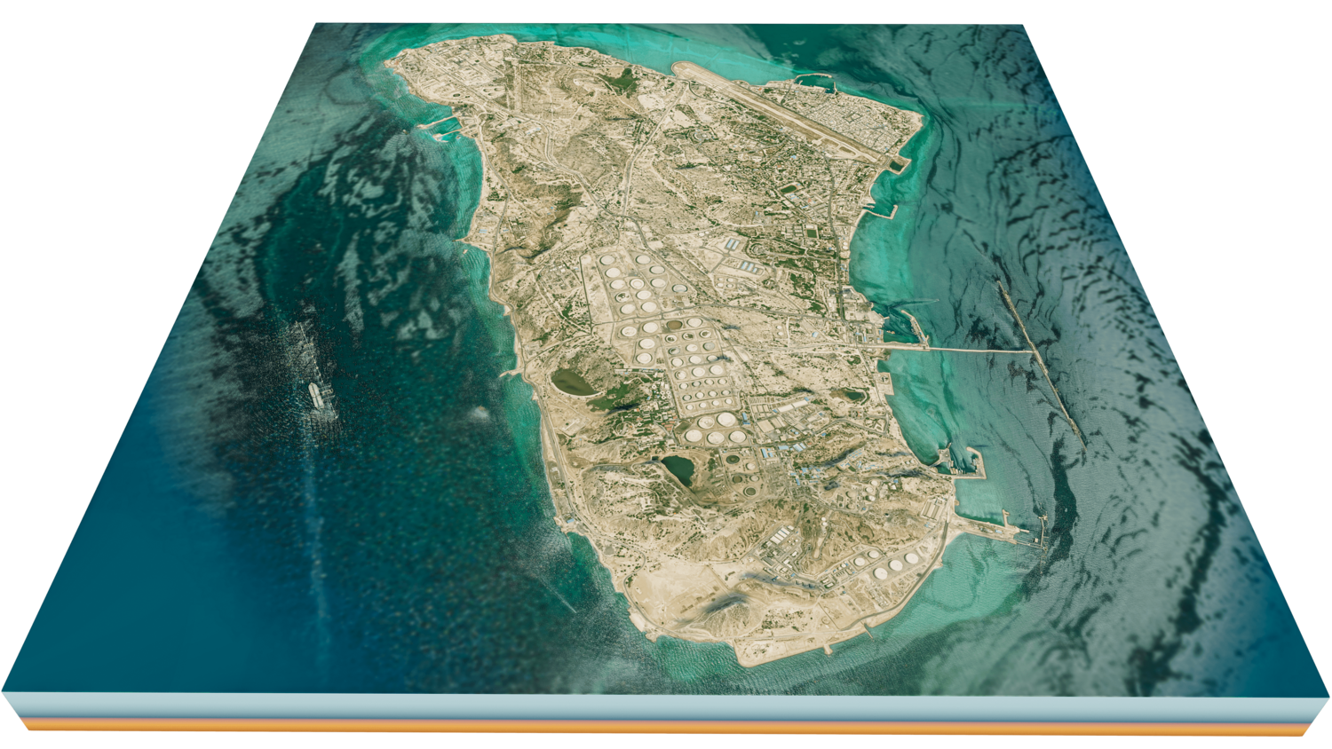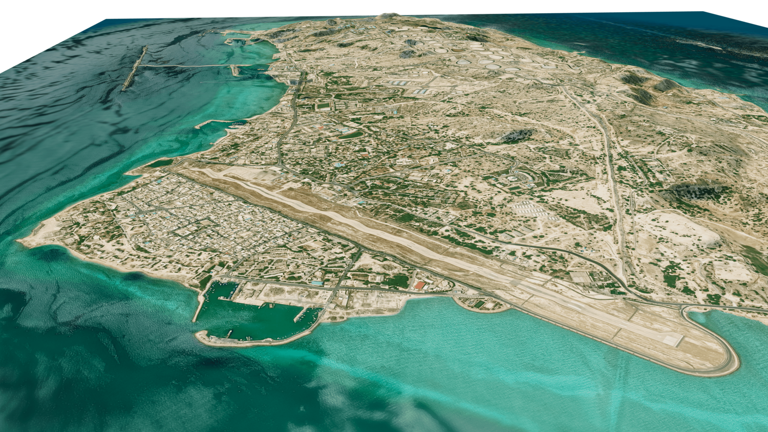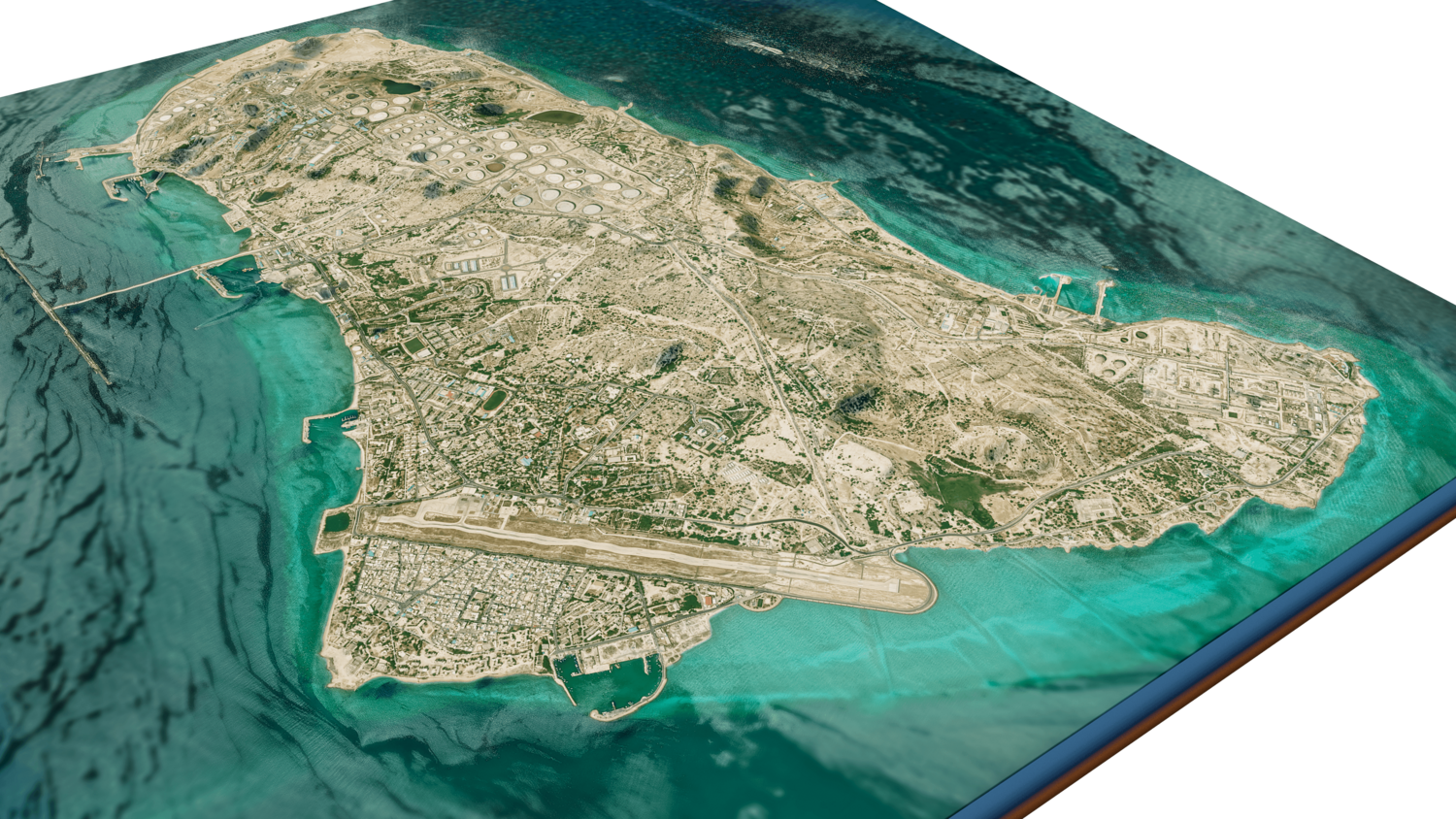 3d model landscape of Kharg island, Kharg, Bushehr Province, Persian Gulf, Iran.