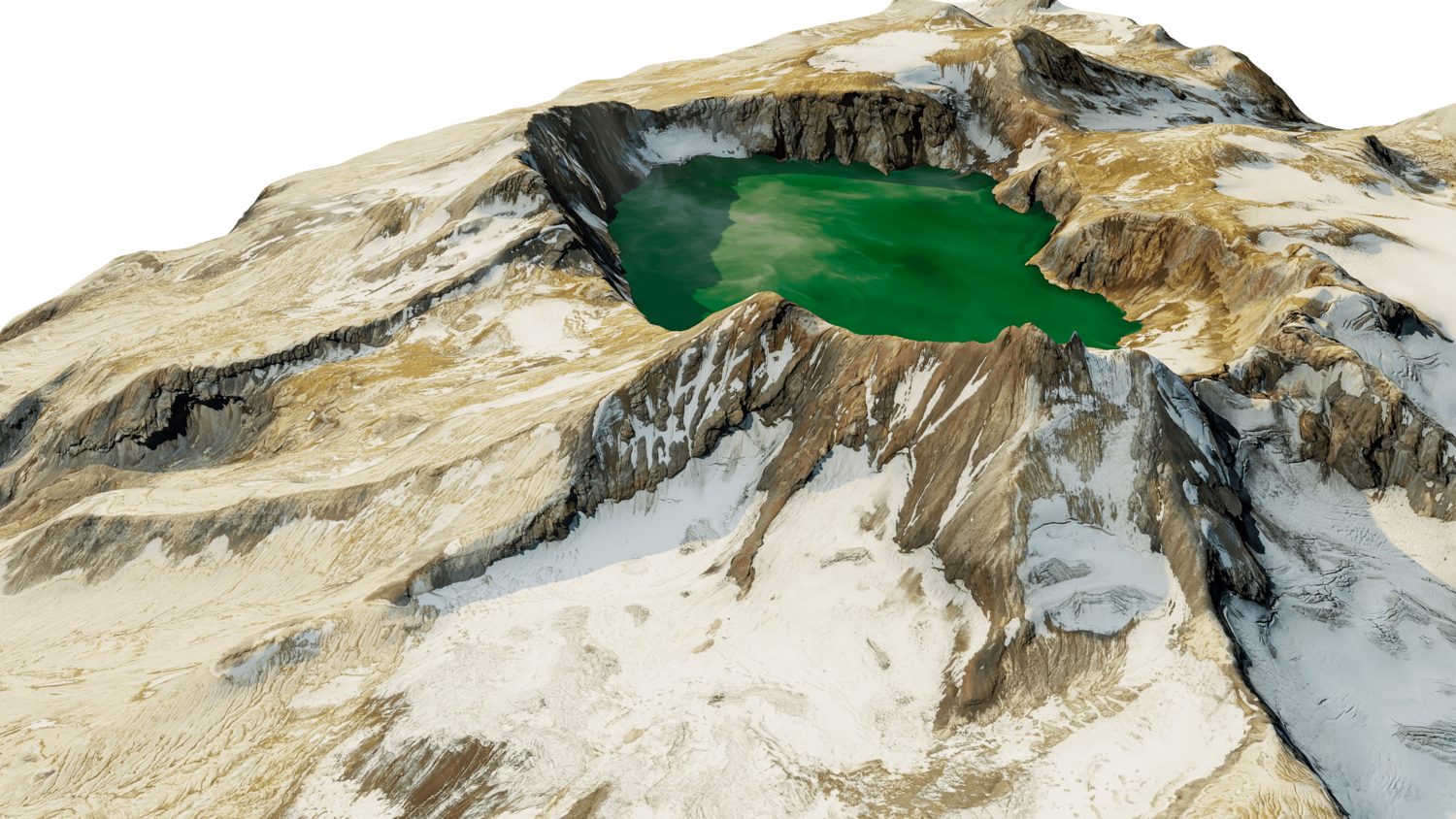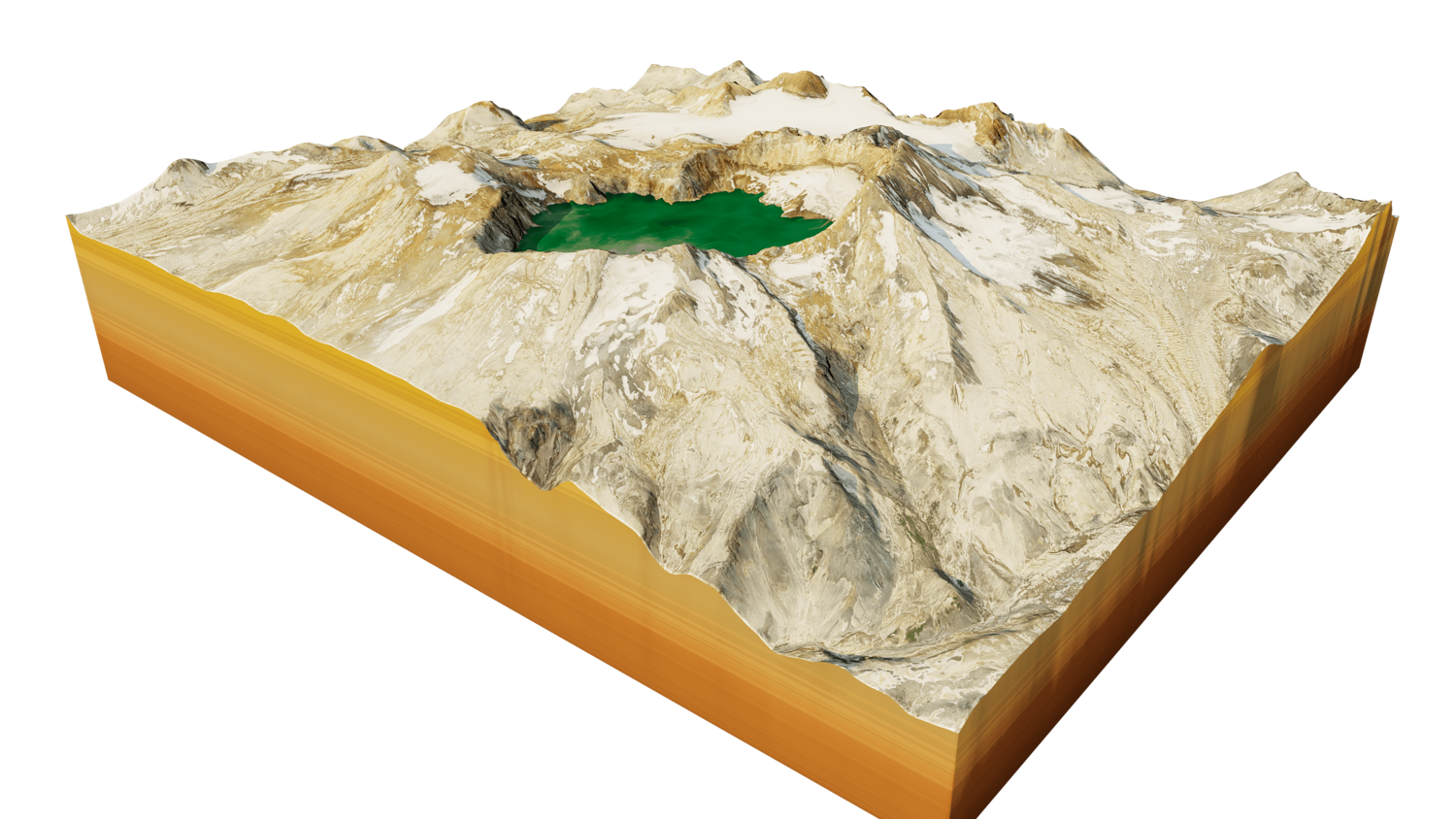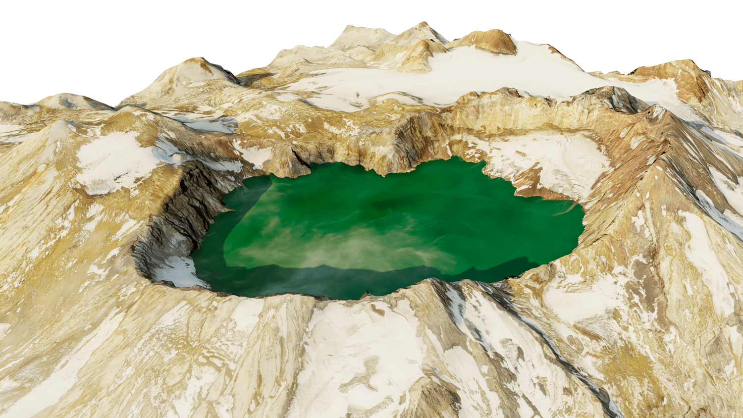 Katmai stratovolcano 3D model terrain. 3d model volcanic mount of Katmai, Alaska with its caldera.