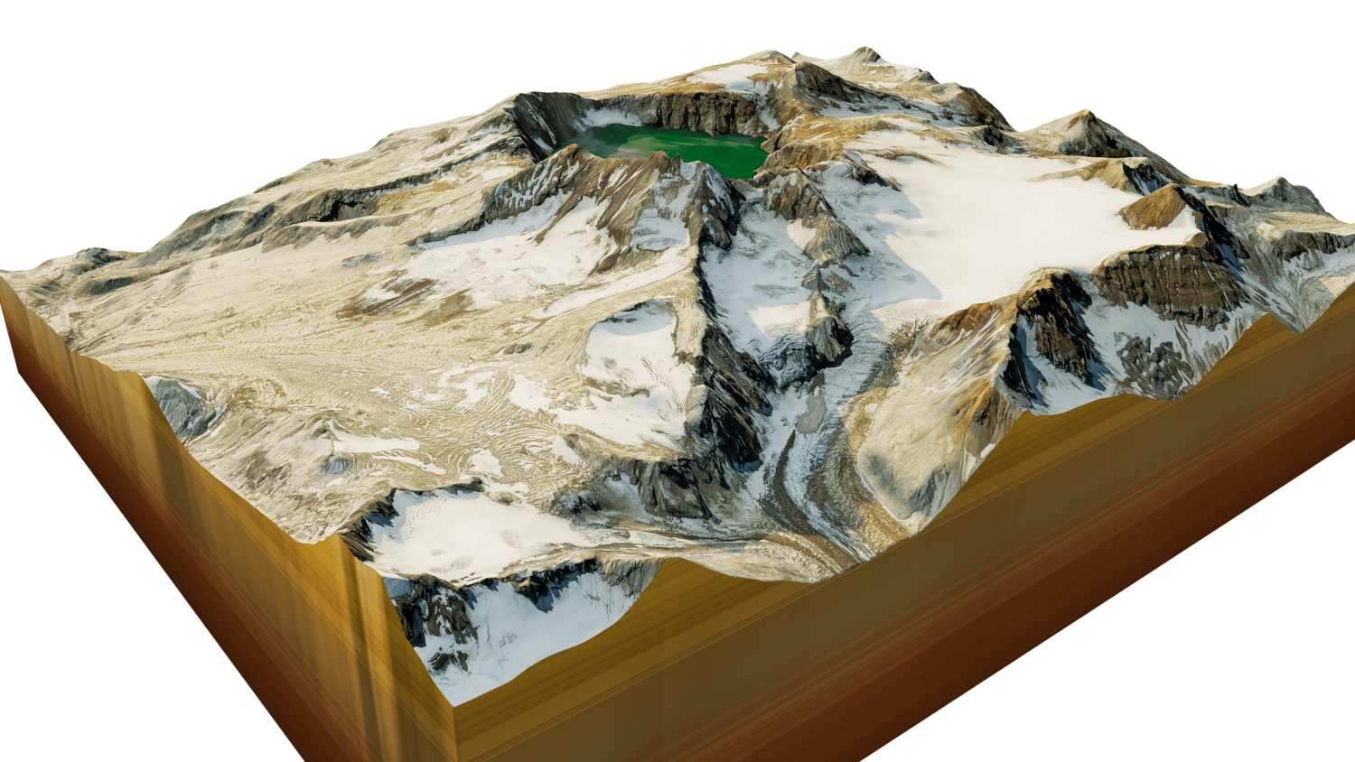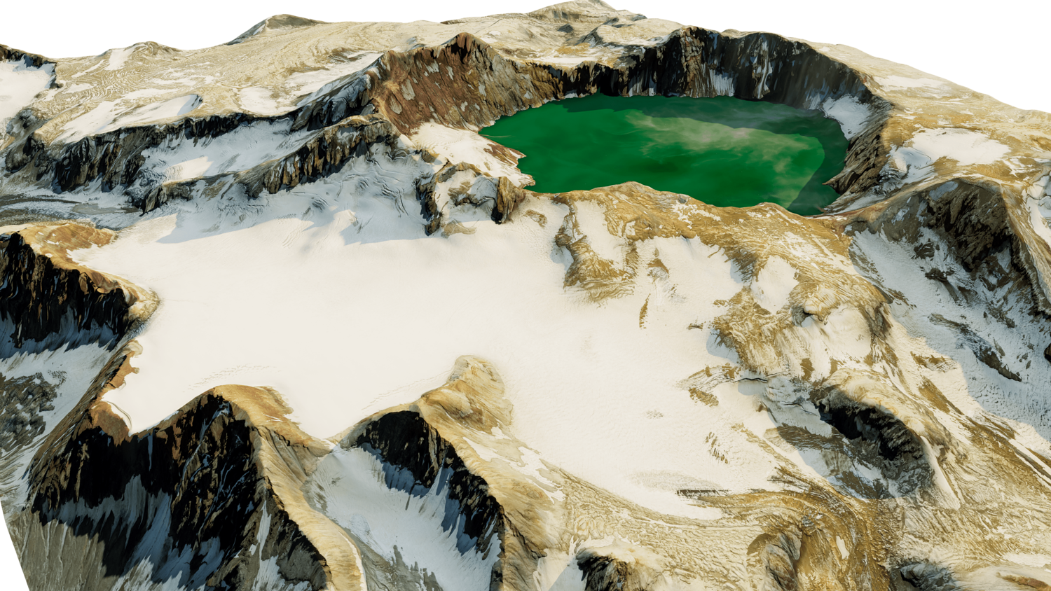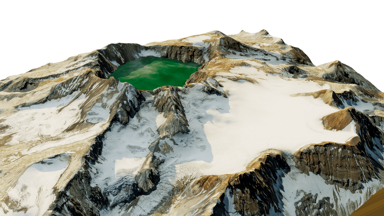 Katmai stratovolcano 3D model terrain. 3d model volcanic mount of Katmai, Alaska with its caldera.