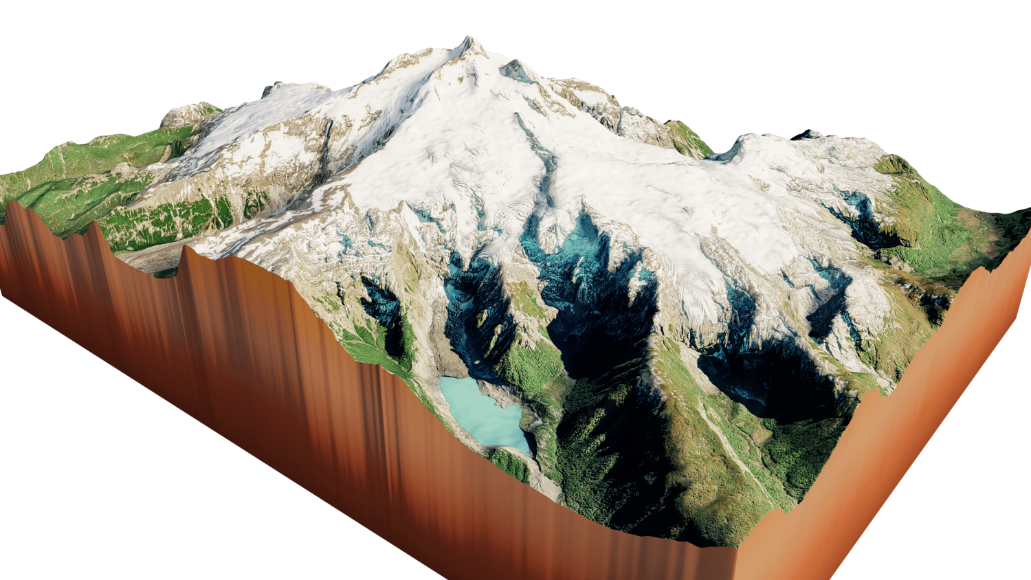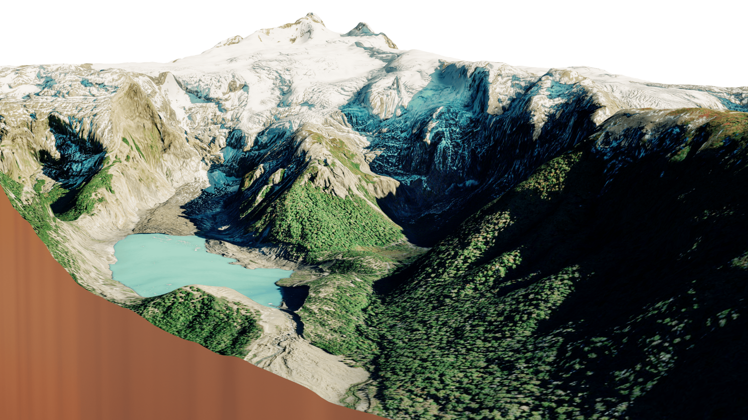 Tronador volcano 3d model terrain, Tronador Mountain 3d landscape model