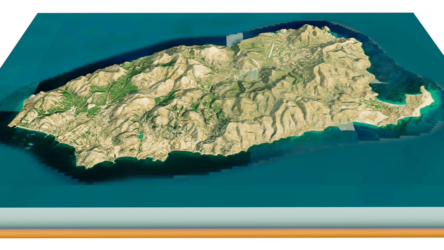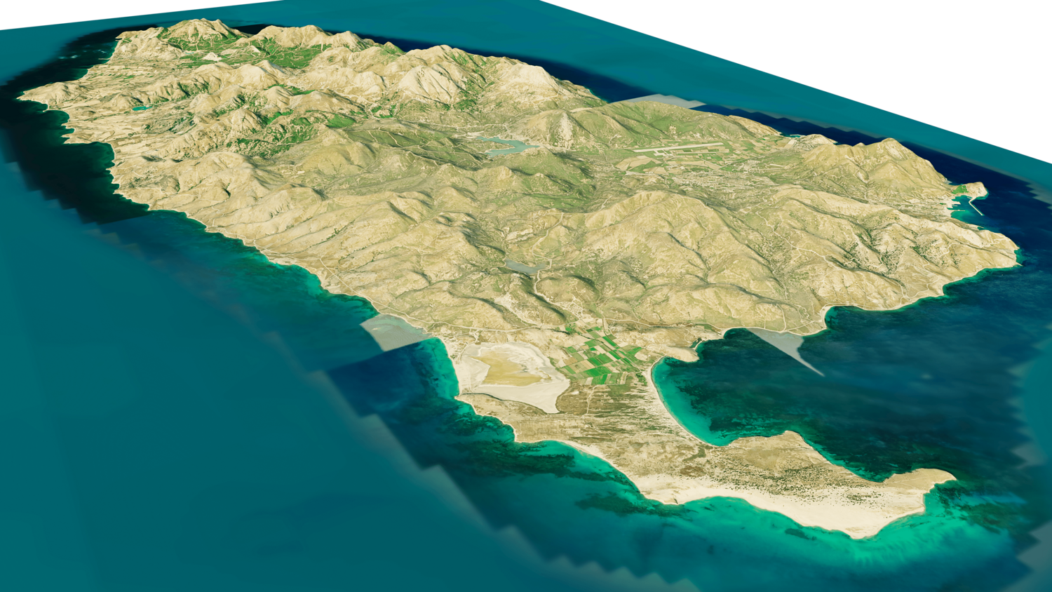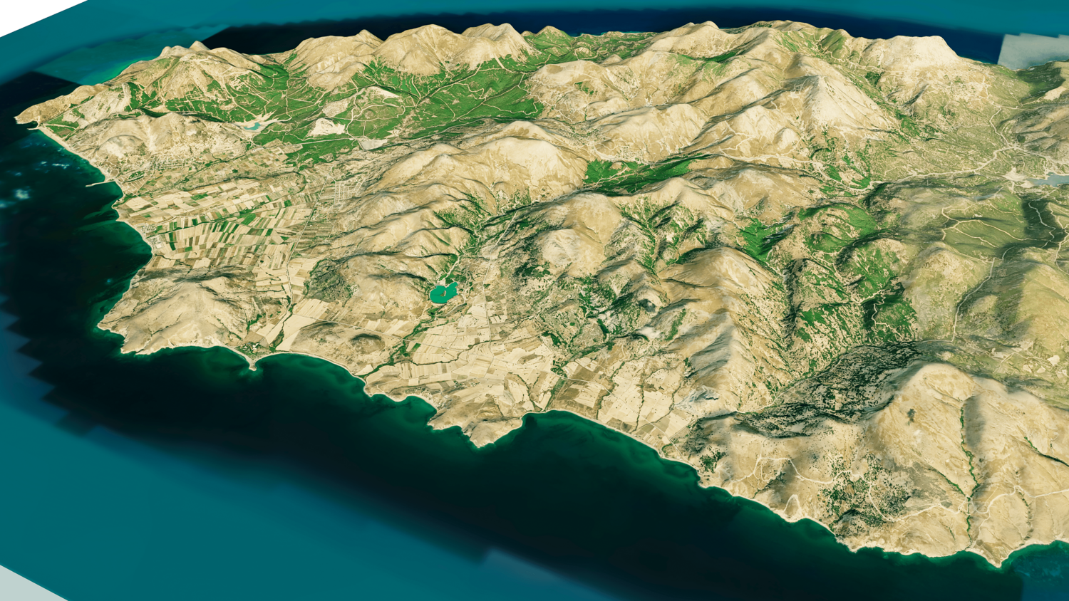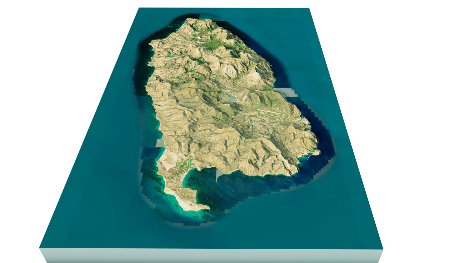 Gokceada Island 3D model terrain. 3d model island of Imbros, Turkey with its landscape of mountains, beaches and forests.
