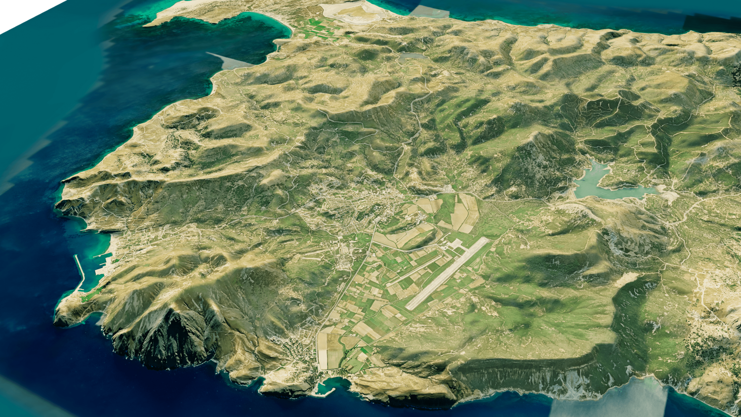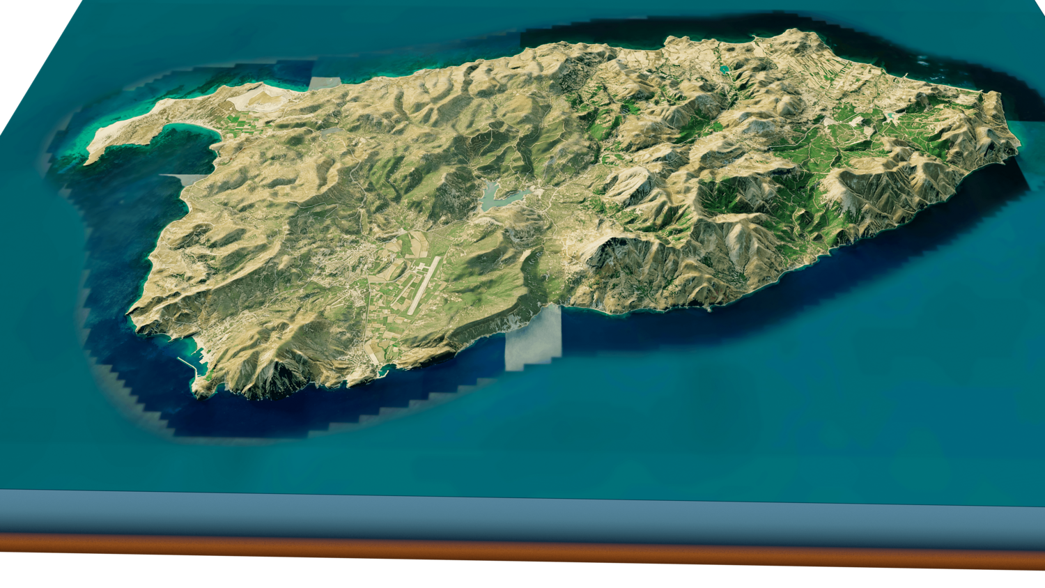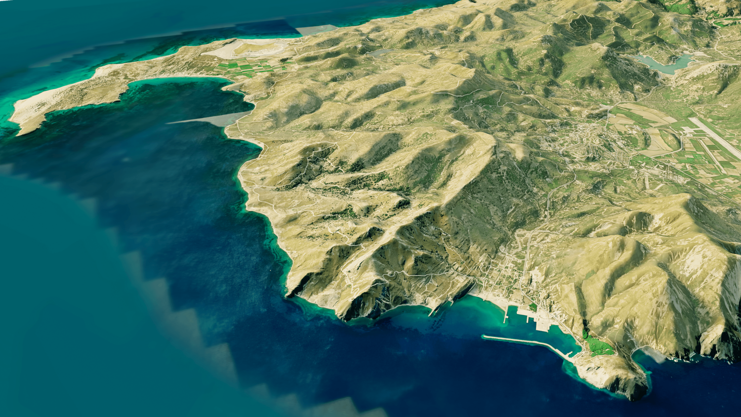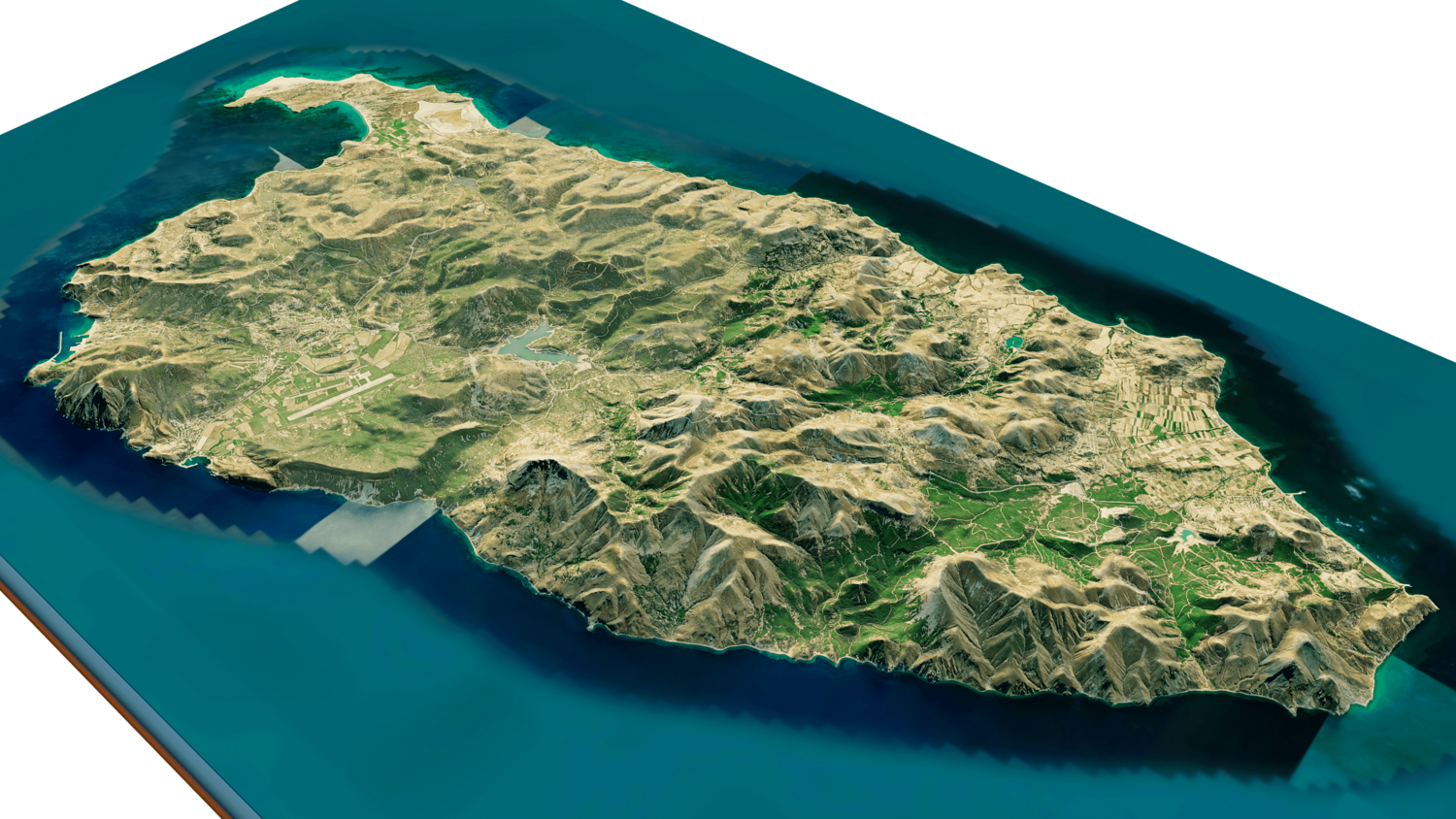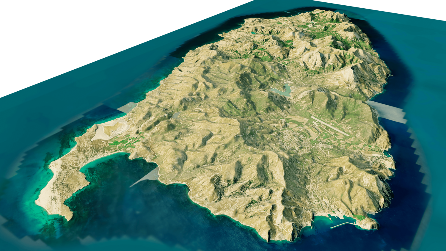 Gokceada Island 3D model terrain. 3d model island of Imbros, Turkey with its landscape of mountains, beaches and forests.