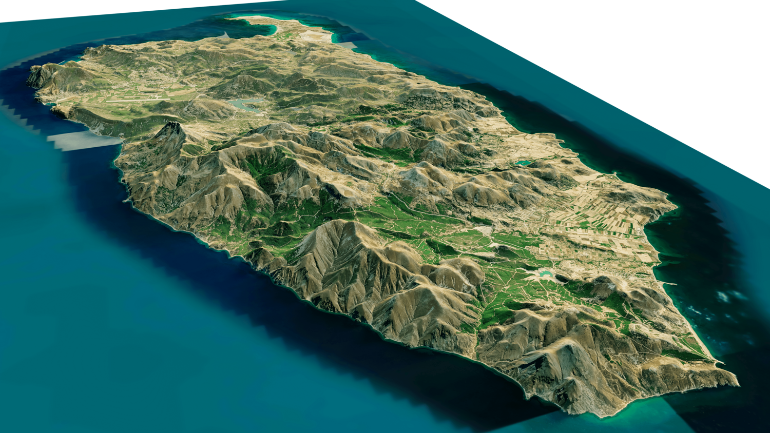 3d model landscape of Imbros Island, Aegean Islands, North Aegean islands, Aegean Sea, Turkey.