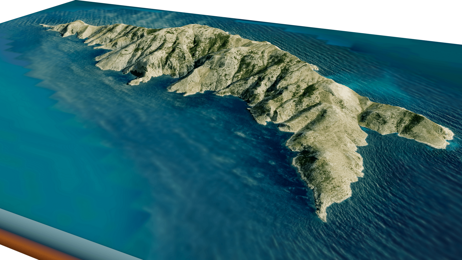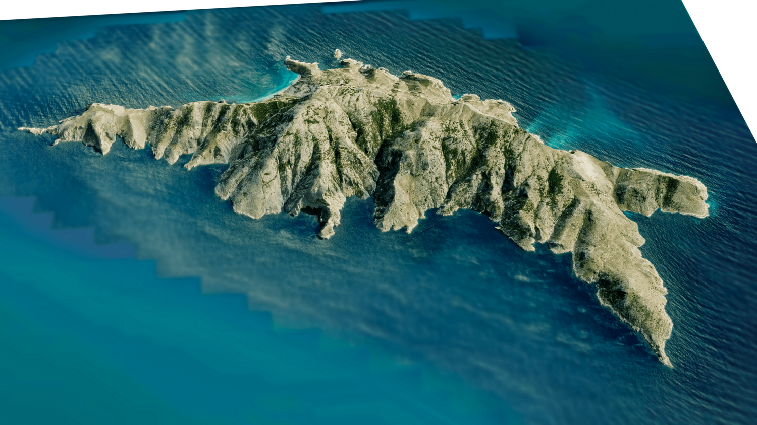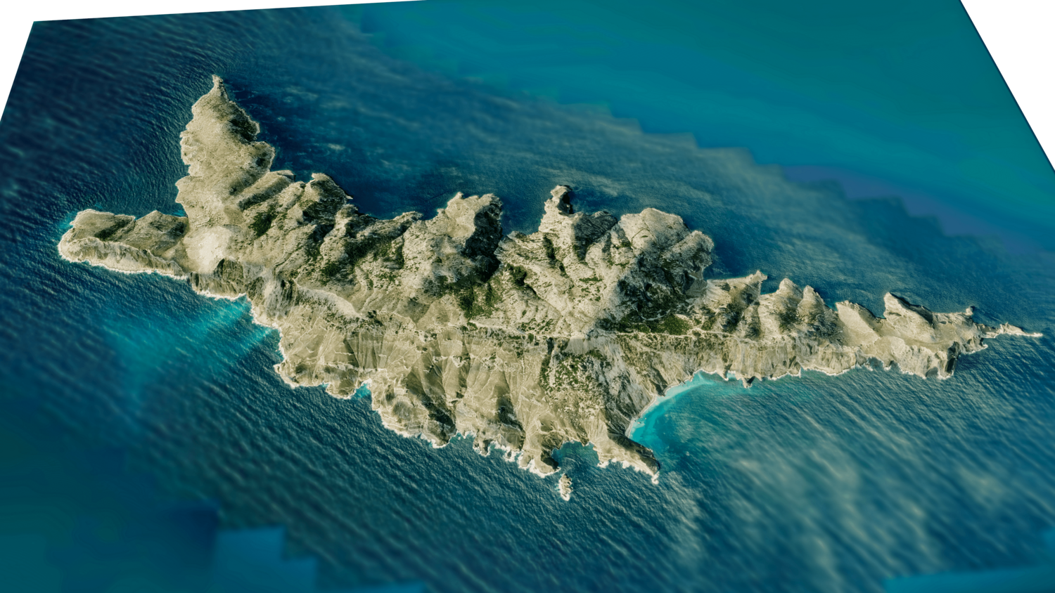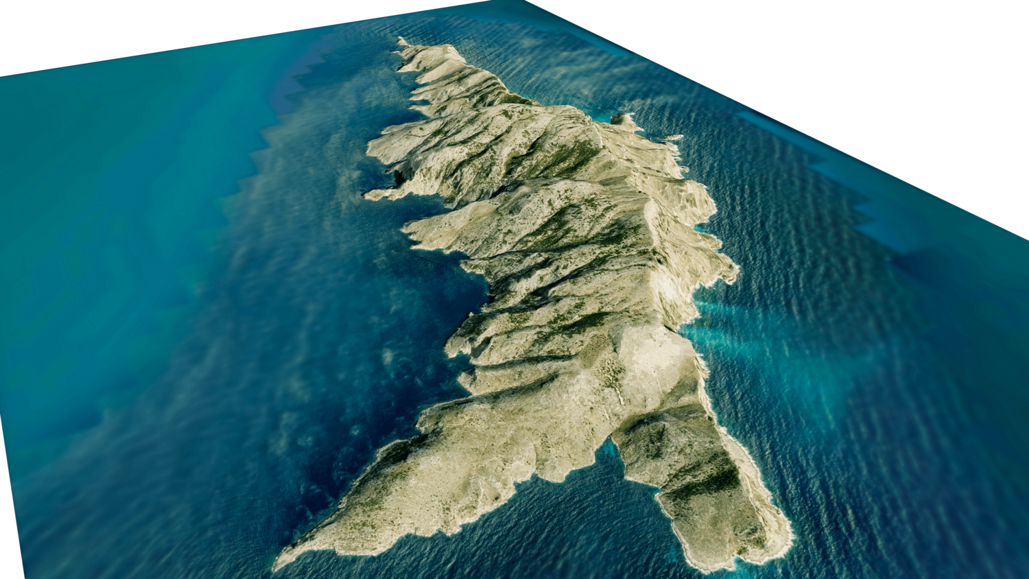 Gioura Island 3D model terrain. 3d model island of Gioura, Greece with its landscape of mountains, beaches and forests.