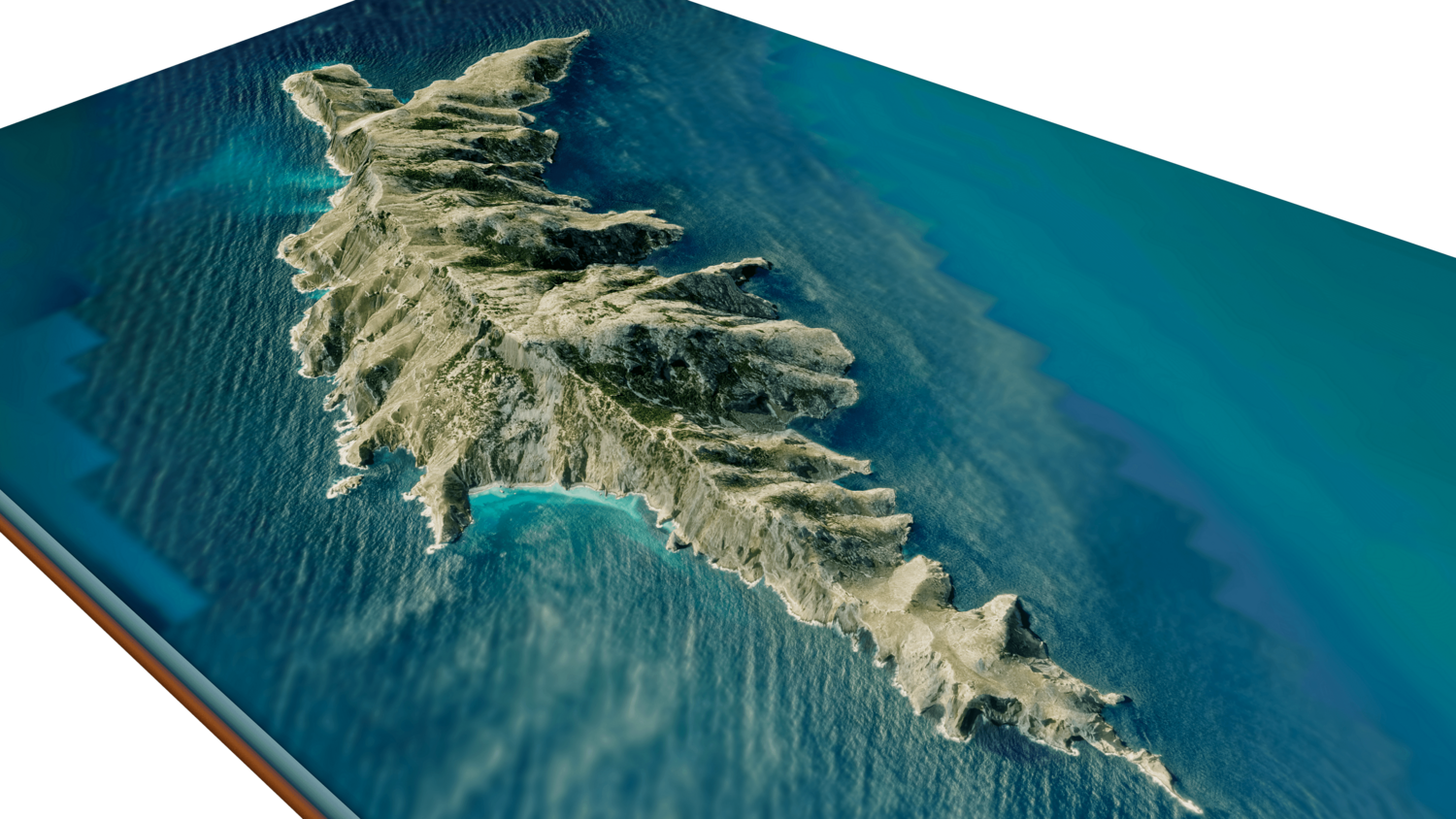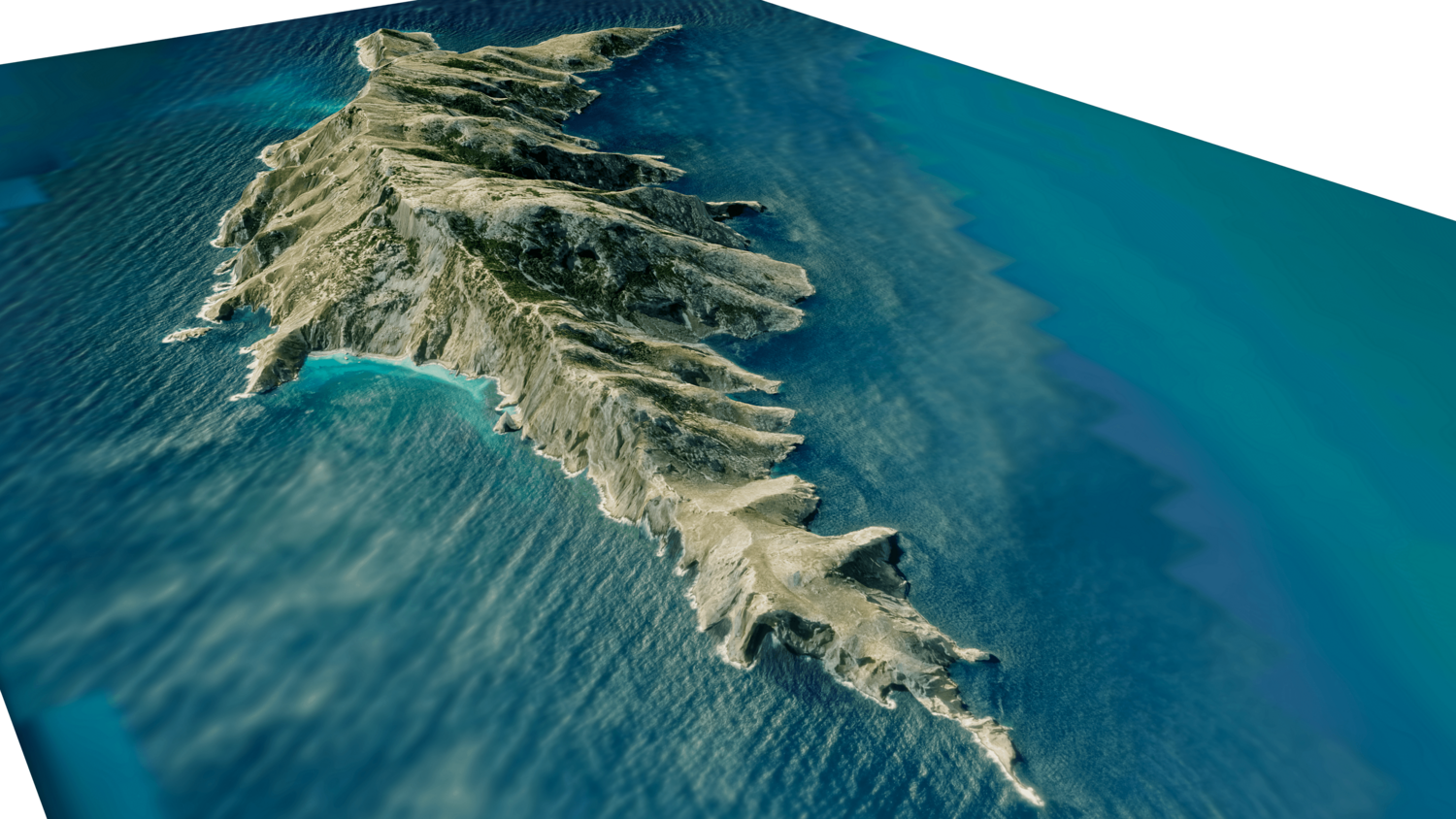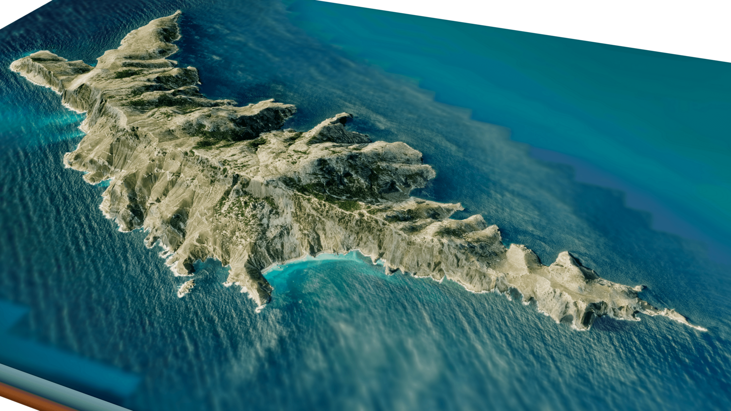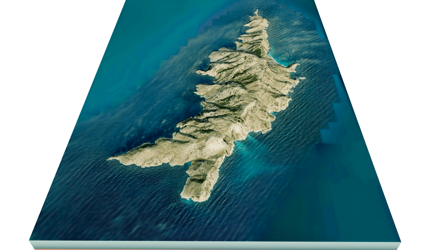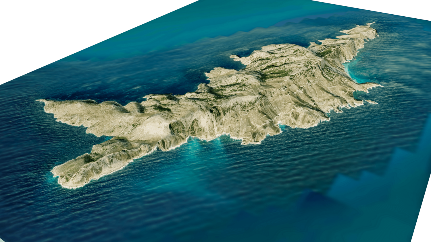 Gioura Island 3D model terrain. 3d model island of Gioura, Greece with its landscape of mountains, beaches and forests.