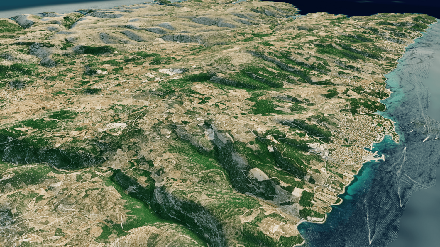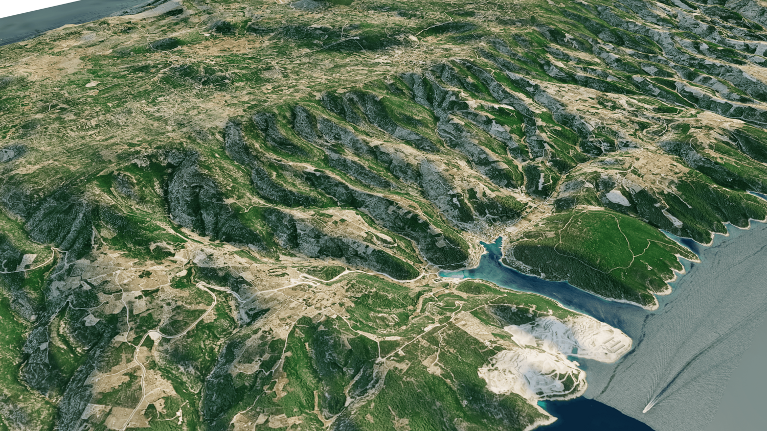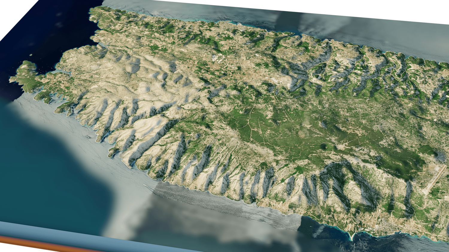 3d model landscape of Brac island, Dalmatian Archipelago, Adriatic Sea, Split-Dalmatia, Croatia.