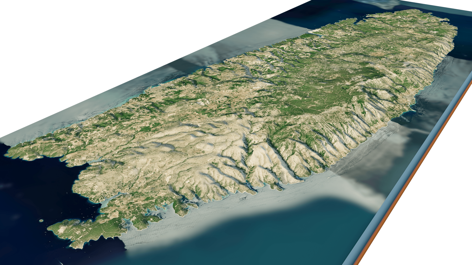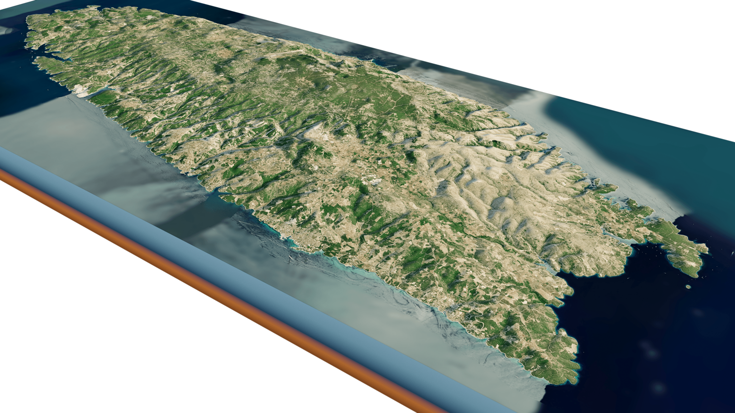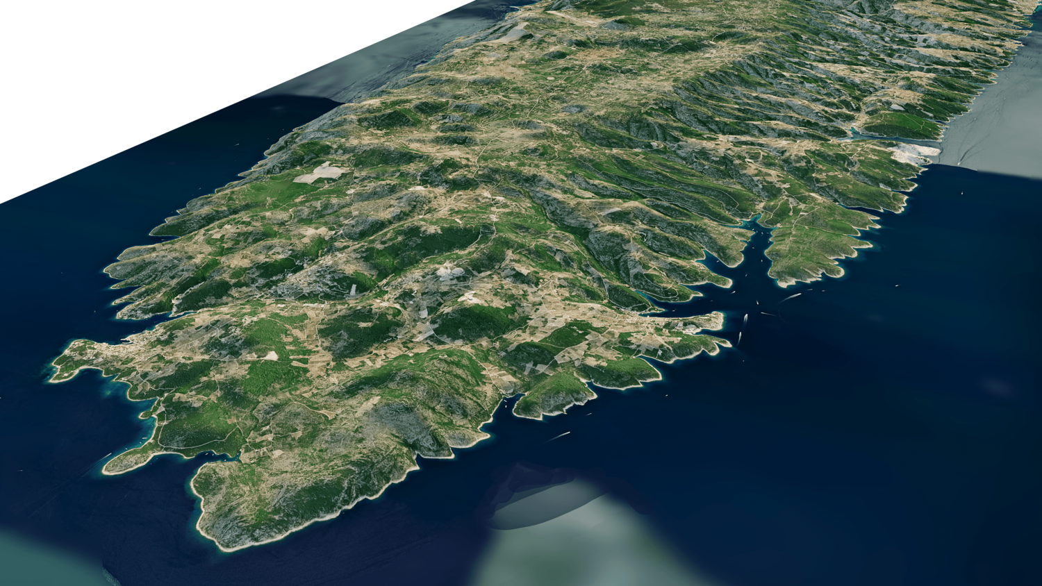 Brac island 3D model terrain. 3d model island of Brac, Croatia and with its landscape of mountains, beaches and forests.