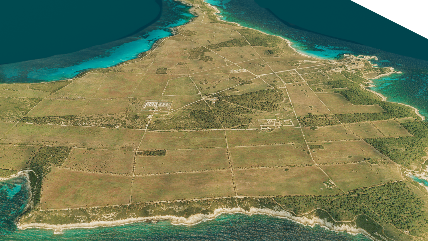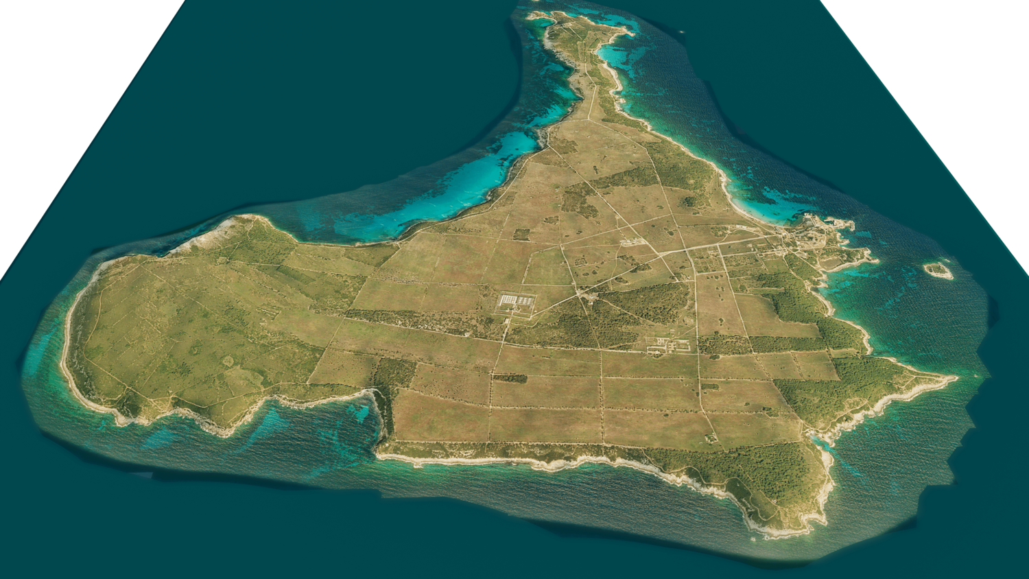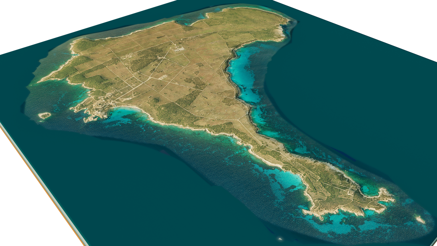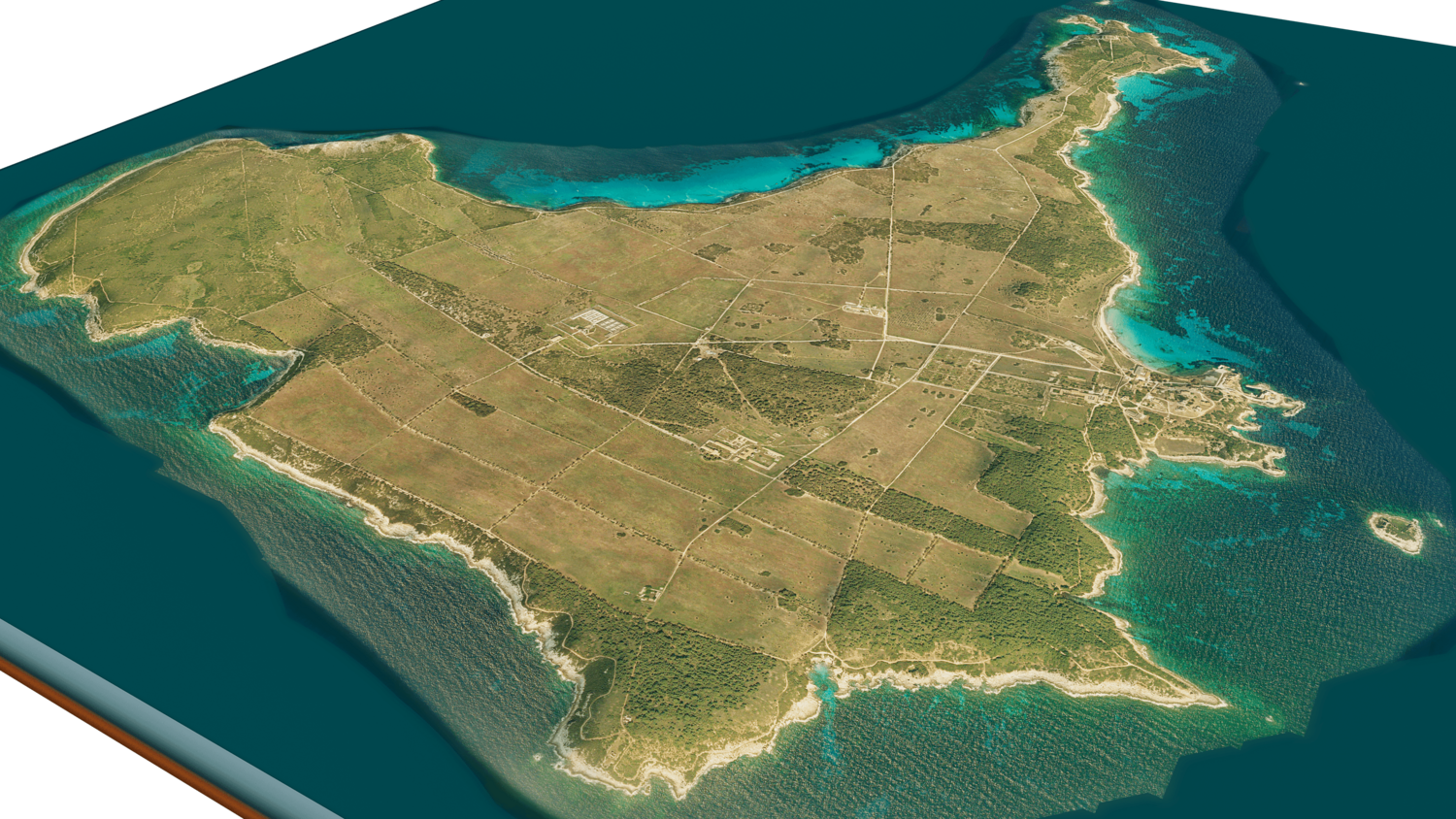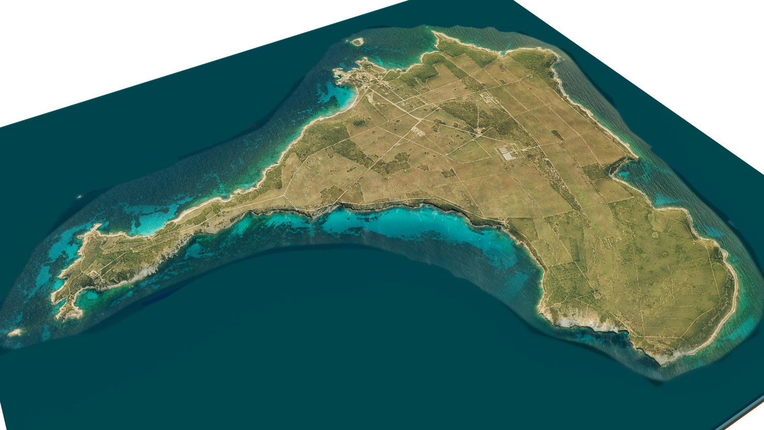 3d model landscape of Pianosa Island, Tuscan Archipelago, Tyrrhenian Sea, Livorno, Italy.