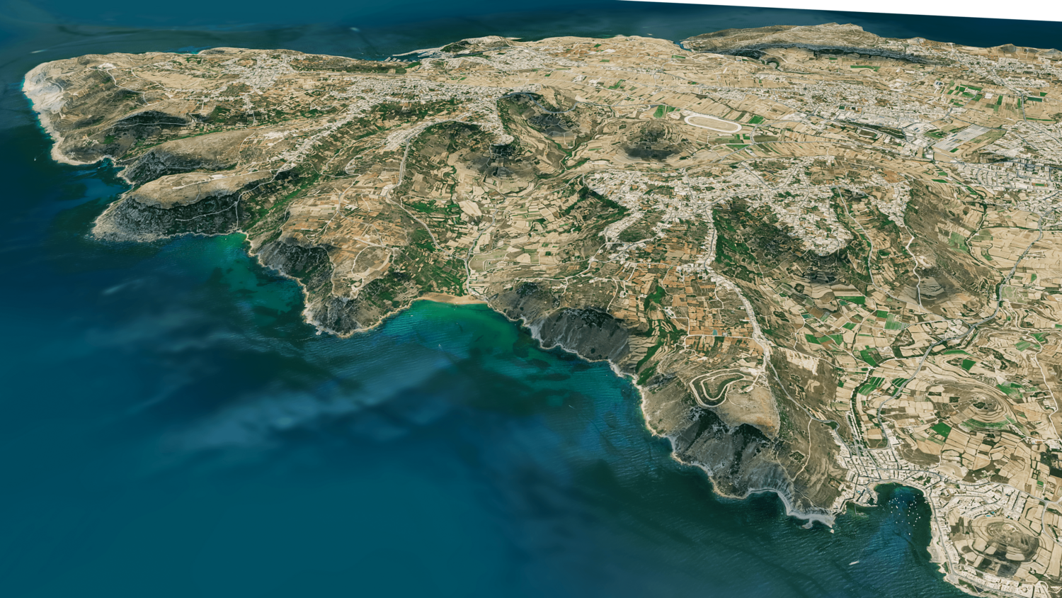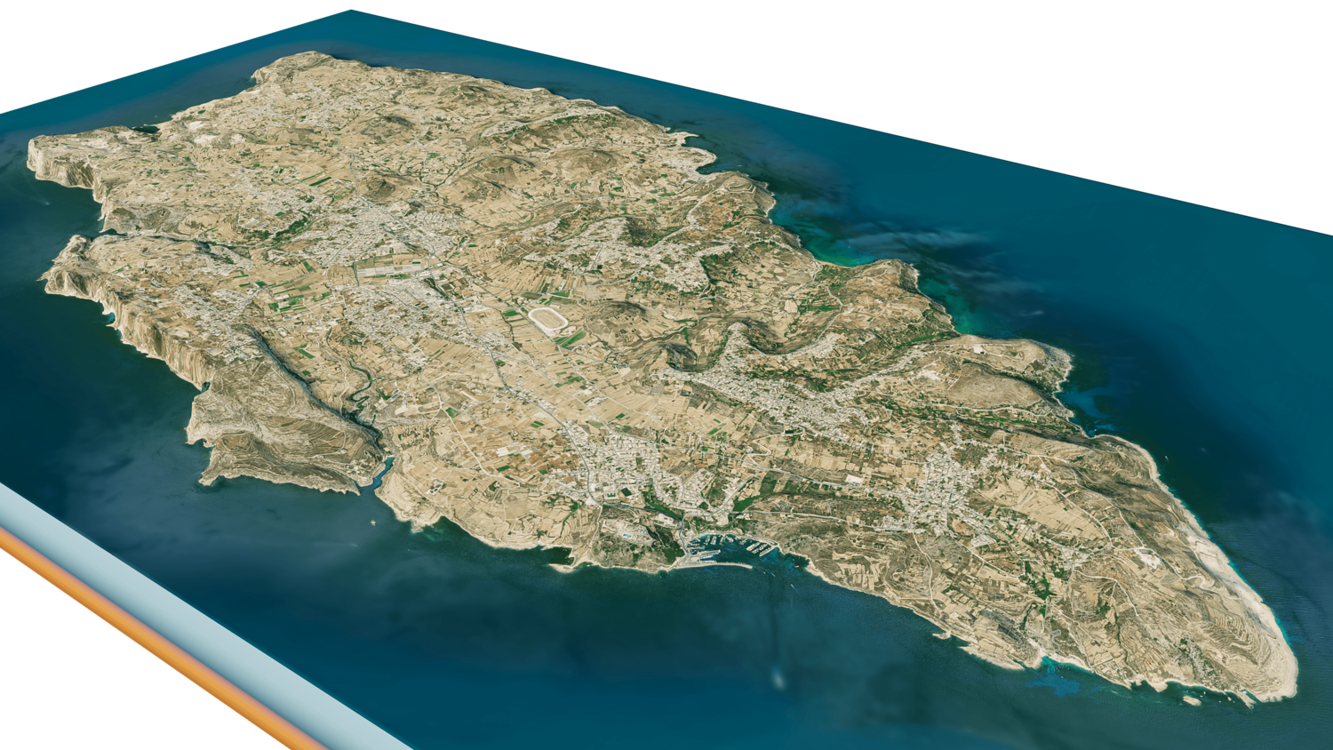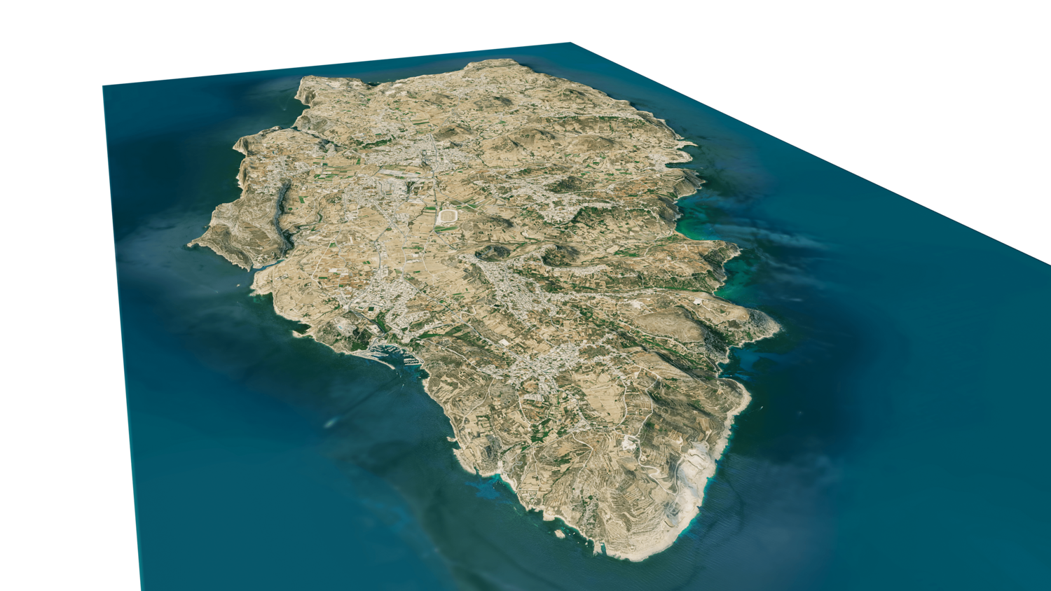 3d model landscape of Gozo Island, Maltese islands, Mediterranean Sea, Malta.