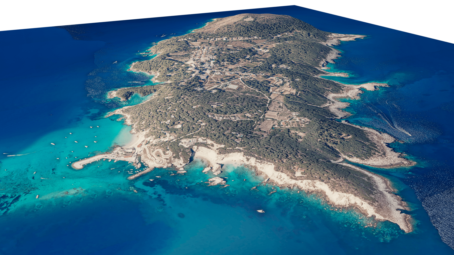 san domino island tremiti archipelago 3d model terrain. 3d model island of san domino with its landscape of mountains, beaches and forests.