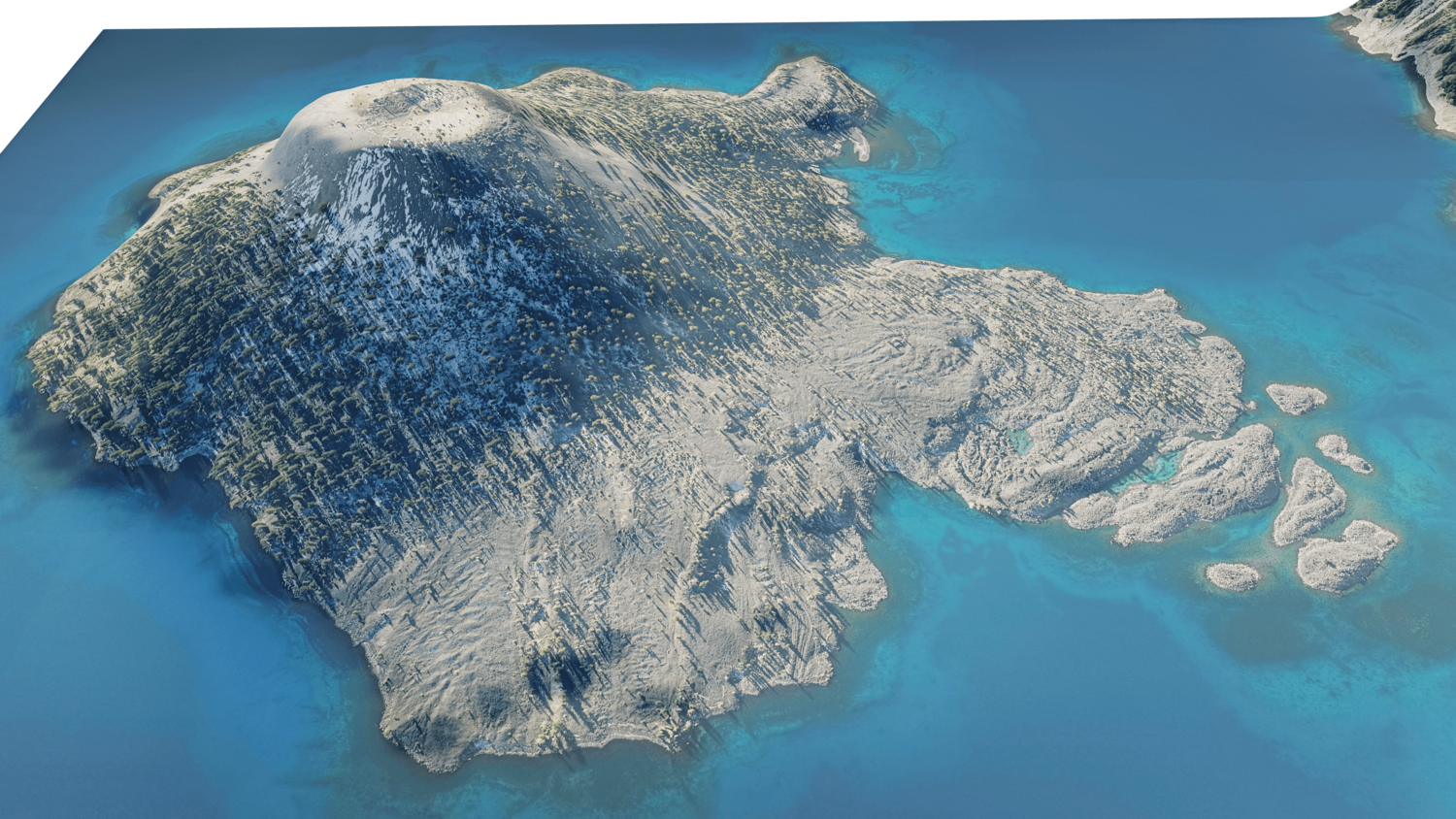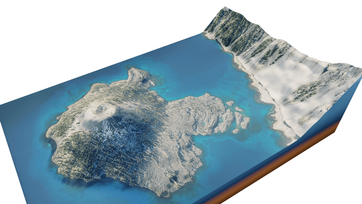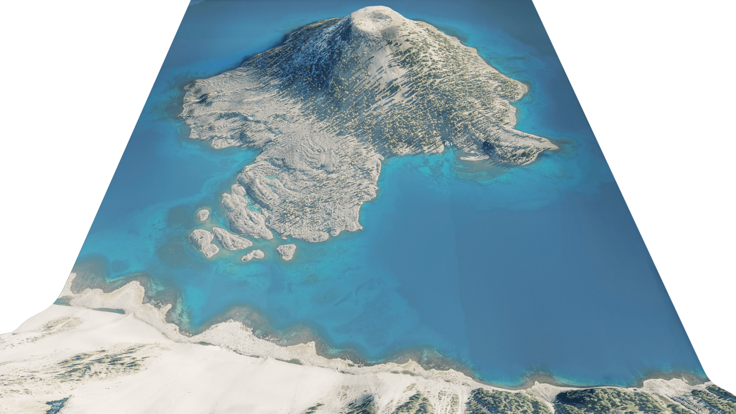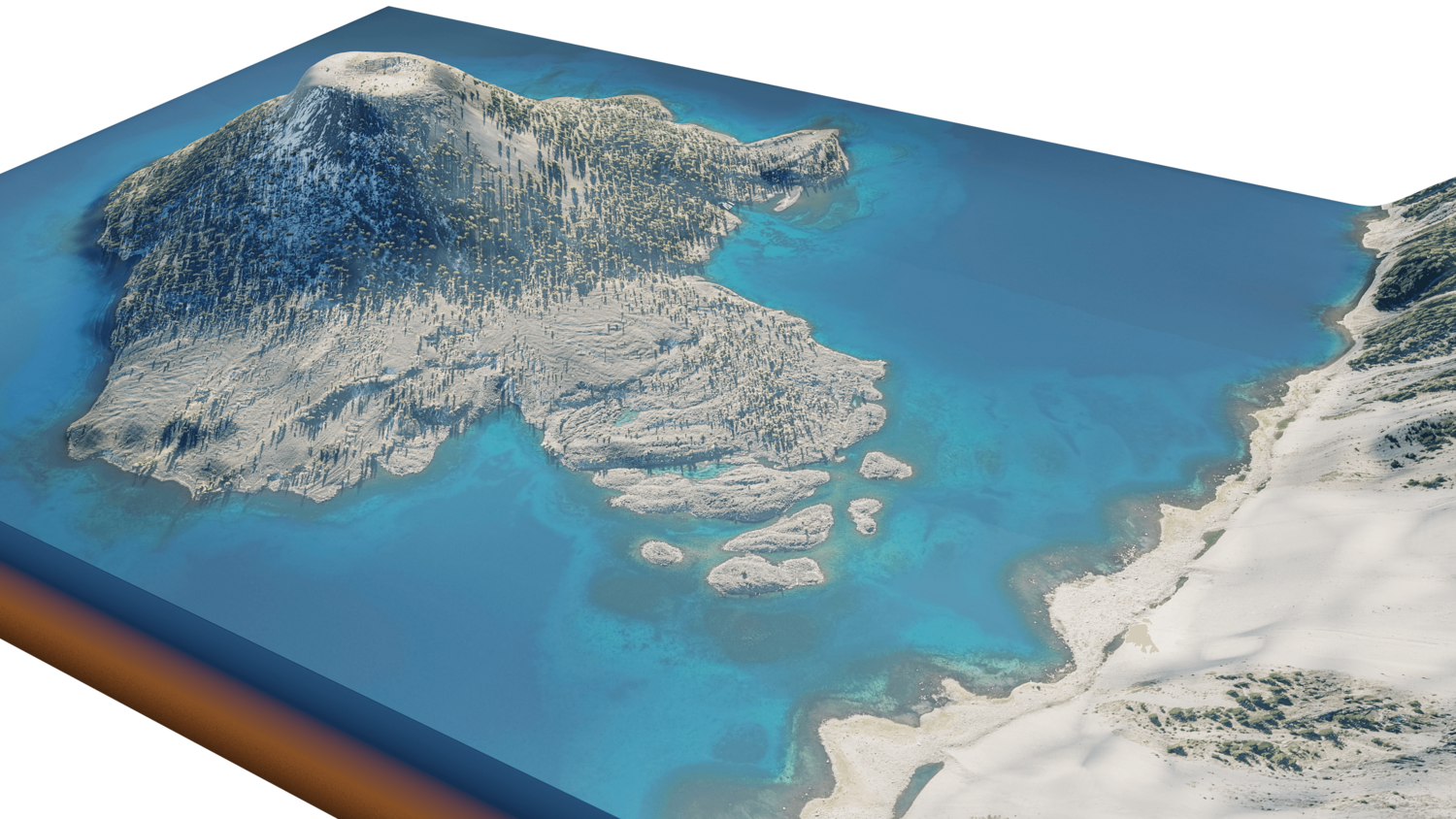 Wizard Island 3D model terrain. 3d model island of Wizard, Crater Lake and with its landscape of mountains, beaches and forests.