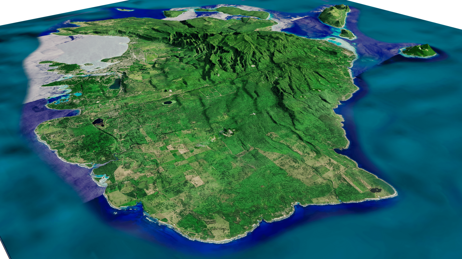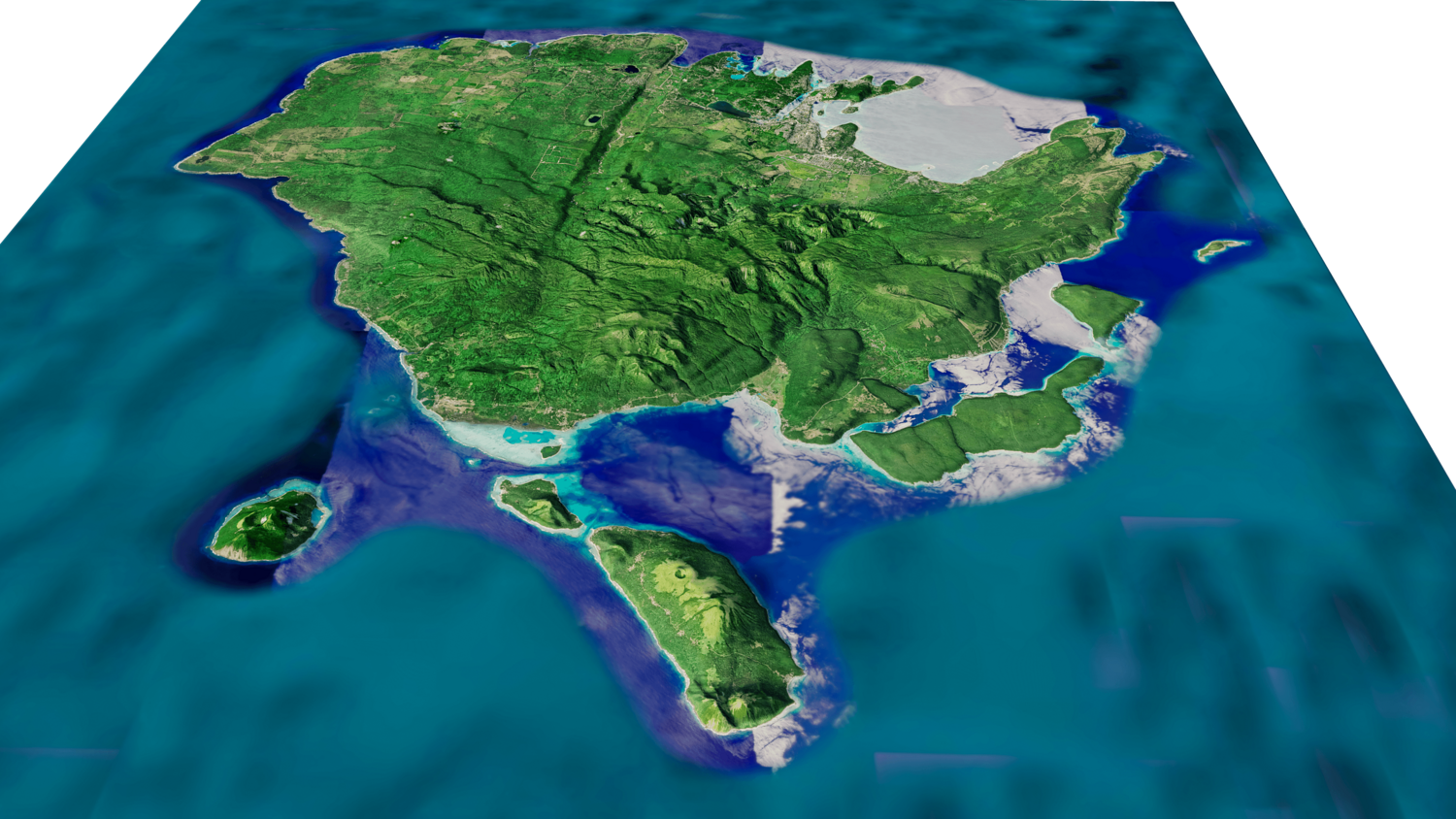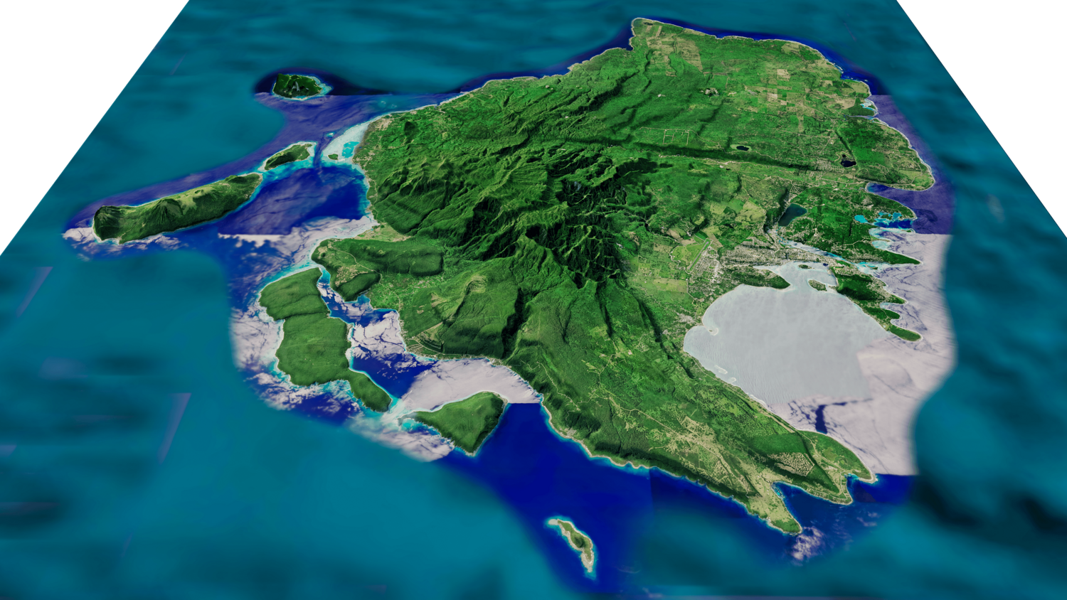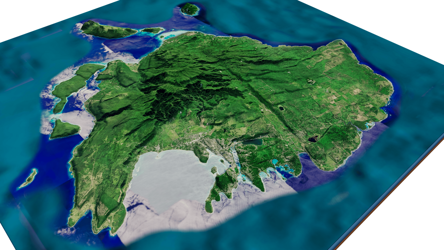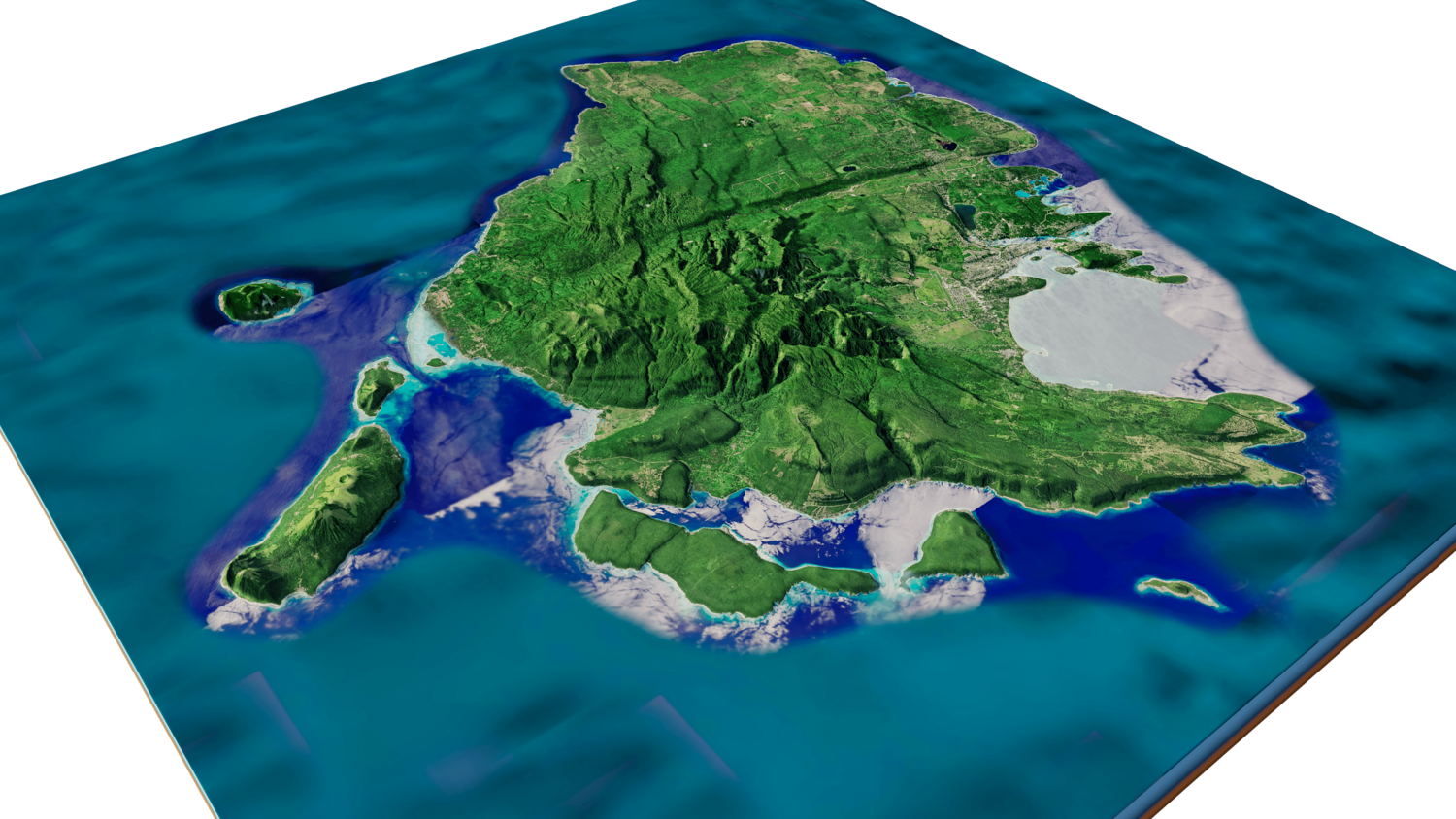 Efate island 3D model terrain. 3d model island of Efate, Vanuatu with its landscape of mountains, beaches and forests.