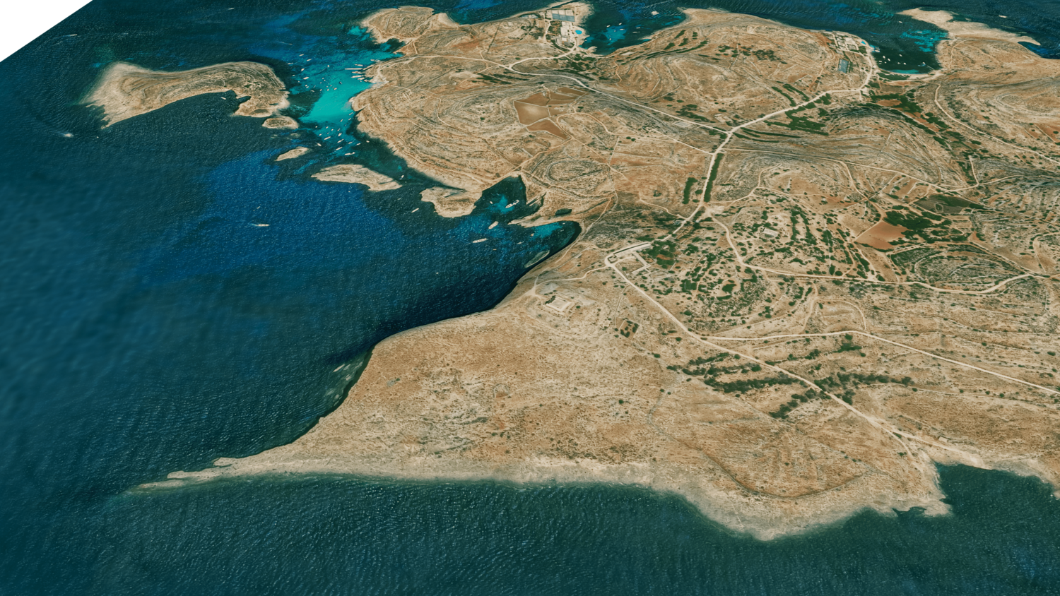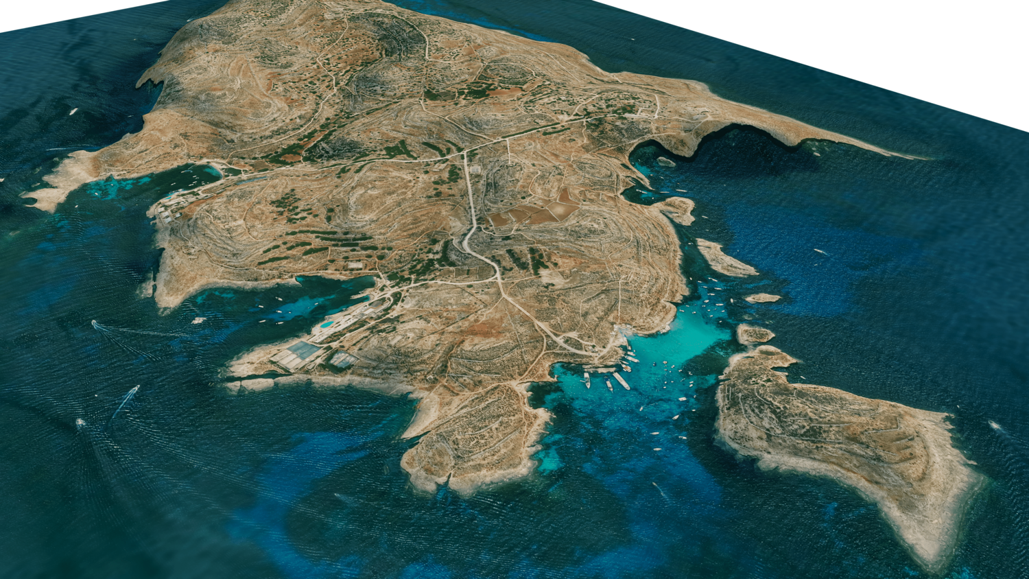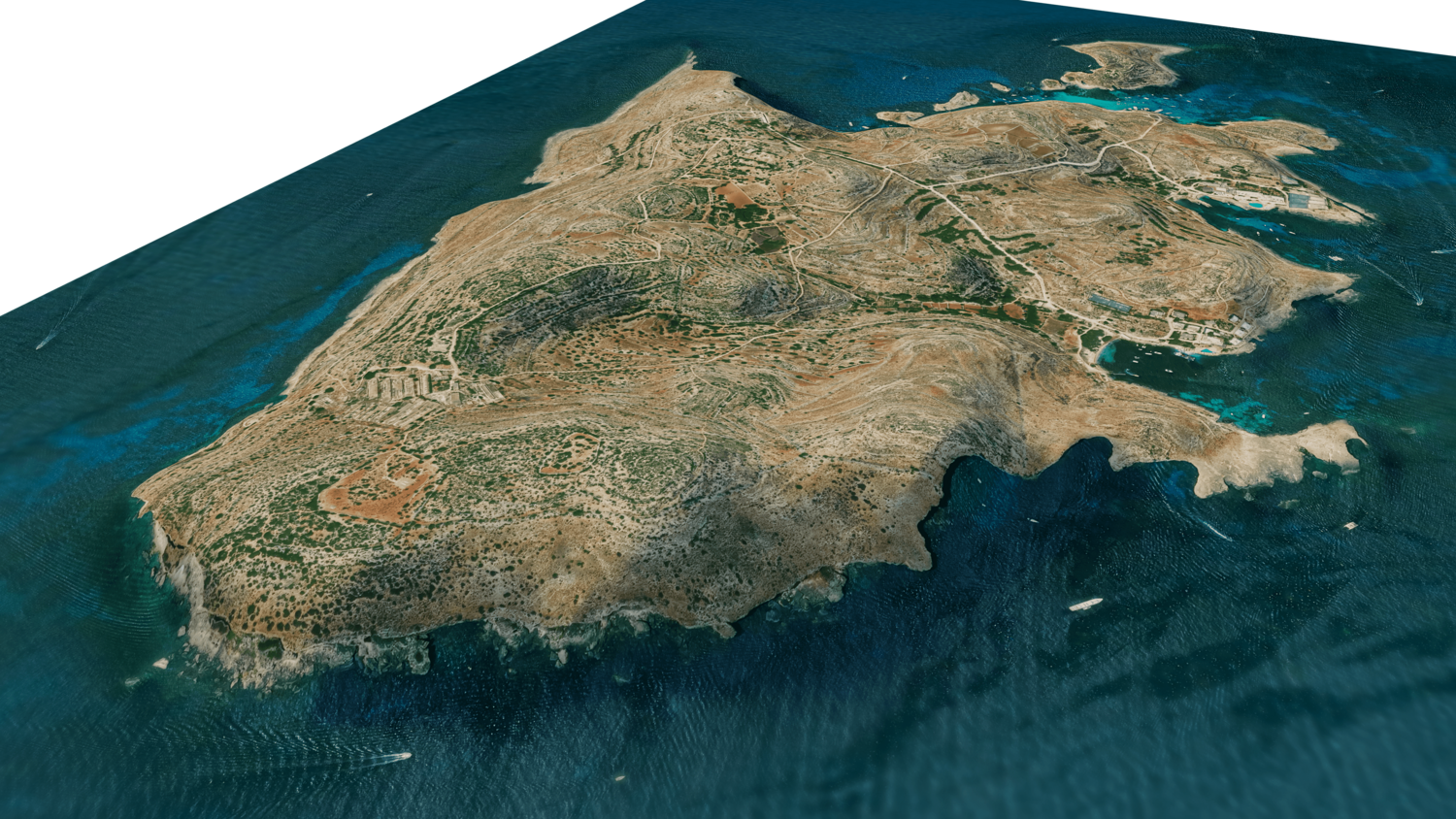 3d model landscape of Comino Island, Maltese islands, Mediterranean Sea, Malta.