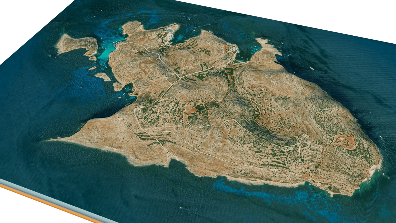 Comino Island 3D model terrain. 3d model island of Comino, Malta with its landscape of mountains, beaches and forests.