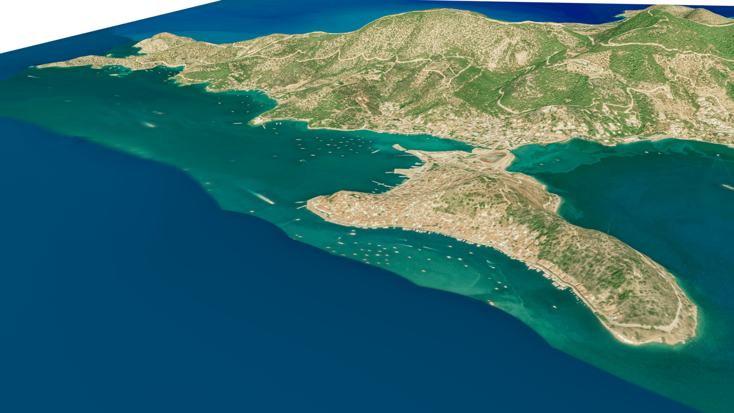 3d model landscape of Poros Island, Saronic Islands, Attica, Aegean Sea, Greece.