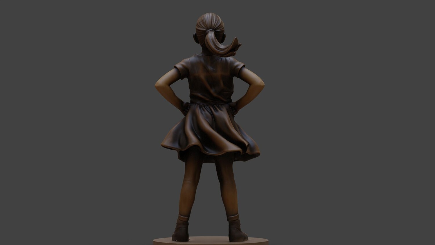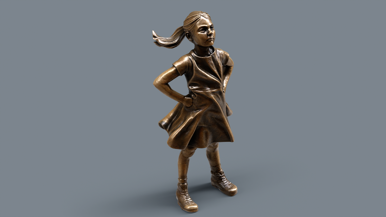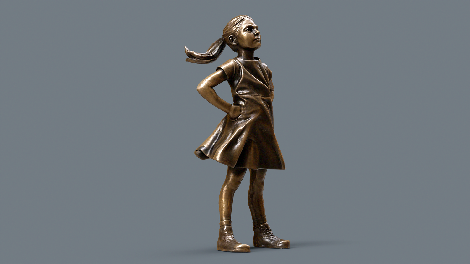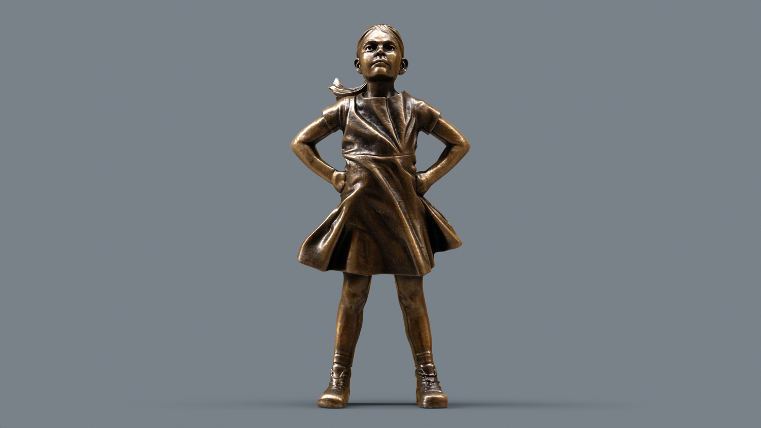 Fearless Girl is a bronze sculpture of a 1.2 m girl standing in a self-confident pose. It is located in New York City on Broad Street across from the New York Stock Exchange Building in the Financial District of Manhattan.