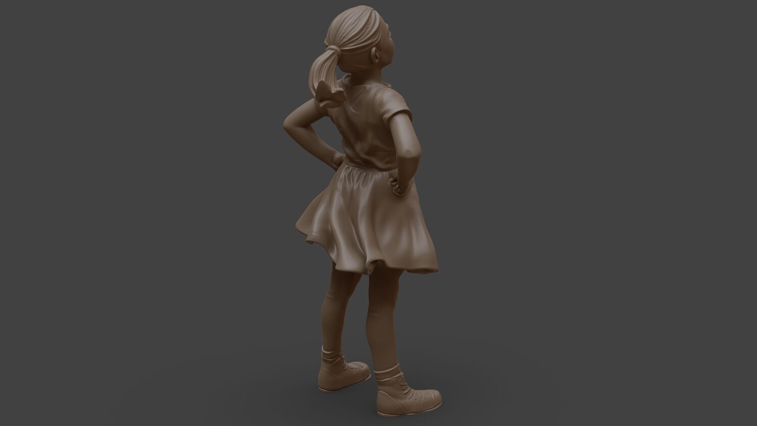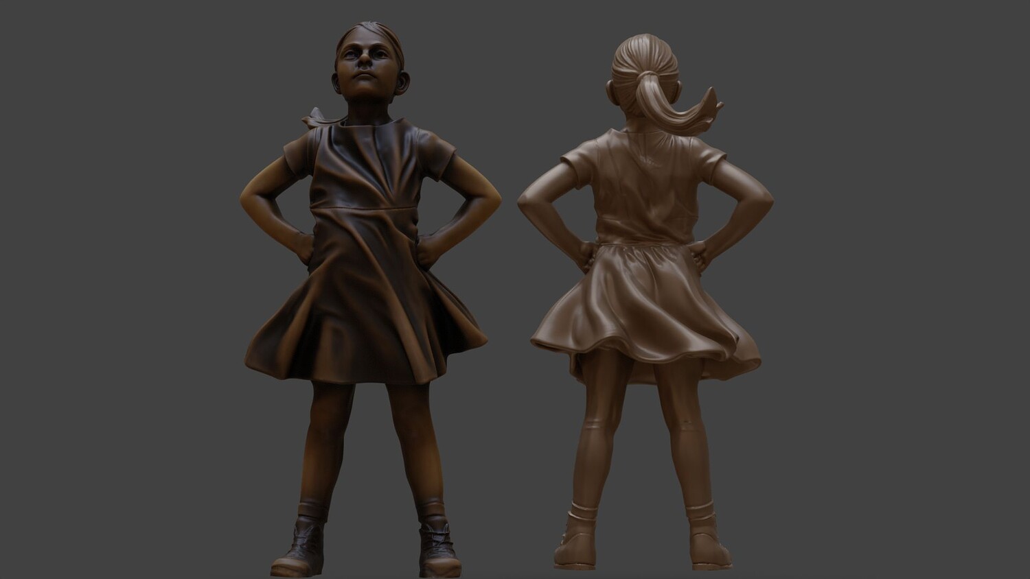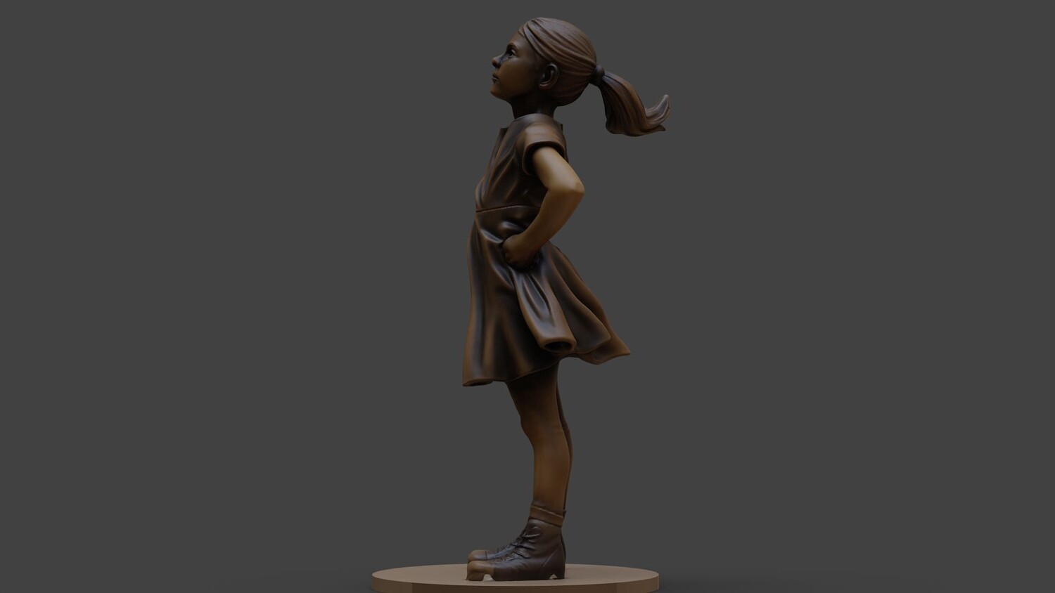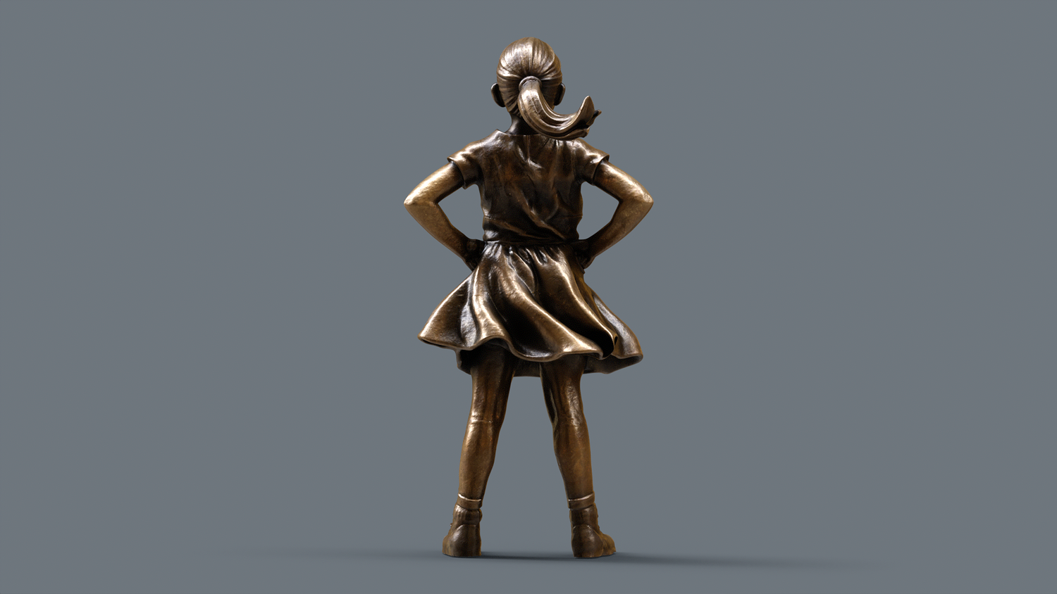 Fearless Girl is a bronze sculpture of a 1.2 m girl standing in a self-confident pose. It is located in New York City on Broad Street across from the New York Stock Exchange Building in the Financial District of Manhattan.