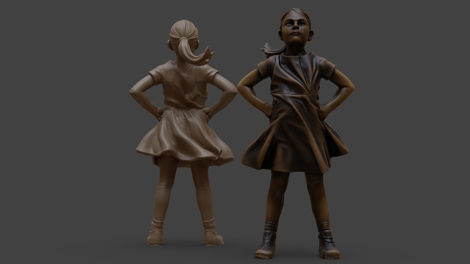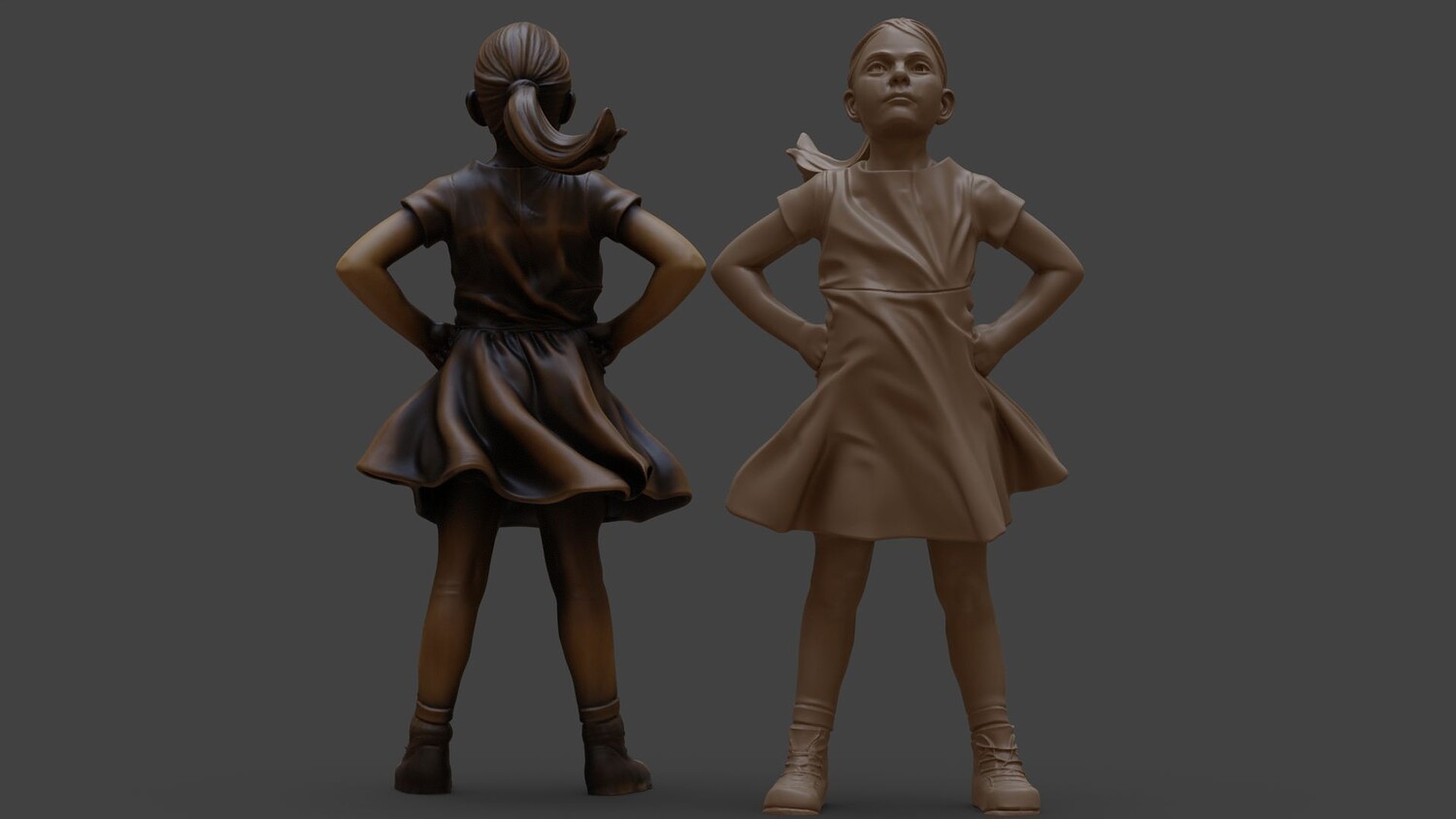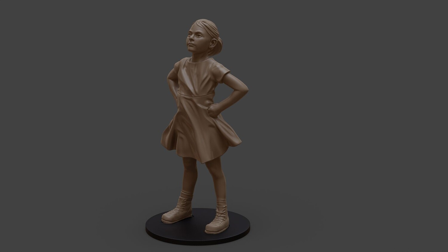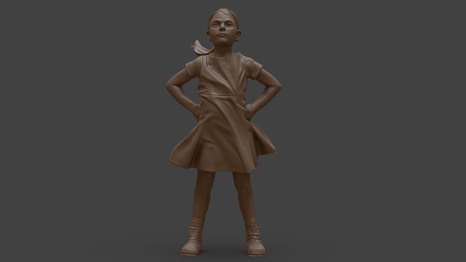 Fearless Girl is a bronze sculpture of a 1.2 m girl standing in a self-confident pose. It is located in New York City on Broad Street across from the New York Stock Exchange Building in the Financial District of Manhattan.