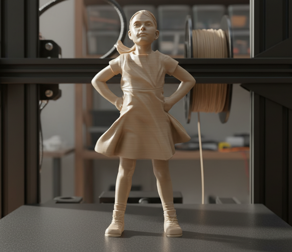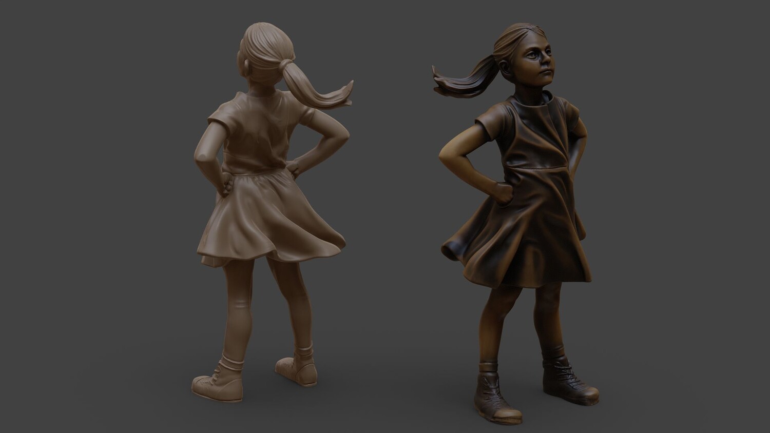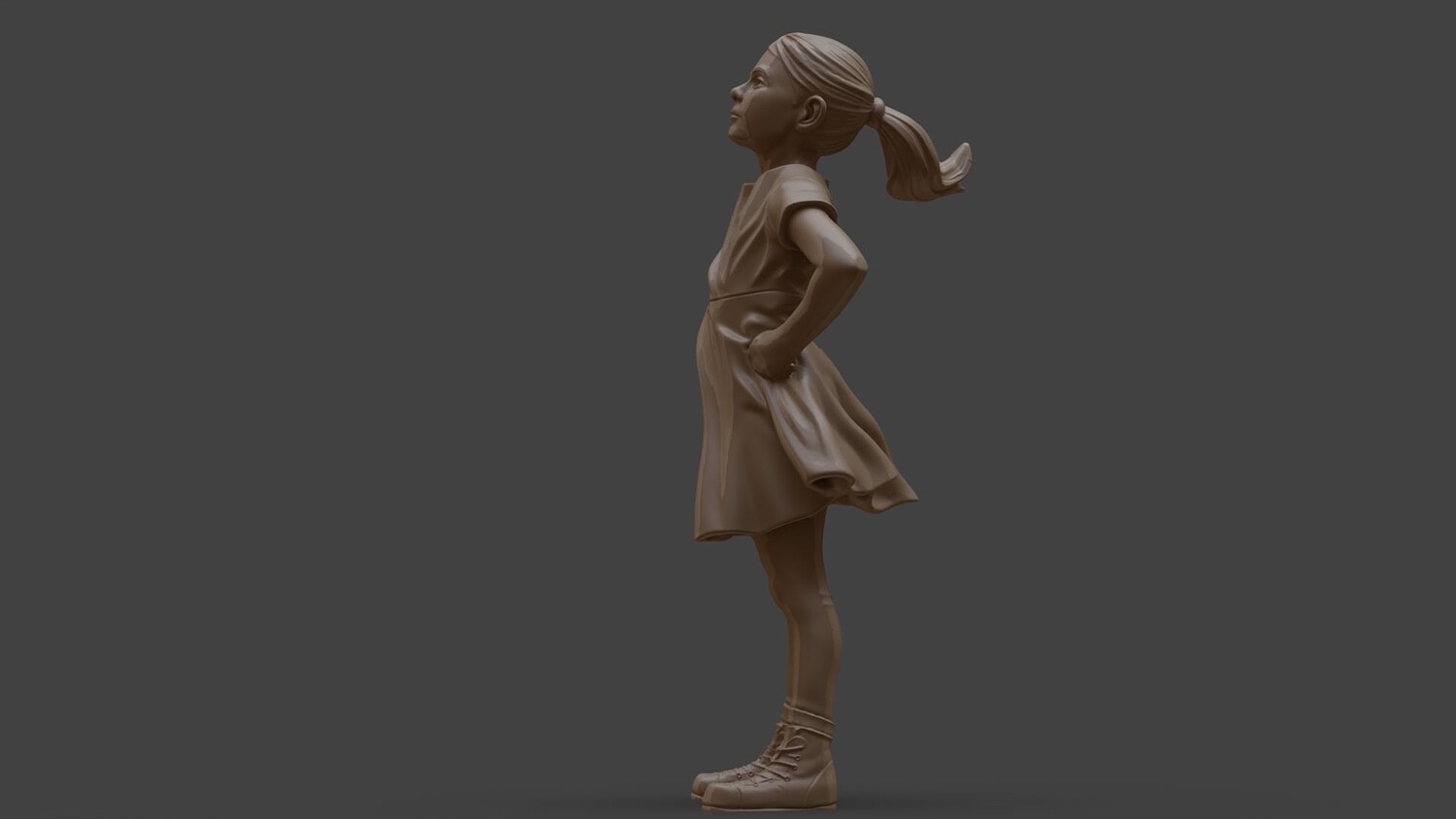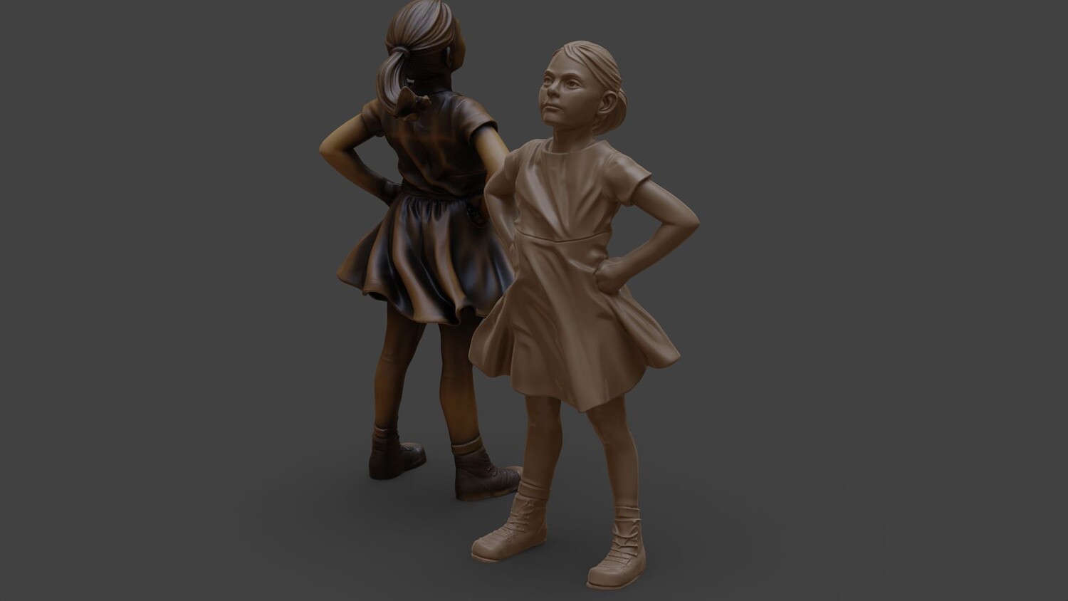 Fearless Girl is a bronze sculpture of a 1.2 m girl standing in a self-confident pose. It is located in New York City on Broad Street across from the New York Stock Exchange Building in the Financial District of Manhattan.