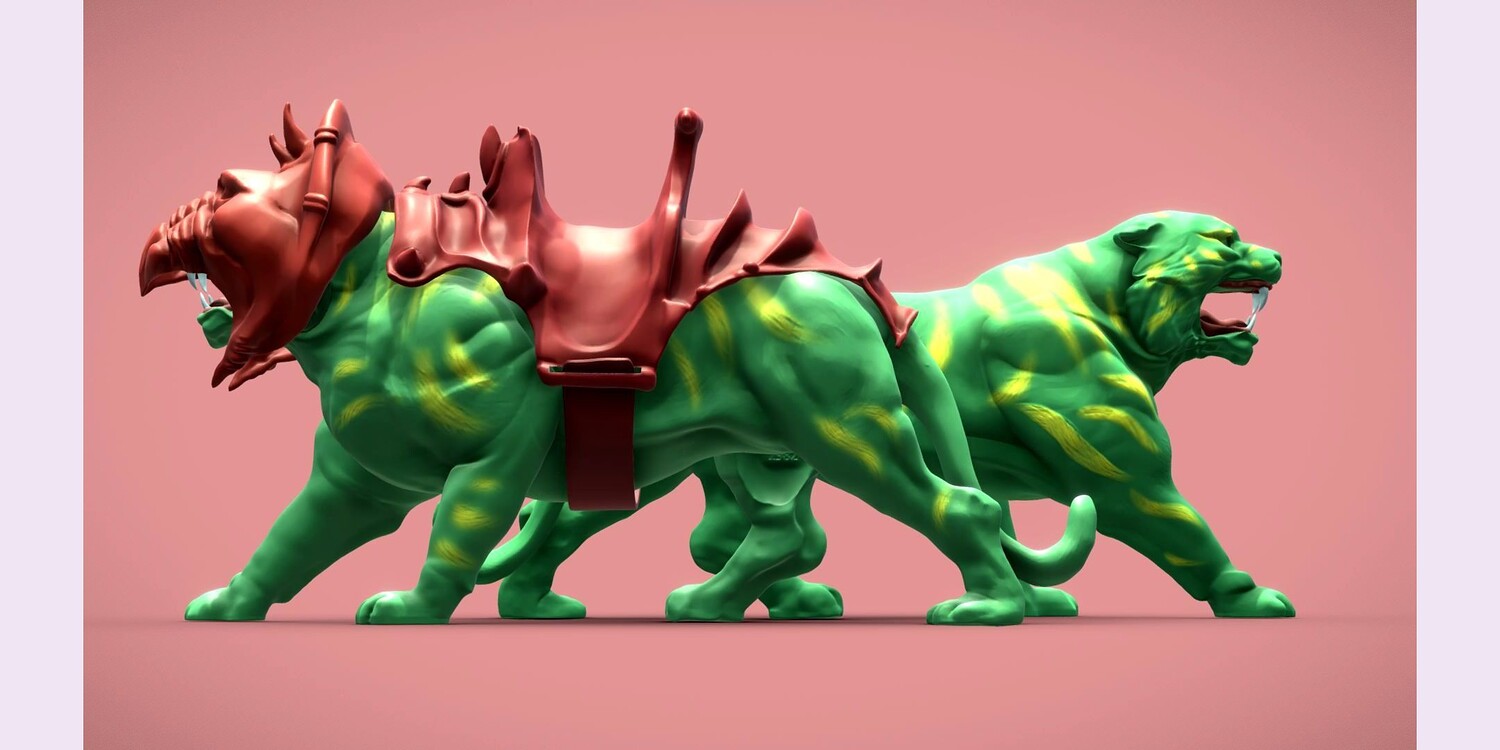 High-quality Battle Cat & Cringer fan art from MOTU 1982 version