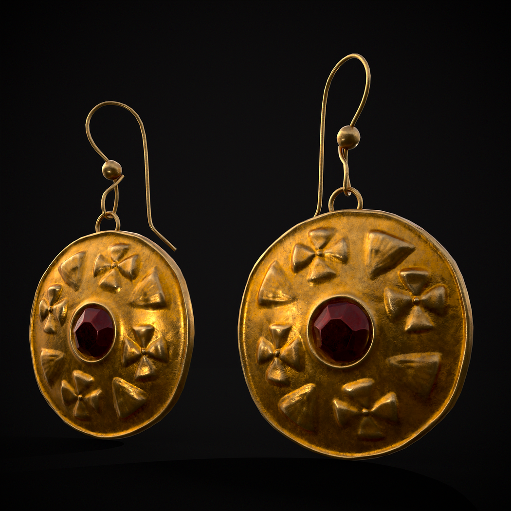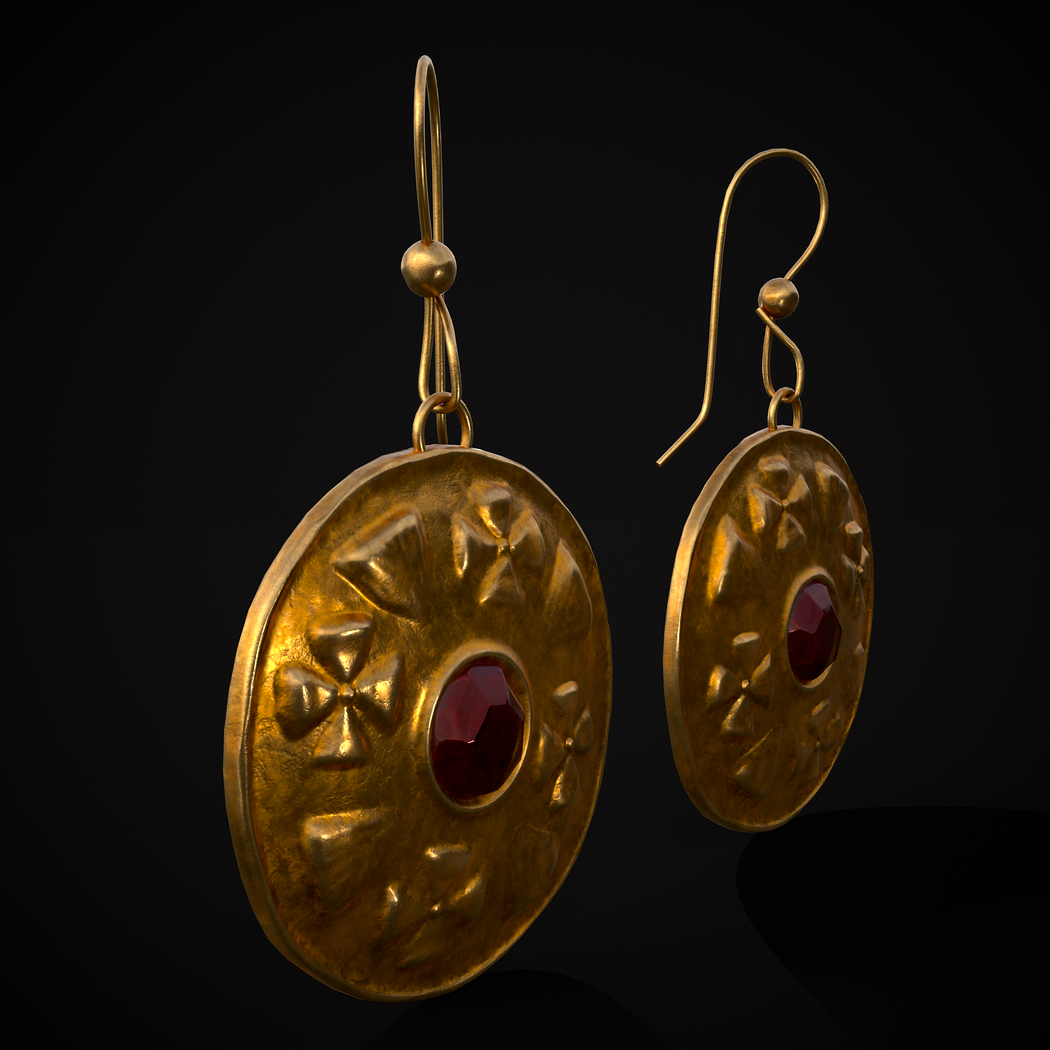 Byzantine Earrings With Garnet - 3D Model Files Include FBX and OBJ. Includes PBR Texture in 4096 x 4096. - Maps include : Basecolor, Normal, Roughness, Height and Metallic. All Preview renders were done Marmoset Toolbag 4. Scaled to real world scale. Customer Service Guaranteed. From the Creators at Get Dead Entertainment. Please like and Rate! Follow us on FaceBook and Instagram to keep updated on all our newest models. Model can be used for any purpose except resale or redistribution of the asset if not used in a game, commercial or media project.