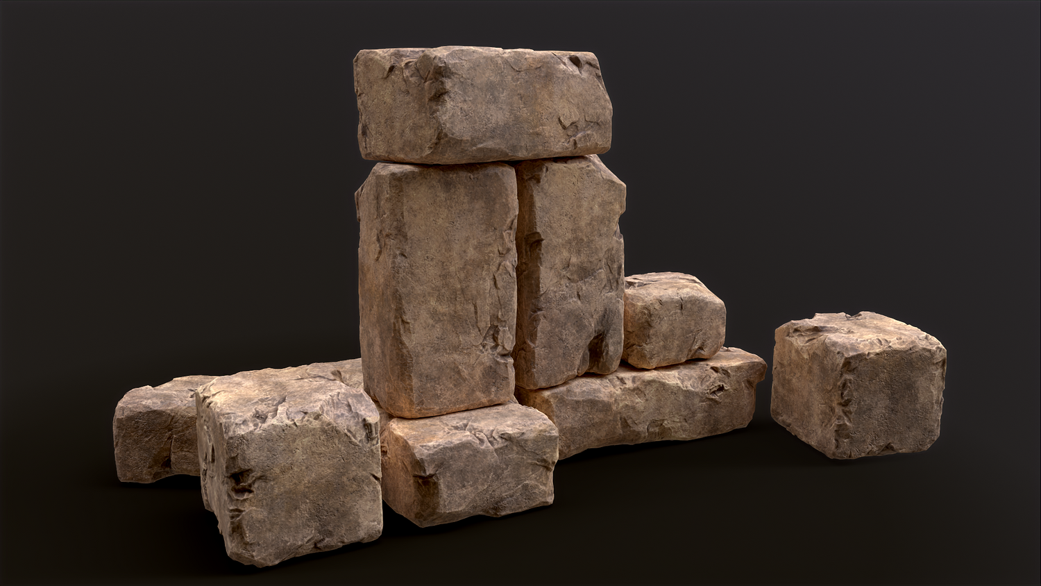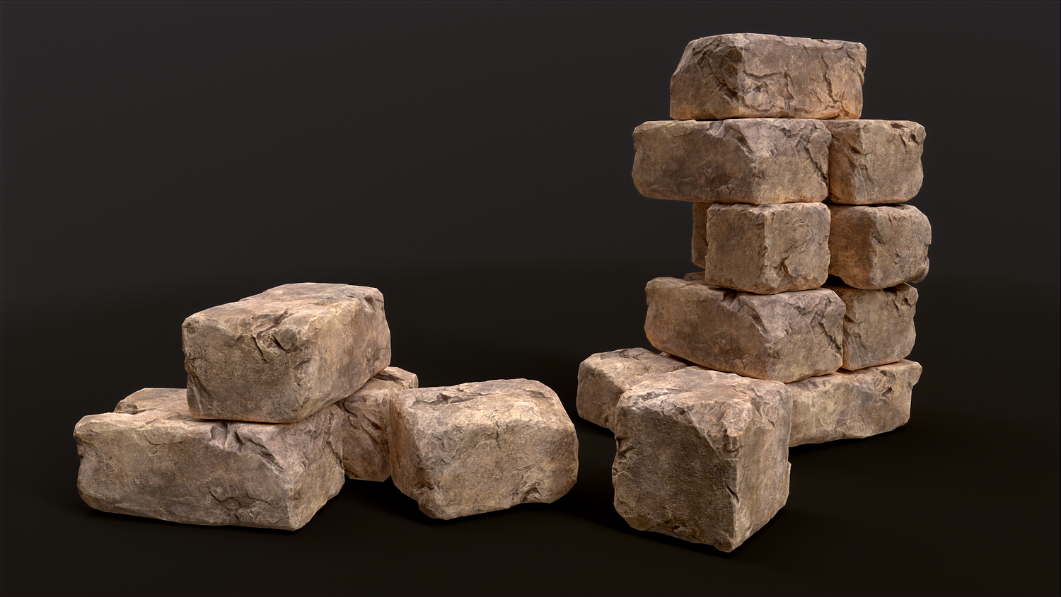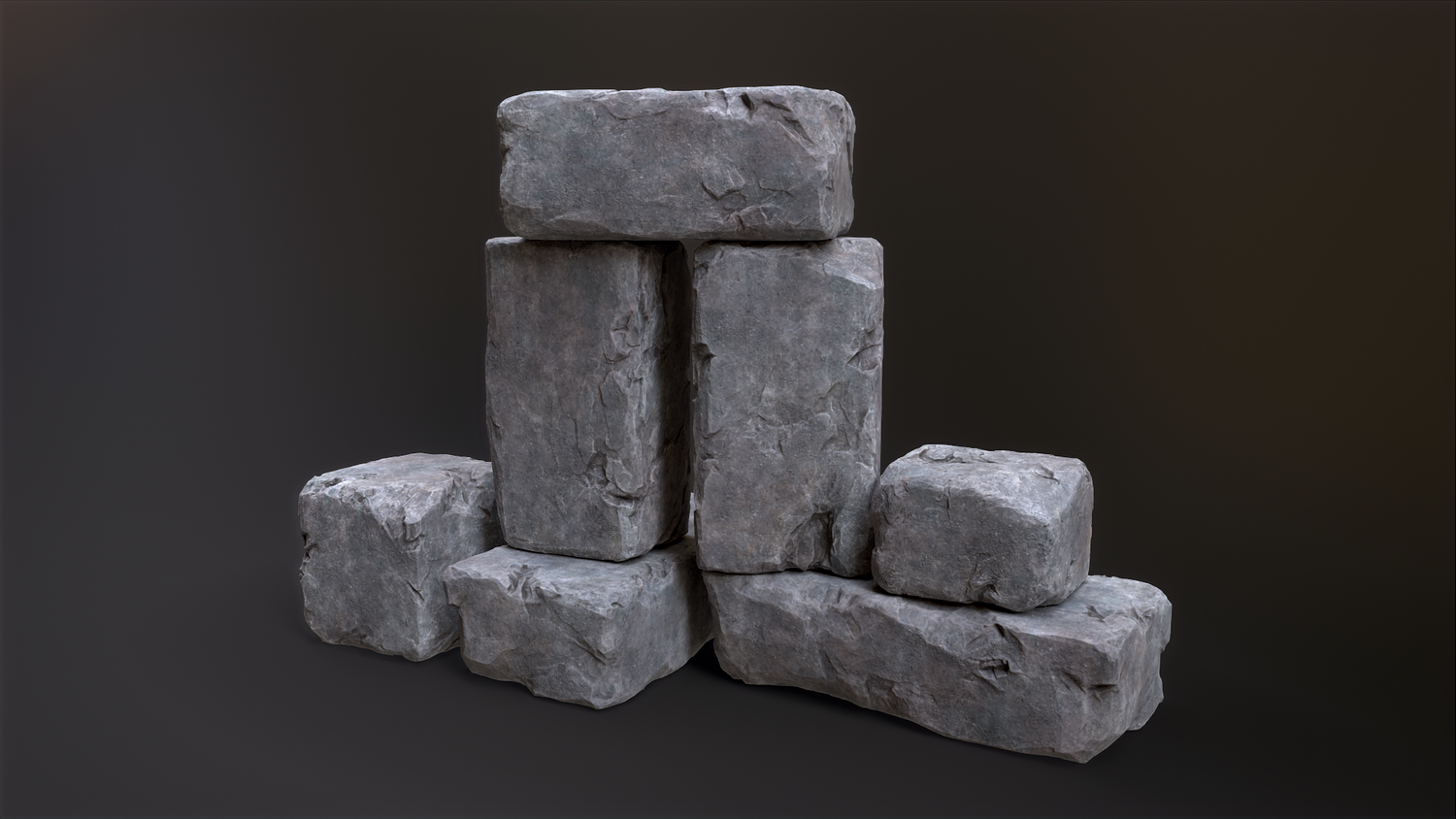 Set of 4 highly detailed rectangular stones for creating scenes and buildings.