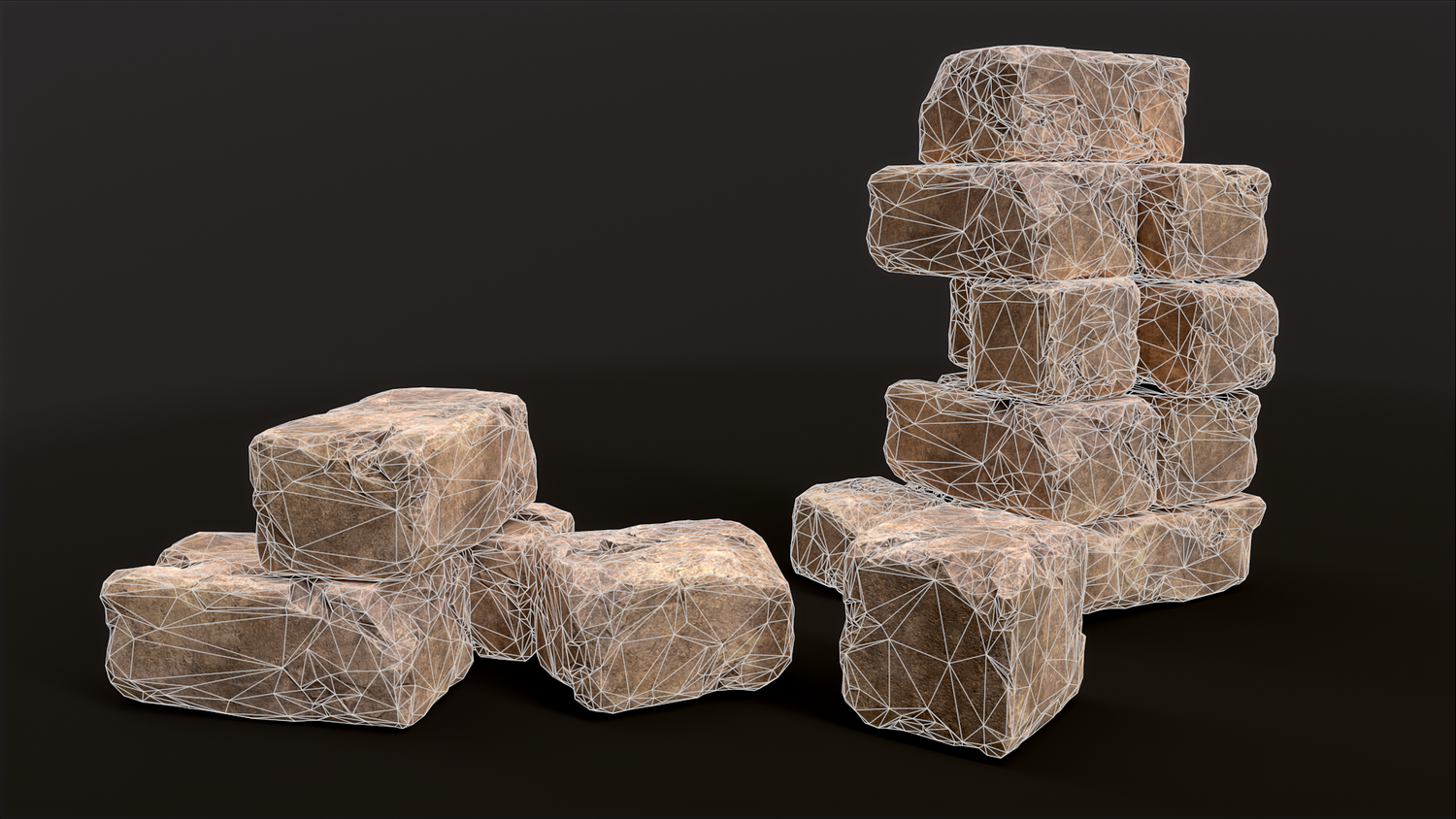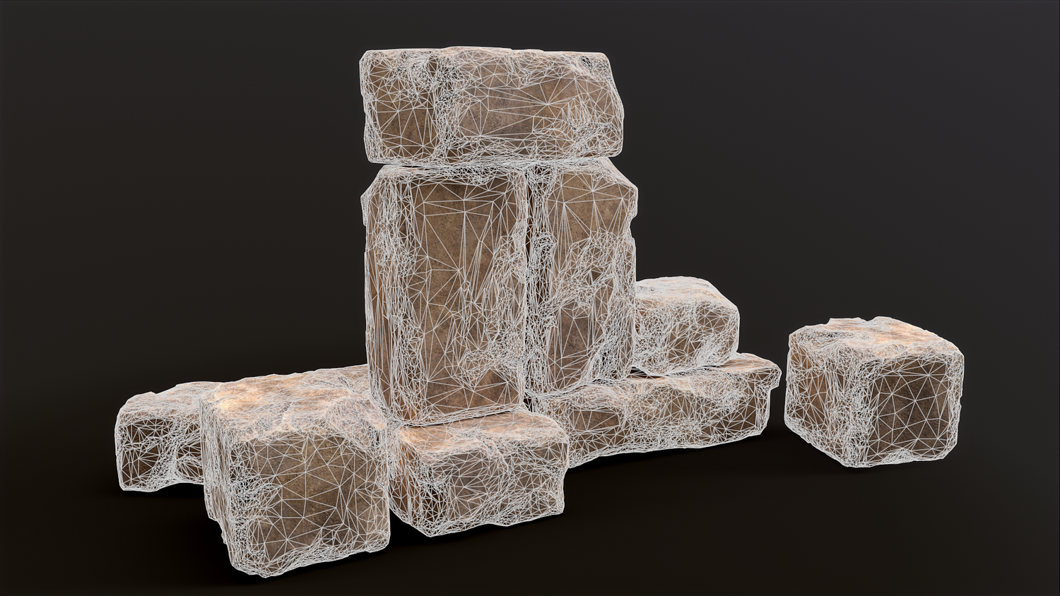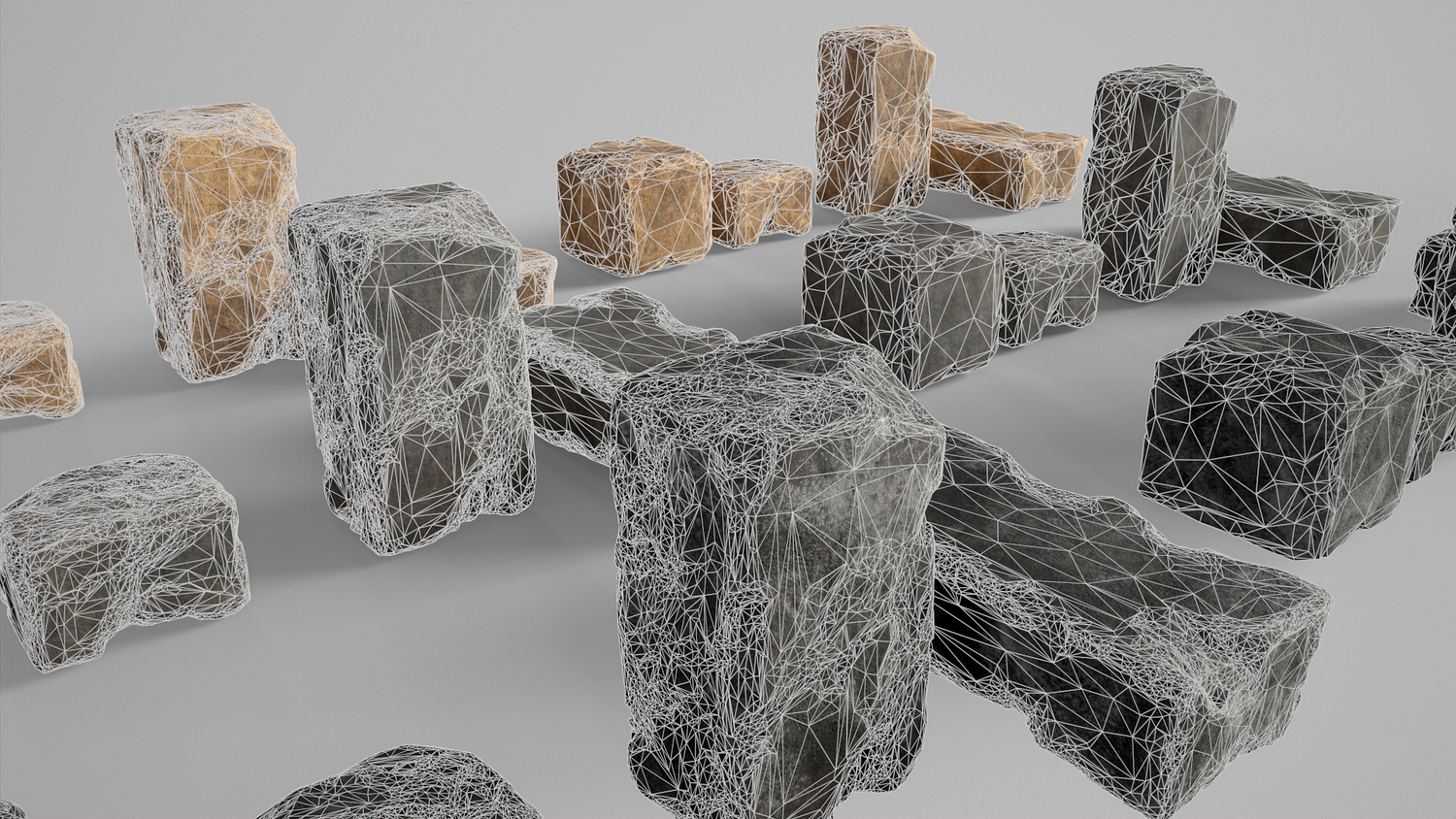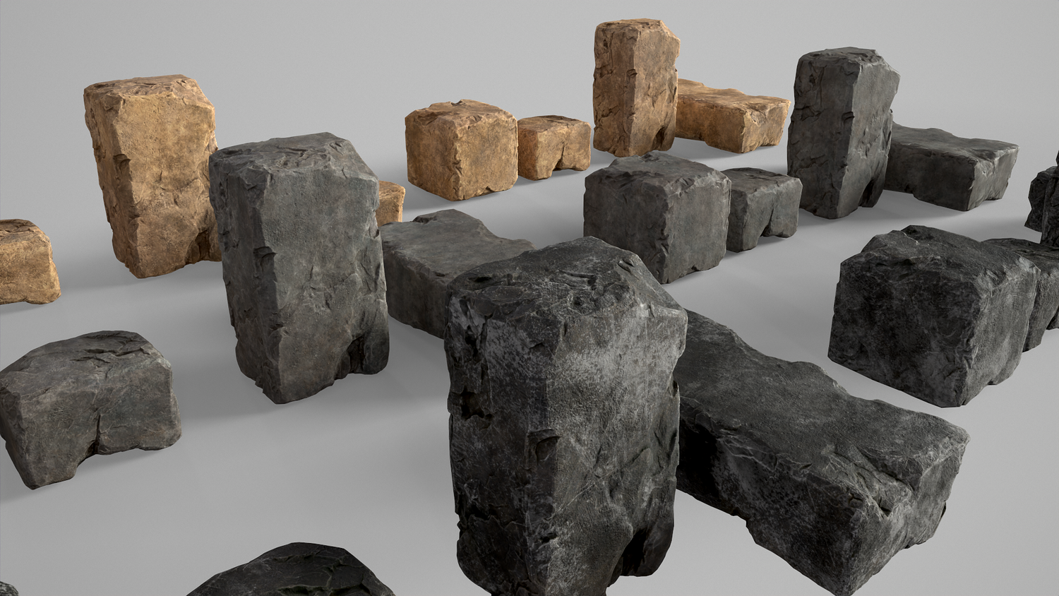 Set of 4 highly detailed rectangular stones for creating scenes and buildings.