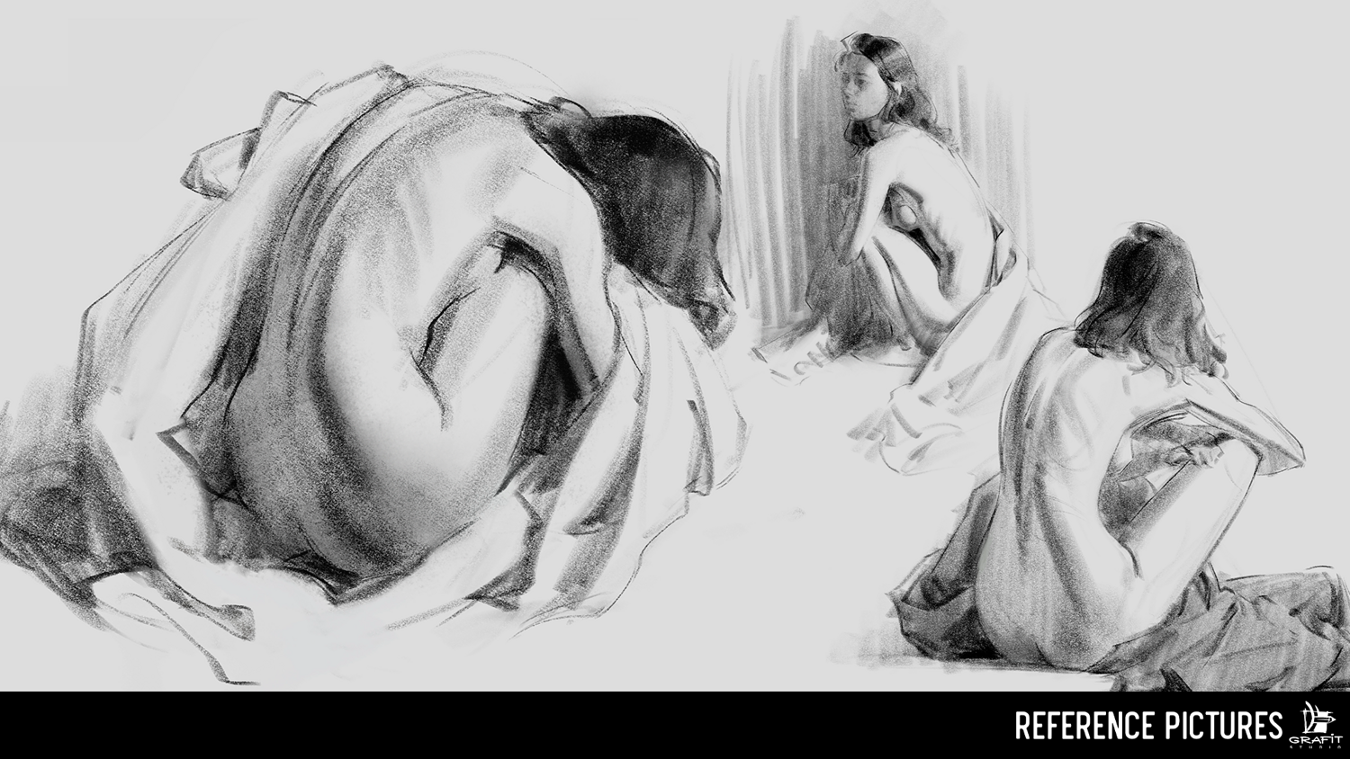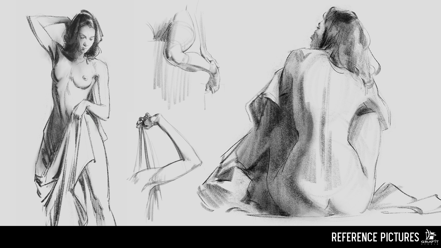 The pack is ideal for figure drawing practice, female anatomy, proportions, gesture, and fabric rendering.