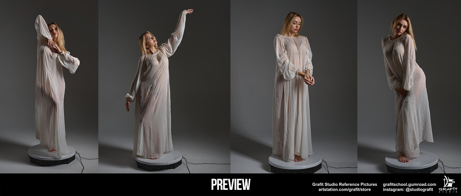 Meet a collection of over 970 high-resolution reference images featuring a blonde female model styled as a delicate fairy. This is a dreamy collection of over 970 high-res poses in underwear, sheer dresses, and flowing fabrics. Perfect for fantasy art, soft figure studies, and character design. Includes elegant standing, seated, and reclining poses with graceful gestures and ethereal vibes. This pack is perfect for artists, illustrators, and character designers seeking to capture soft, graceful movement and dreamy expressions.