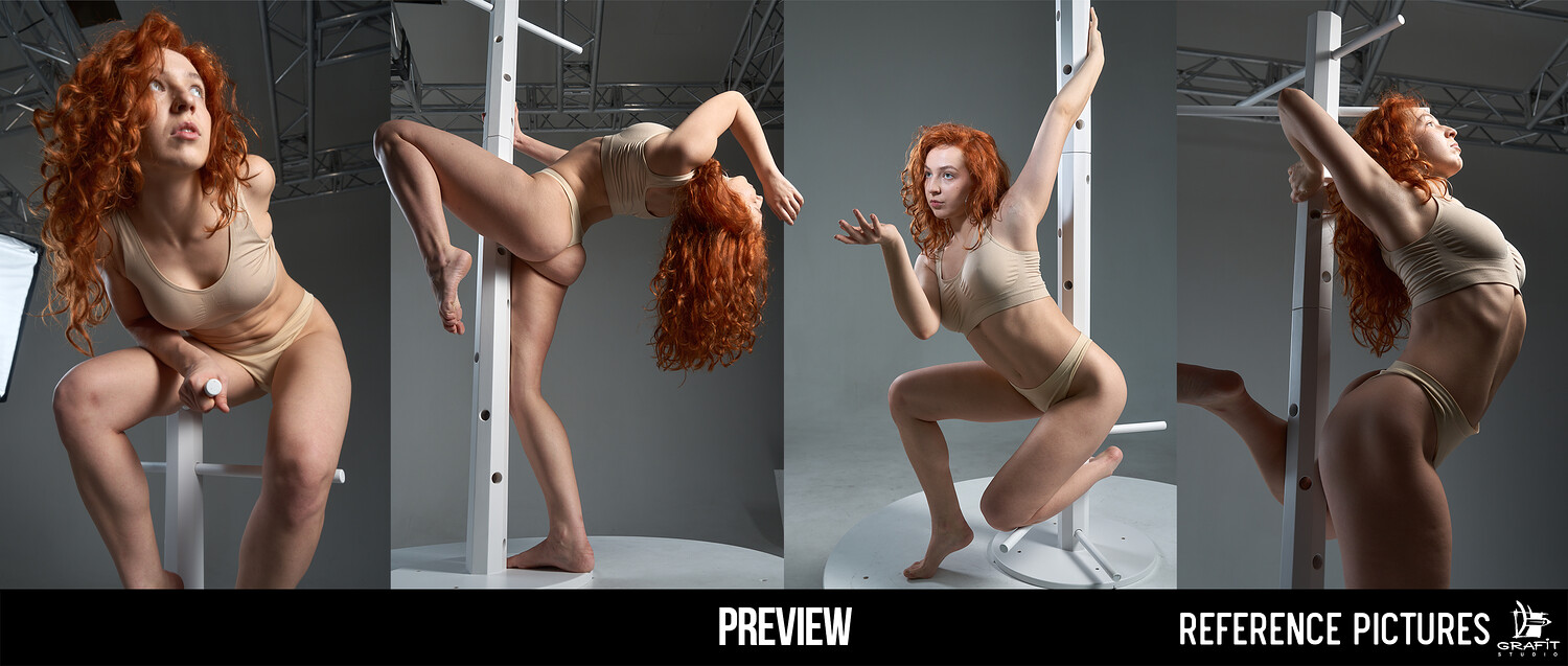 Defy balance, gravity, and body limits with this acrobatic-focused reference pack. Gravity Shift features over 1220 high-energy poses, exploring twists, suspensions, climbs, dynamic leans, and expressive movement around a vertical prop β perfect for character artists, illustrators, animators, and anyone studying anatomy in motion.