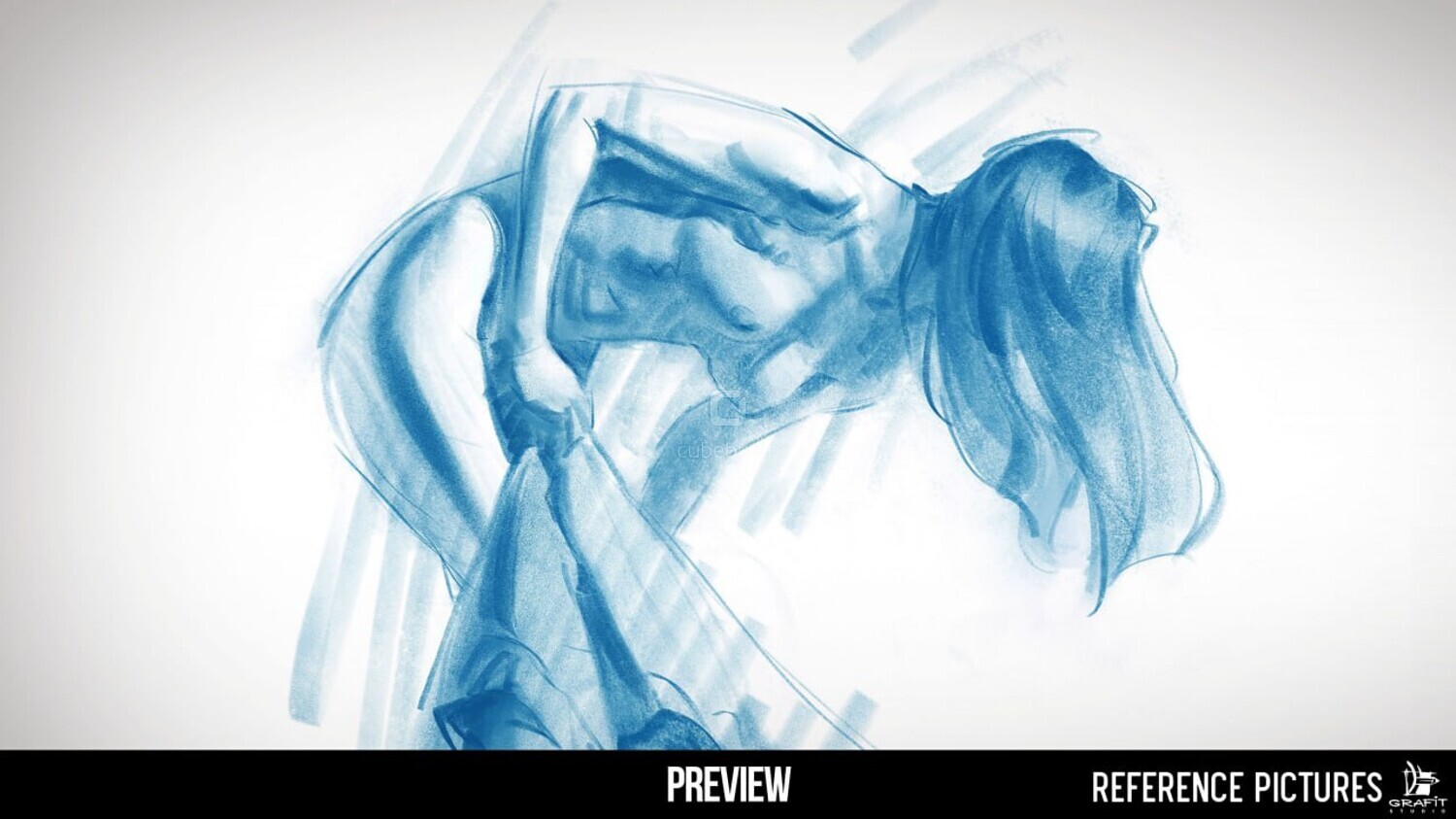 The set features a graceful model draped in flowing fabrics, captured in high-resolution photos that echo timeless sculpture and academic studies. Lane Brown’s sketches highlight form, gesture, and rhythm, making this a valuable resource for artists who want to: