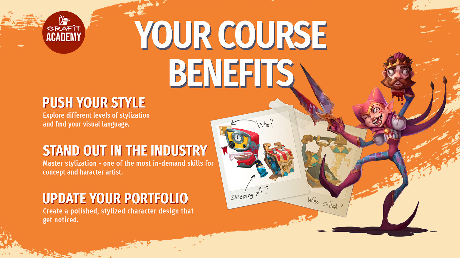 Ready to take your character designs to the next level? This course gives you the essential tools to master stylization — from creating bold, eye-catching silhouettes to designing dynamic, memorable characters. You’ll learn how to bring your ideas to life using composition, storytelling, and practical design techniques, all while building a solid foundation for advanced work.