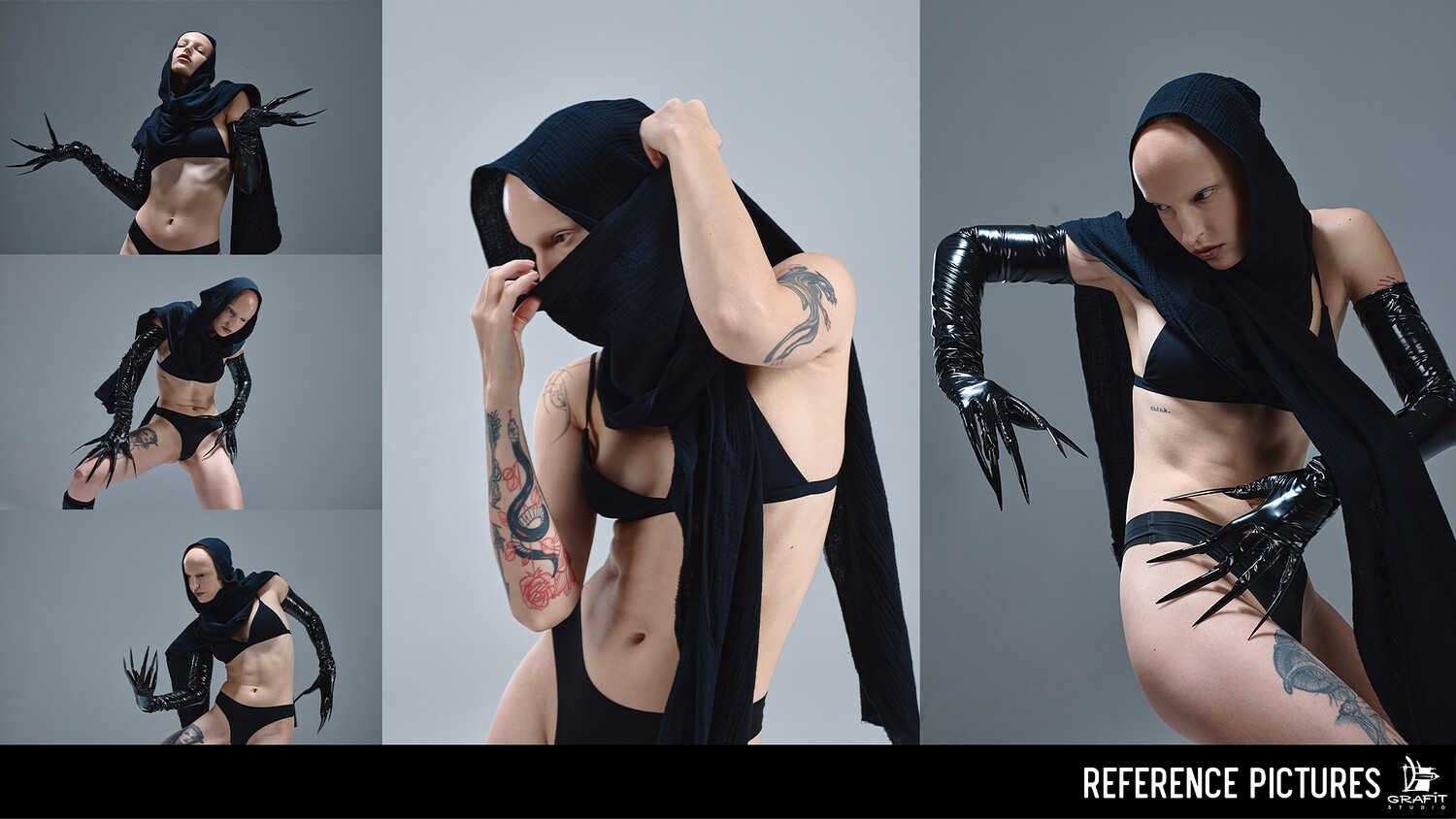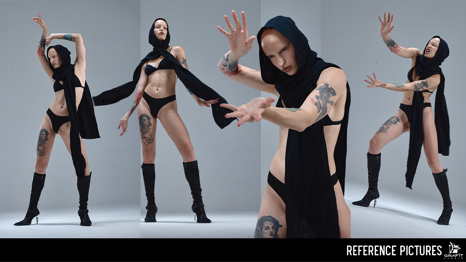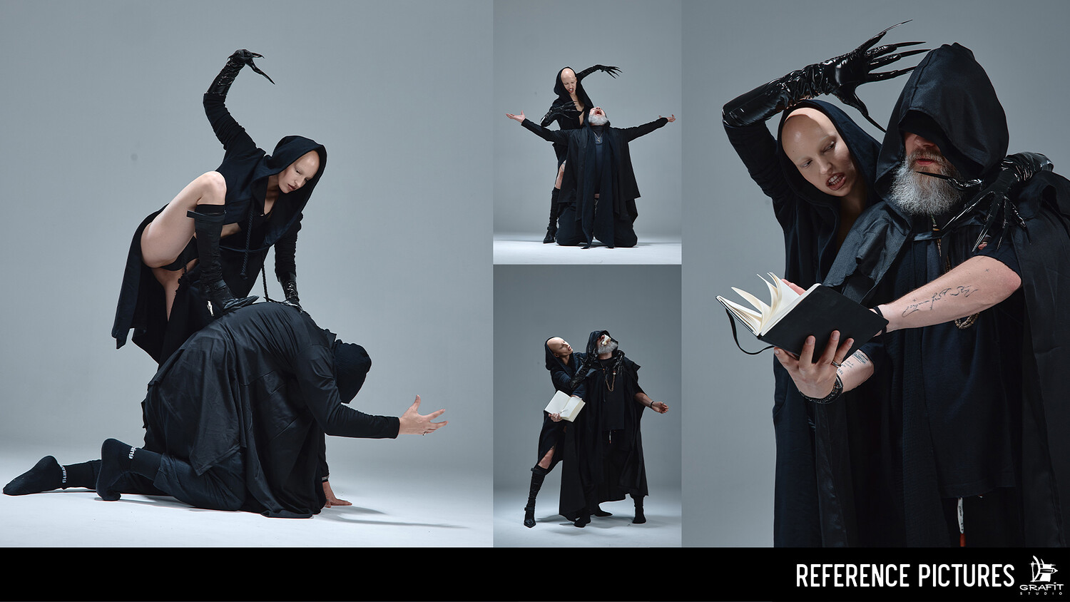 A cinematic reference pack built around dark ritual aesthetics, mystical interaction, and dramatic duo compositions. Shot in a clean studio with controlled lighting, smoke effects, and strong contrast, this set captures tension, dominance, submission, and arcane storytelling.