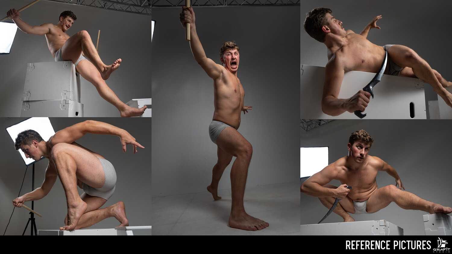 Shot in a clean studio with neutral lighting to clearly reveal anatomy, motion, and silhouettes, making it perfect for studying gesture drawing, foreshortening, and dynamic body mechanics.