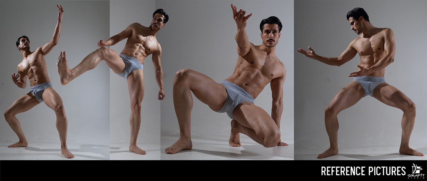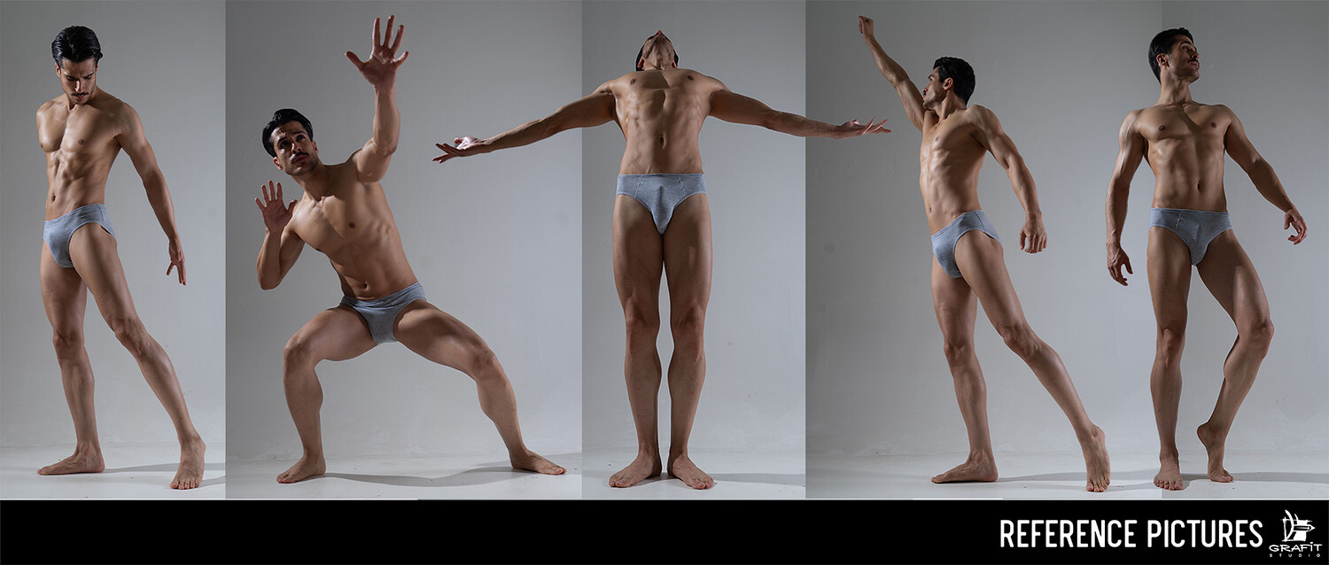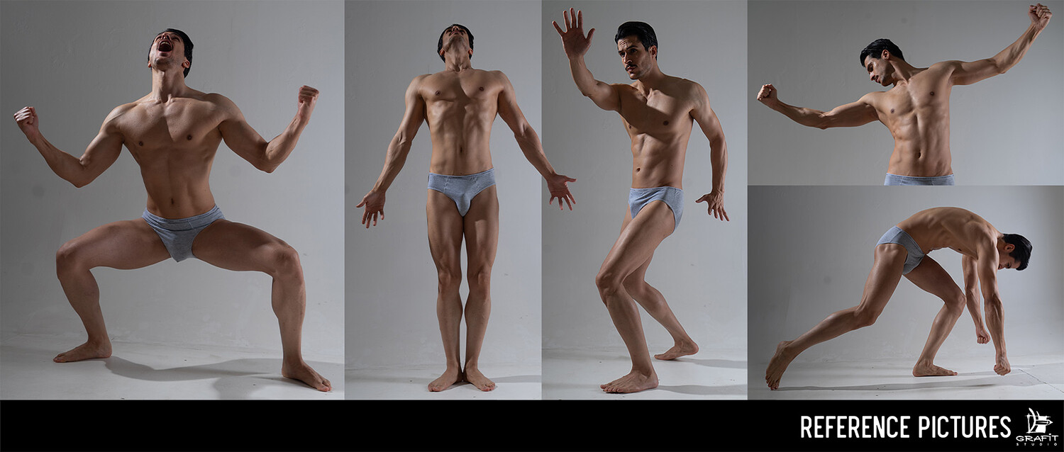 Shot in a professional studio with neutral lighting and a clear background, the model performs an incredible range of power-packed movements with cinematic gestures. Every image highlights defined anatomy, kinetic force, and expressive storytelling, making it an essential resource for character design and anatomy study.