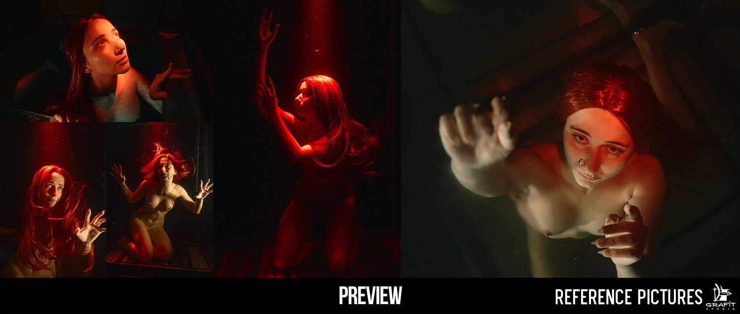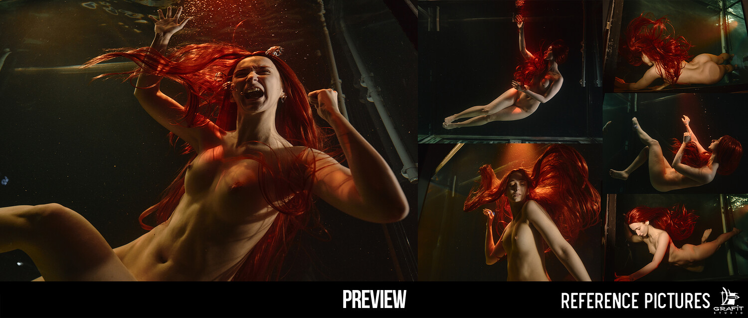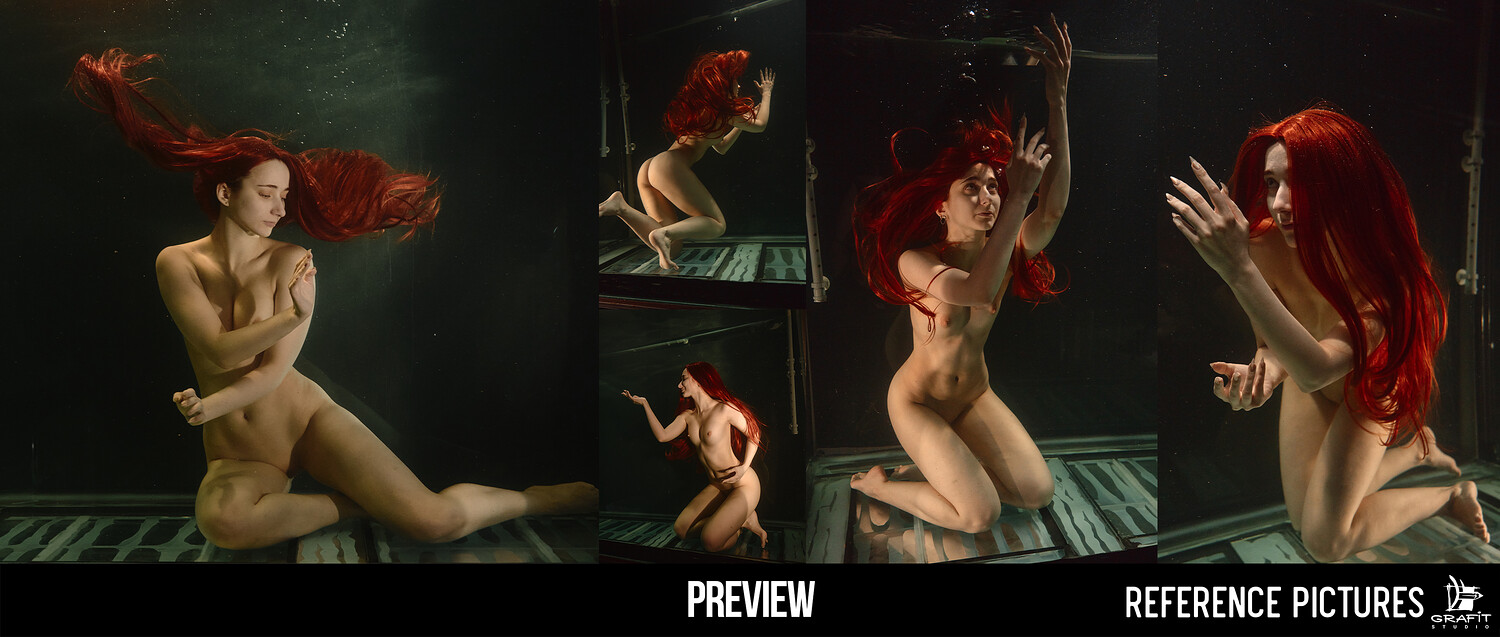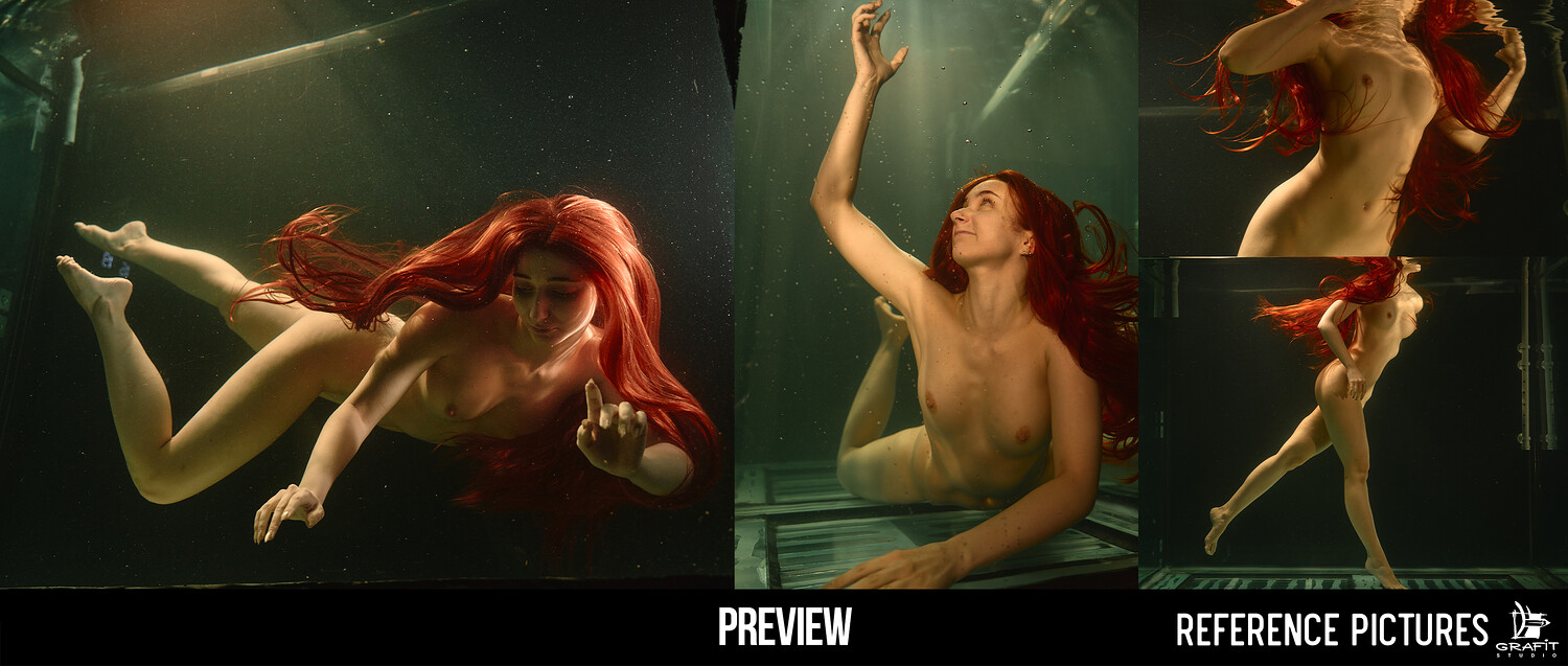 Dive into the ethereal with our Mermay Special — a breathtaking collection of 2200+ underwater floating female poses, designed to inspire magical creations and unlock new depths of artistic expression. Captured beneath the surface, this pack features a graceful model suspended in water, her movements flowing effortlessly like a mermaid dancing through the sea. The pack also includes photos in the studio, portraits, complex lighting and a wide range of emotions - everything you may need for your mermaid illustrations, character design, traditional art or magic-themed sketches.