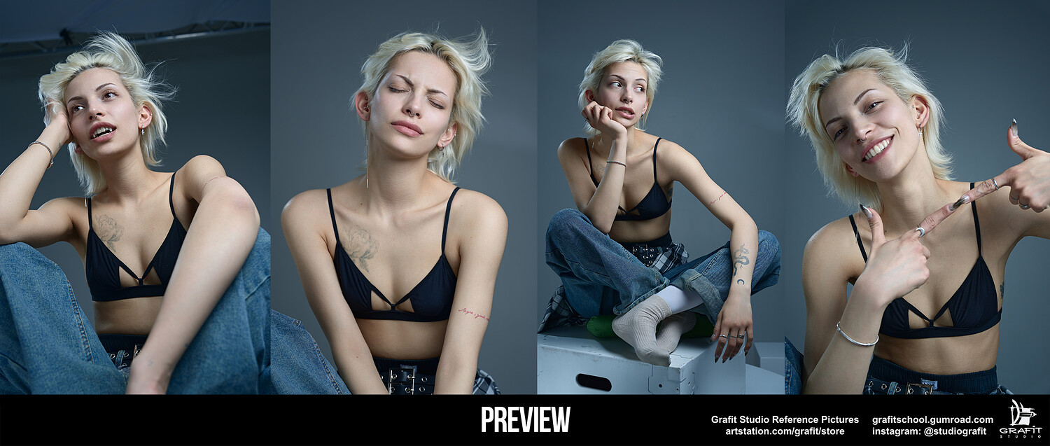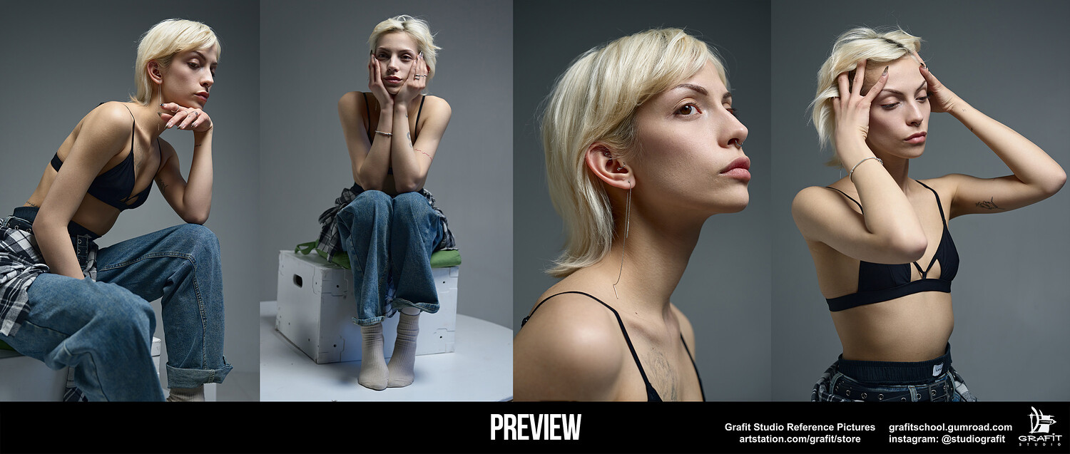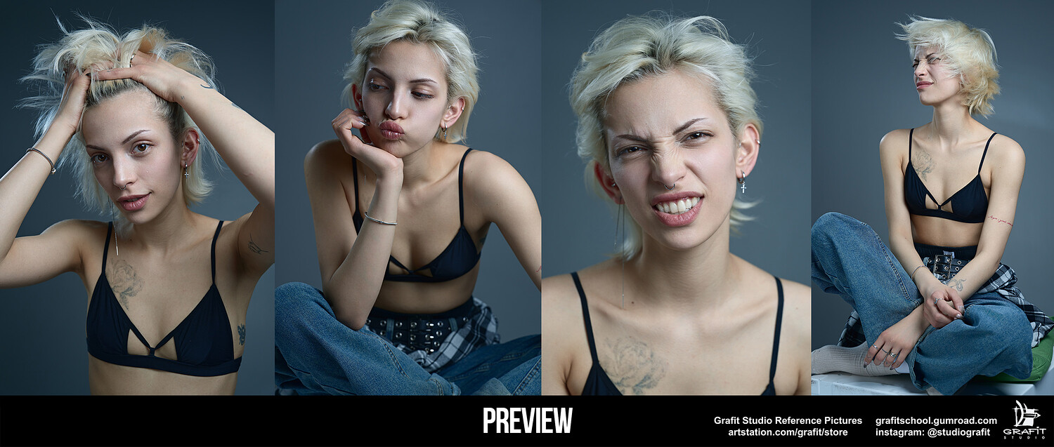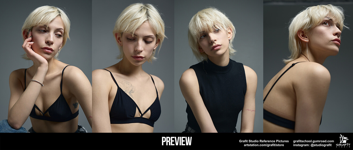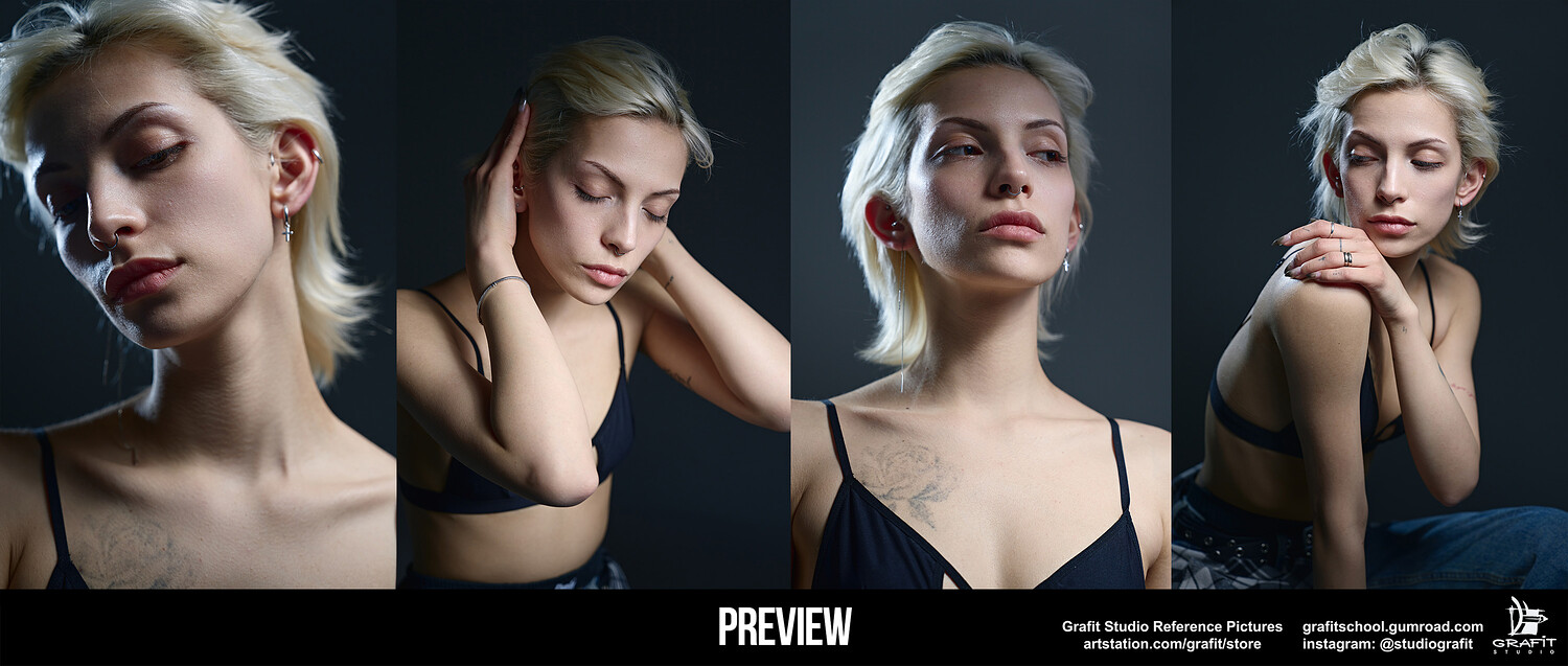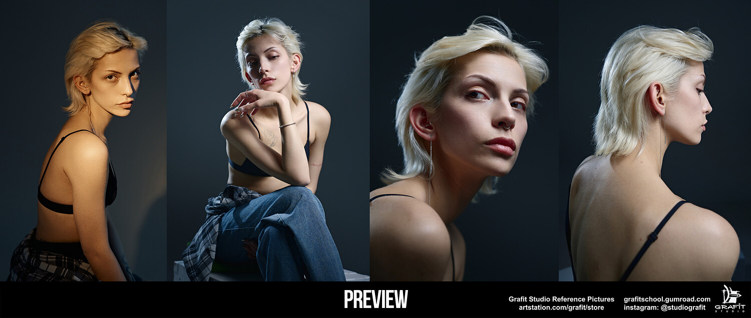 Discover a stunning collection of over 400 high-quality portraits celebrating the timeless elegance of female beauty. It features a blonde young woman showing a wide range of expressions and moods in different lighting styles. Perfect for artists, illustrators, and photographers, these portraits offer endless inspiration for character creation, painting studies, or reference material.