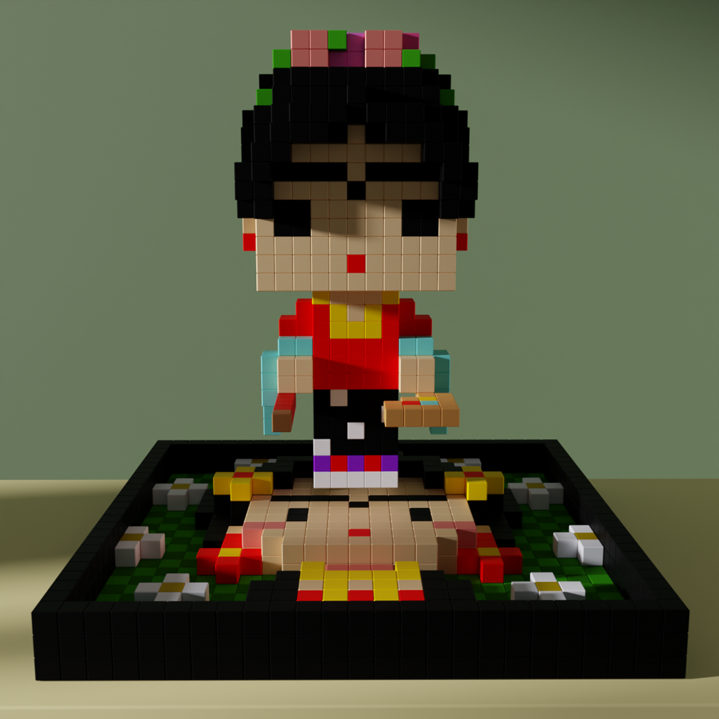 This voxel 3D model represents the iconic Frida Kahlo, designed entirely with cubes in a unique and artistic low-poly voxel style. Perfect for game developers, digital artists, and collectors looking to add a stylized historical figure to their voxel-based projects.The model is crafted with clean geometry and an optimized structure, making it ideal for real-time applications such as games, animations, VR/AR experiences, and pixel-style visualizations. It includes multiple file formats for easy integration into various 3D software.A great asset for indie game creators and designers looking for a recognizable and artistic voxel character with a bold and colorful aesthetic!