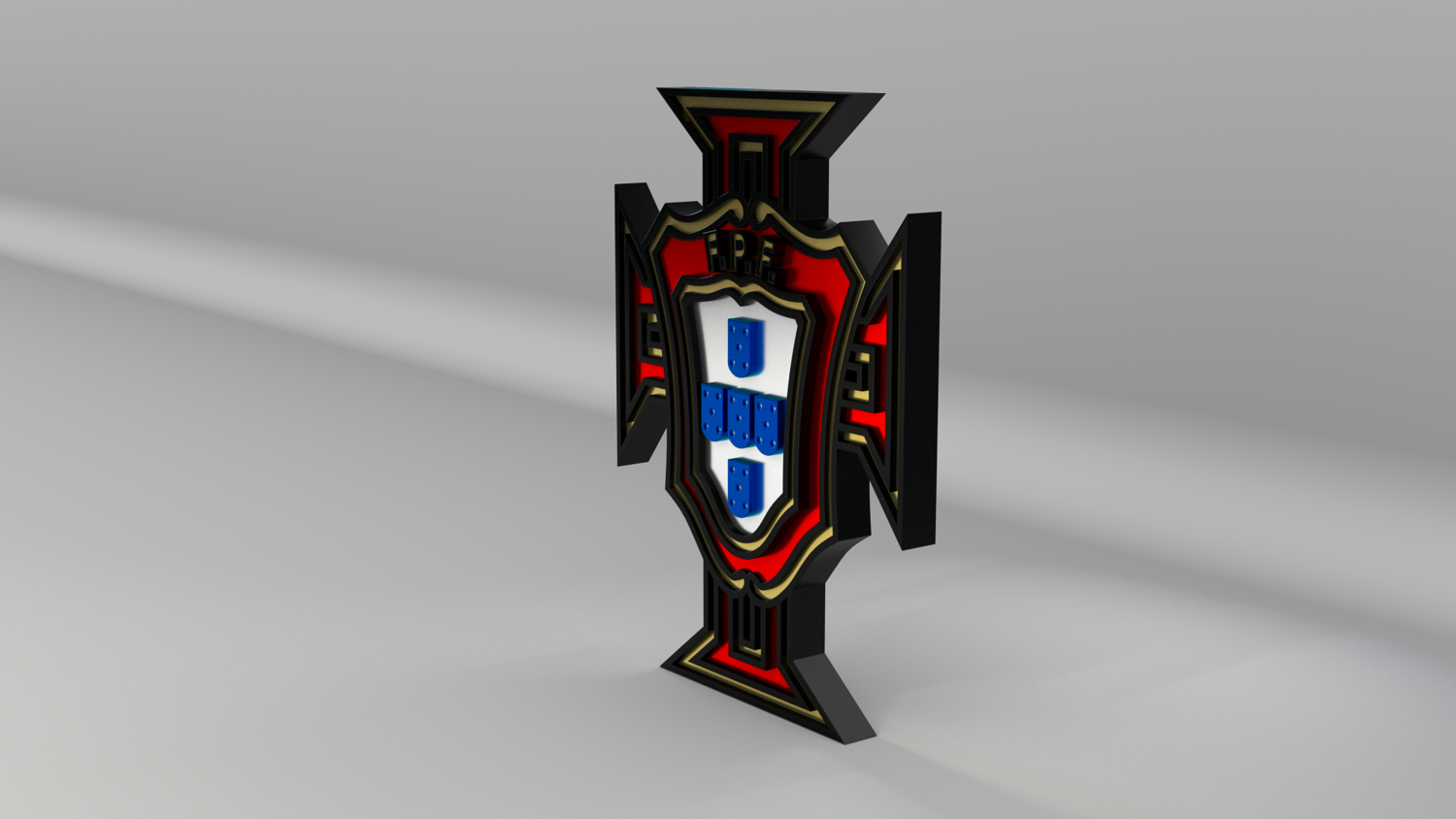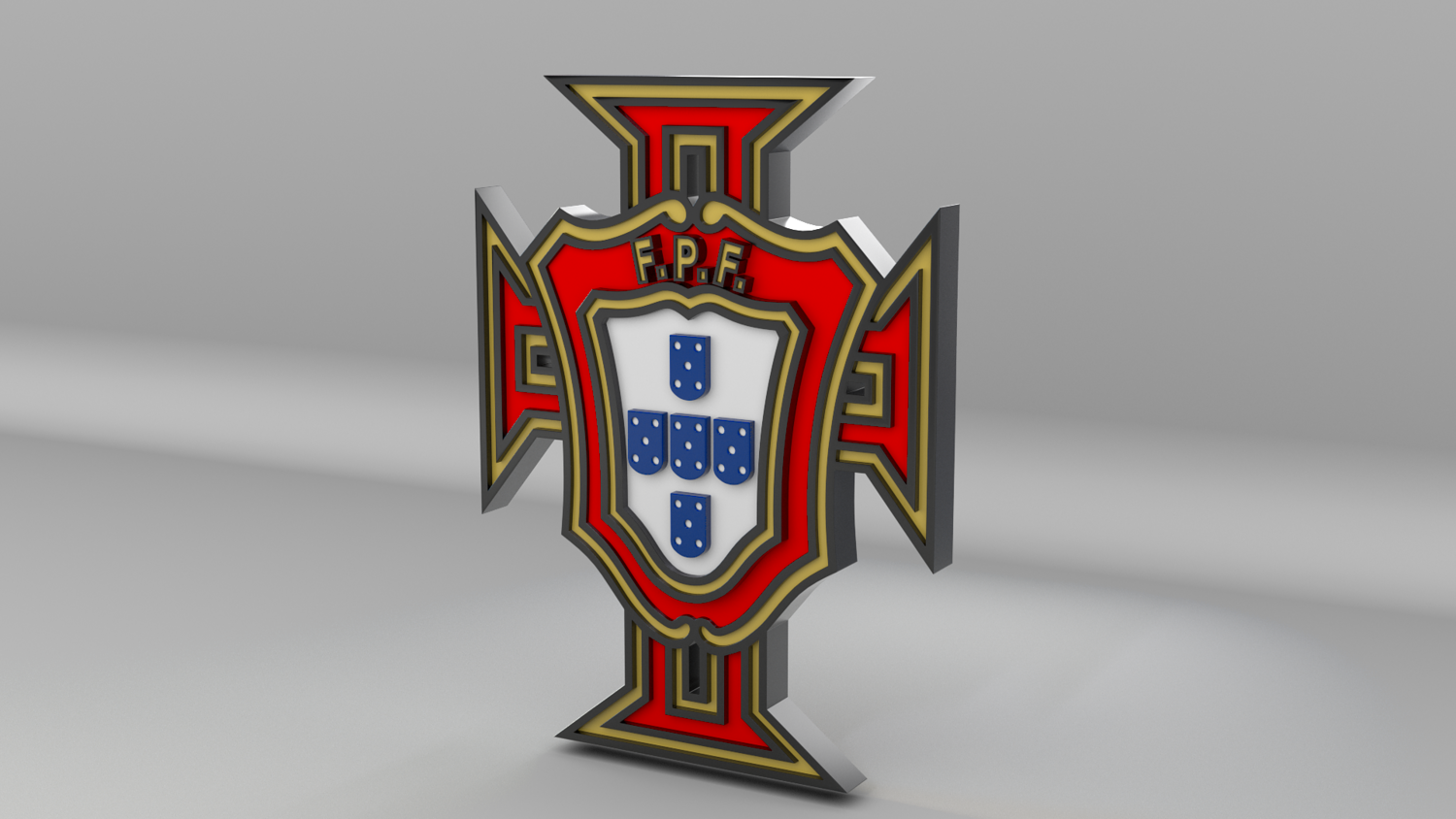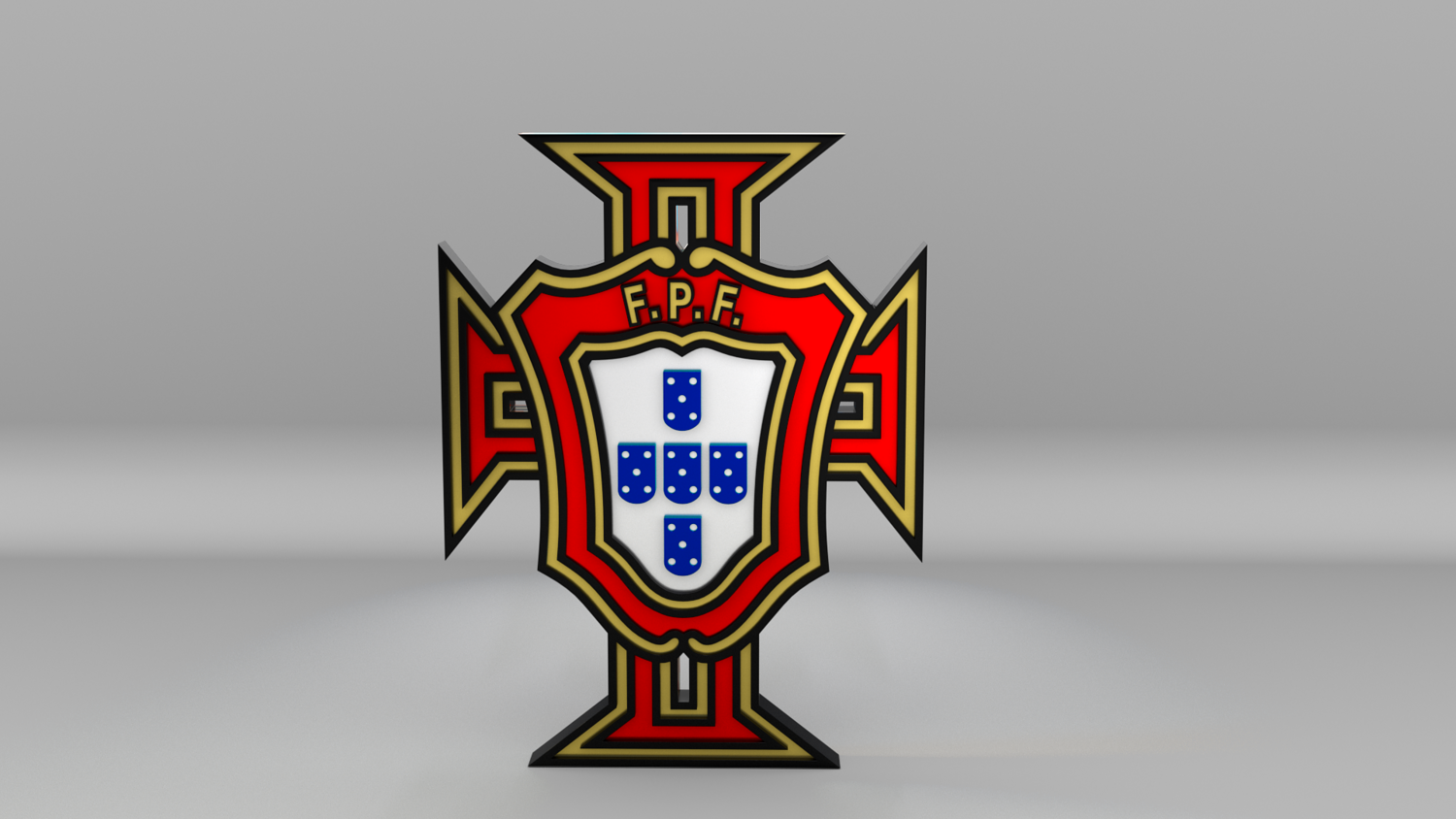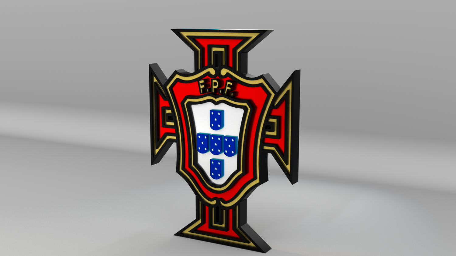 "Portugal National Soccer Team Logo, modeled and rendered in Maya using Redshift, PBR Textures included (BaseColor, Metallic, Roughness and Normal Maps).