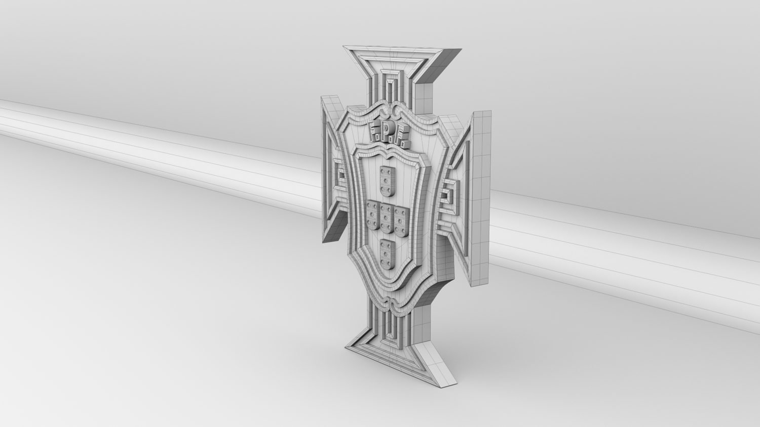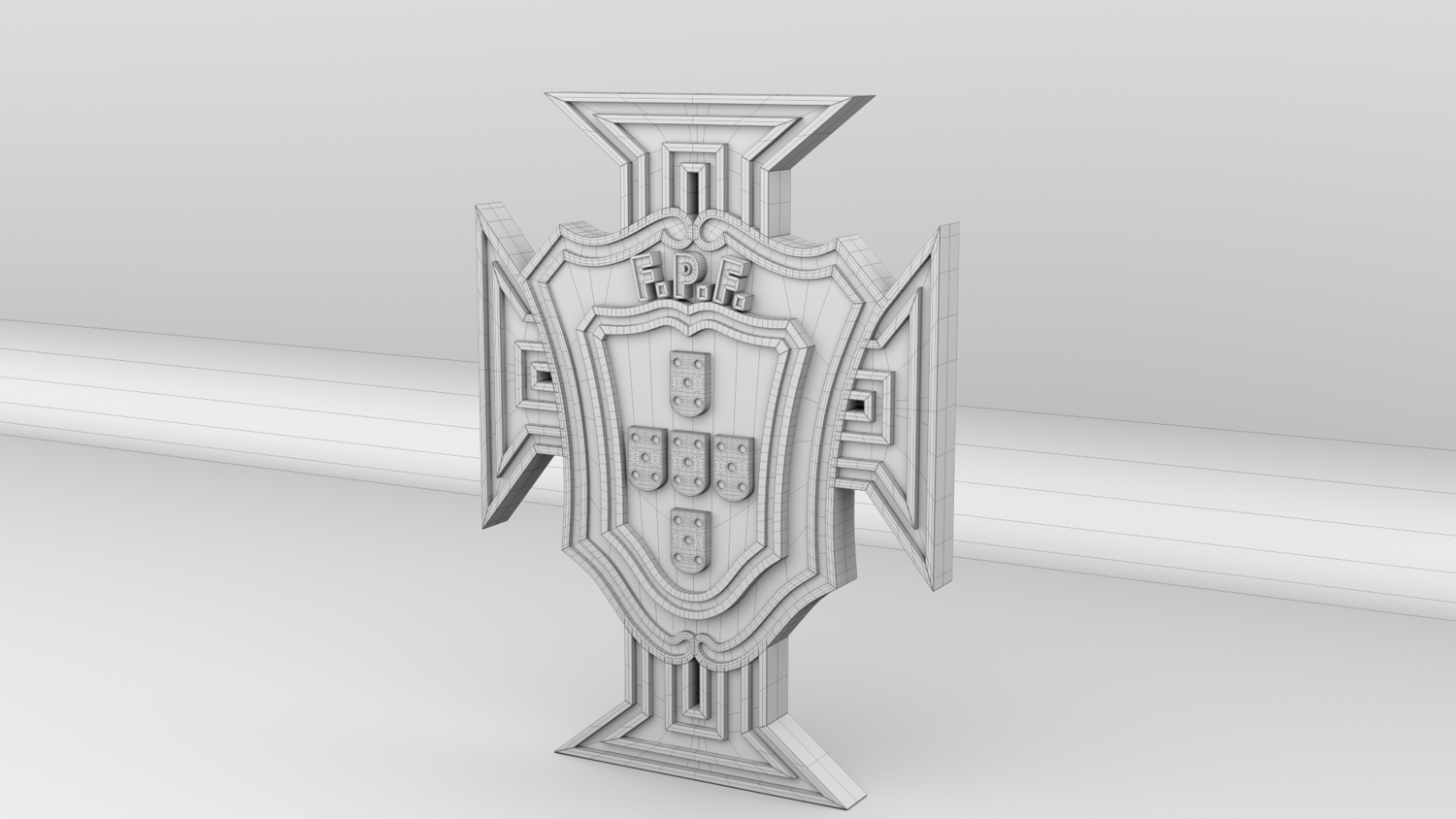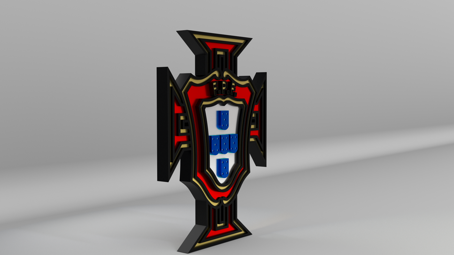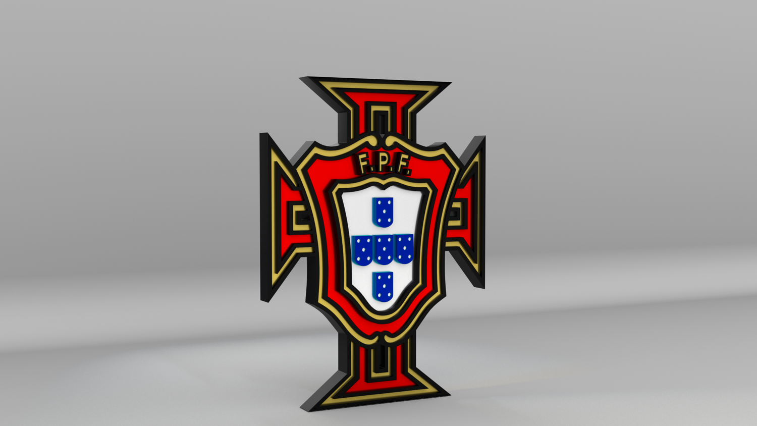 "Portugal National Soccer Team Logo, modeled and rendered in Maya using Redshift, PBR Textures included (BaseColor, Metallic, Roughness and Normal Maps).