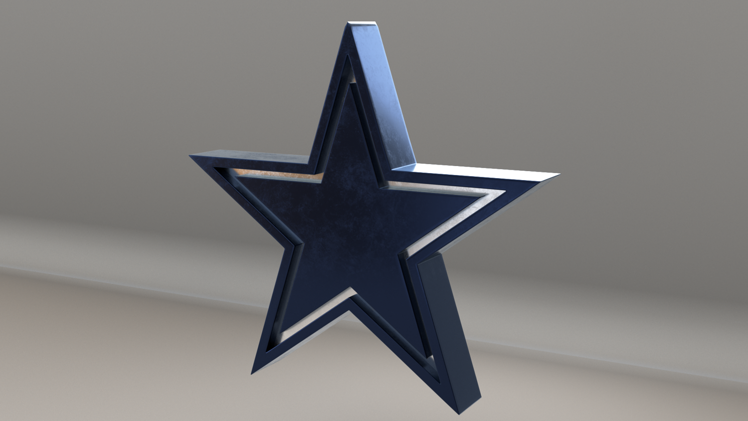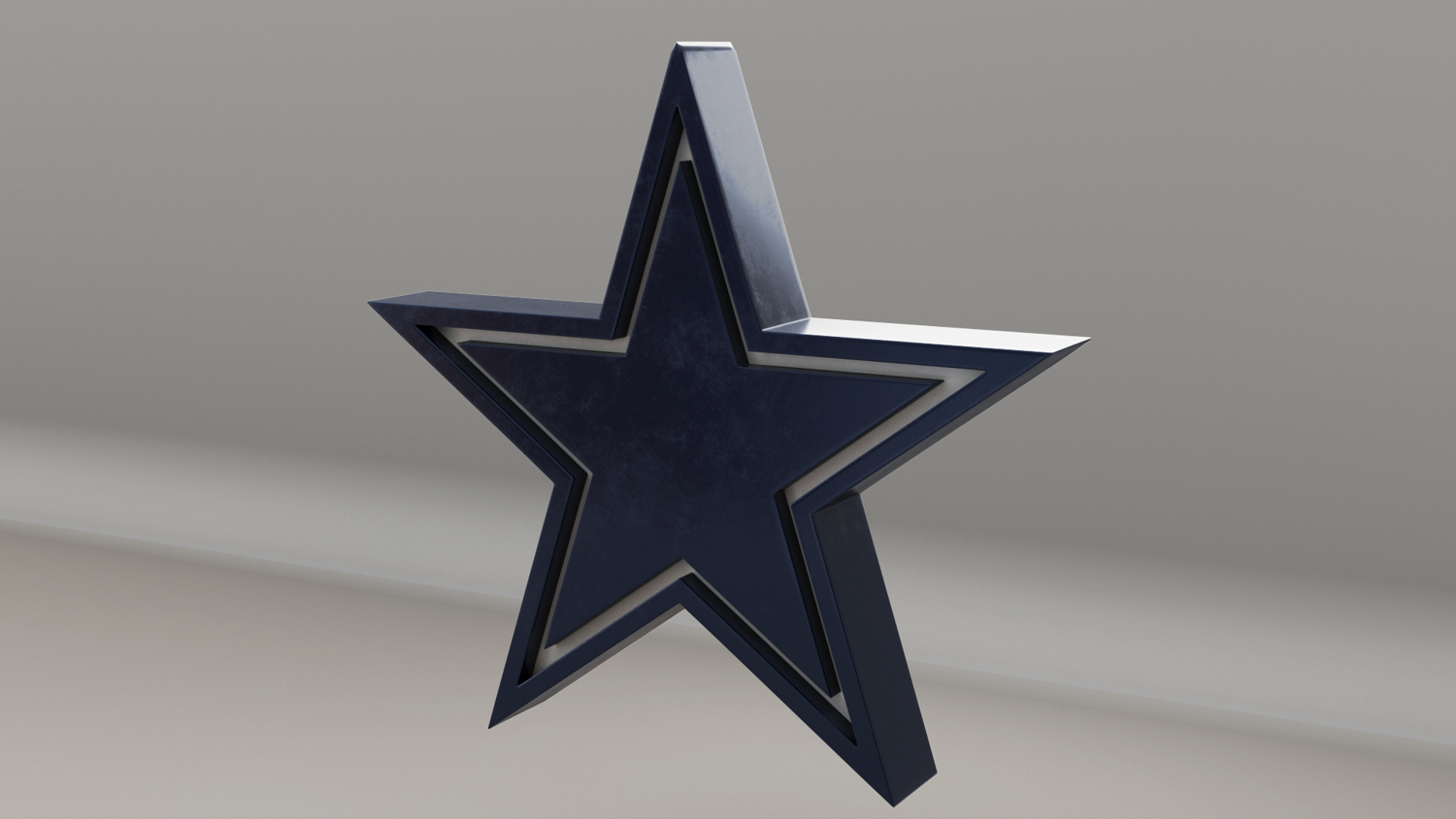 NFL Dallas Cowboys Logo, modeled and rendered in Maya using Redshift and textured in Substance Painter. It contains a base color and a packed metallic, roughness and AO. The renders are using the metallic texture, but if you don't use it you have the logo with it's original color, like the last picture.